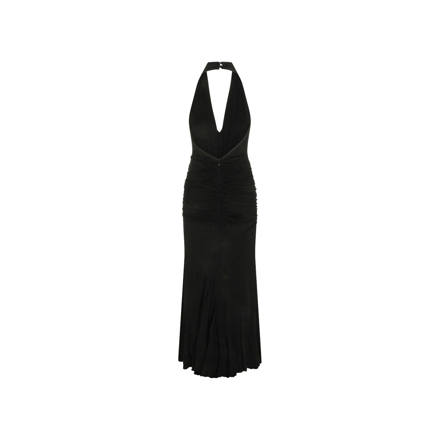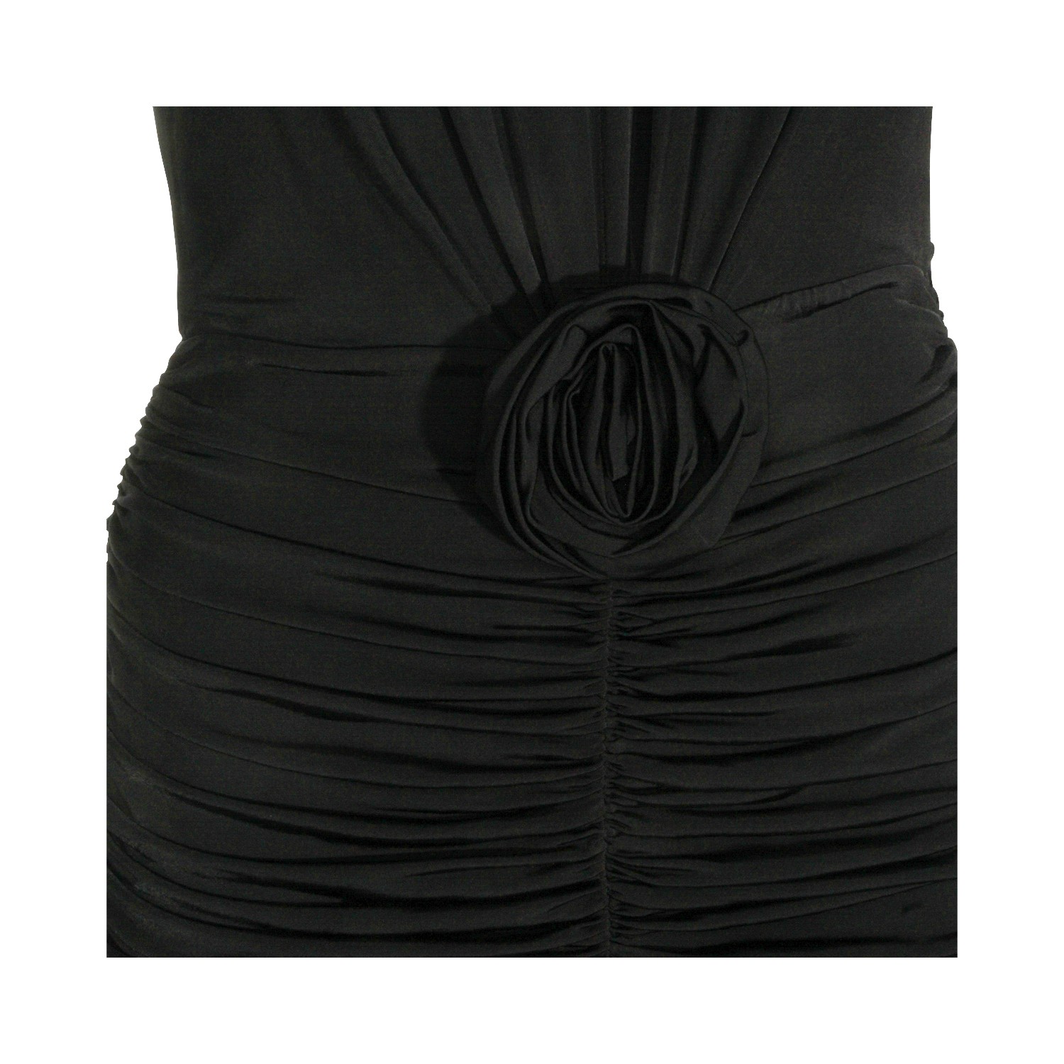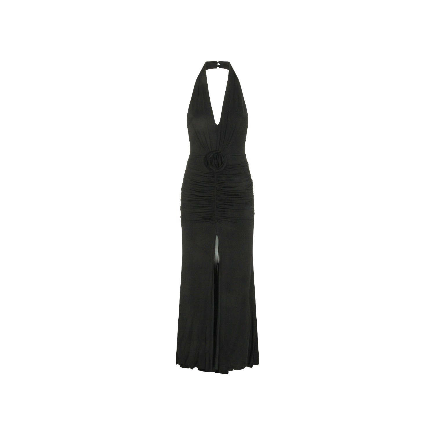 Black viscose dress from Blumarine featuring v neckline, sleeveless, rose detail, zip fastening on the back, slit and long lenght.