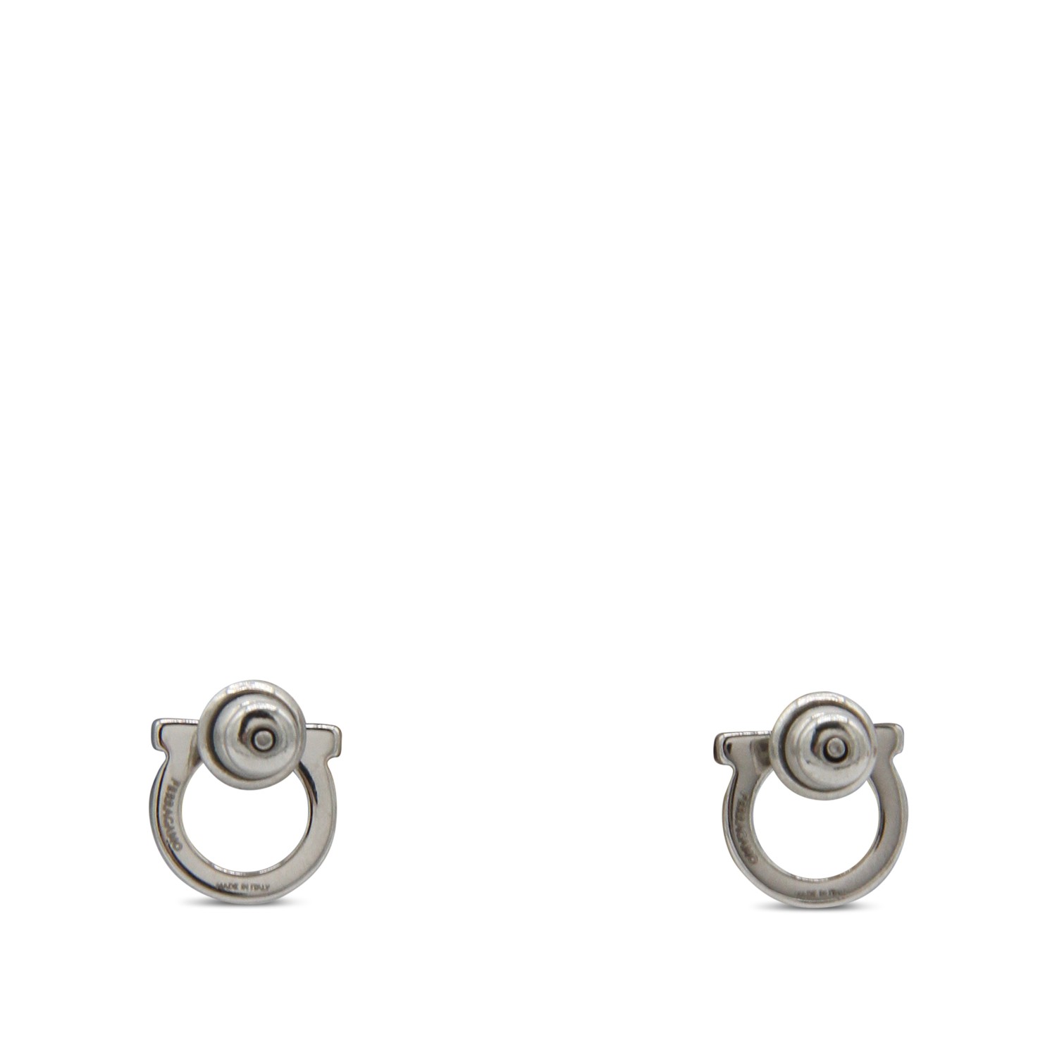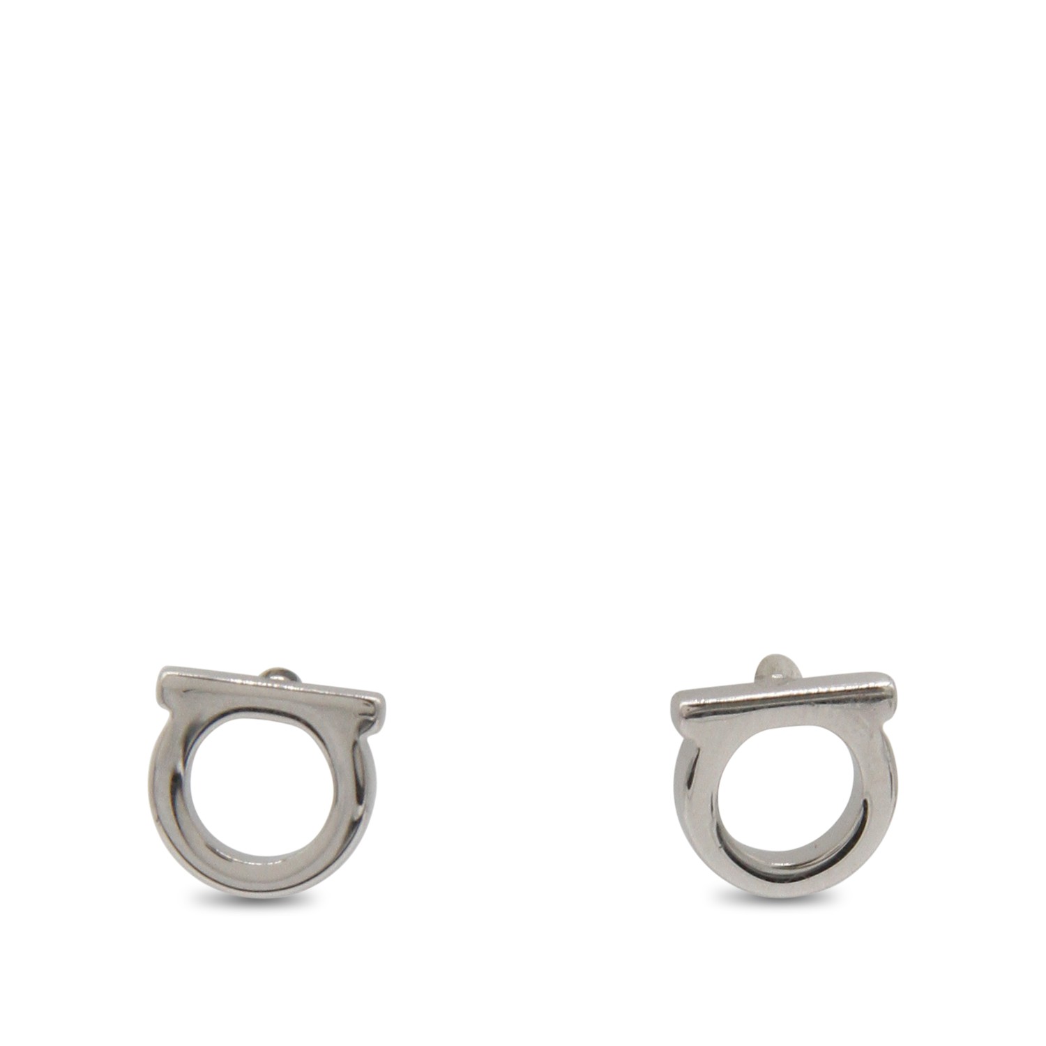 Silver-tone brass Gancini earrings from Salvatore Ferragamo featuring a pin fastening, high-shine finish and logo motif.