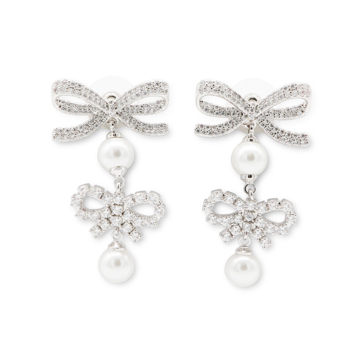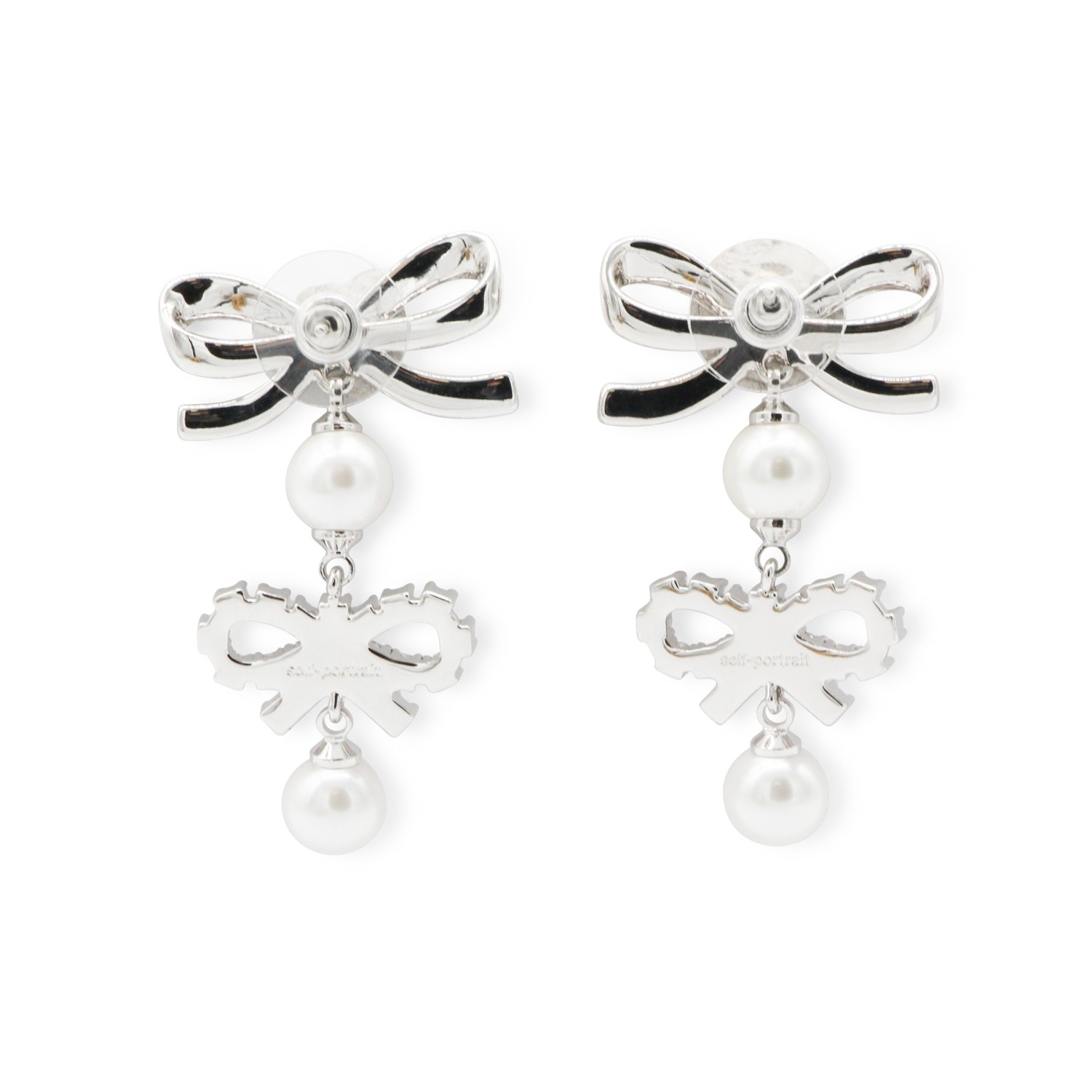 Silver and pearl earrings from Self-Portrait featuring plated brass, pearls and crystal embellishment.
