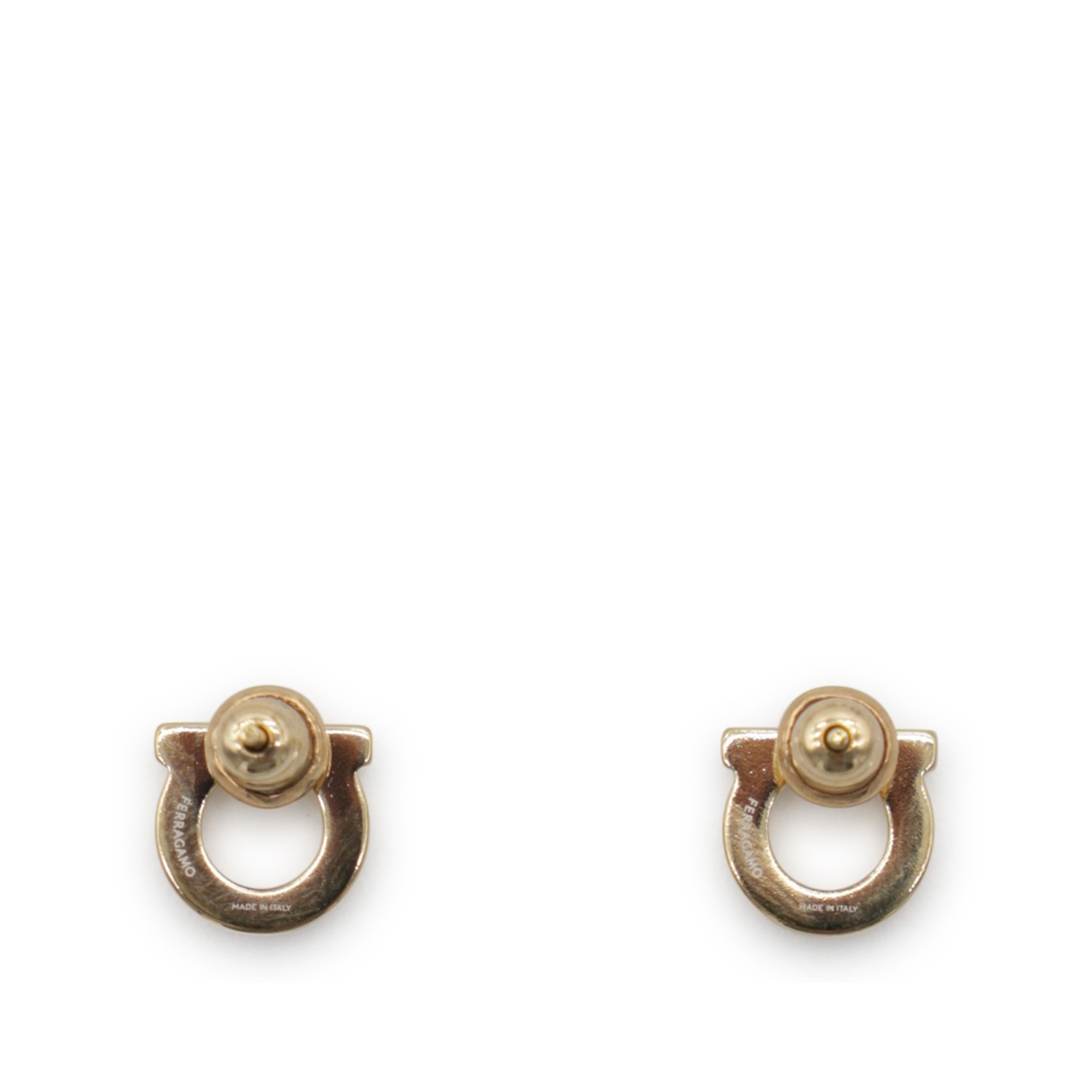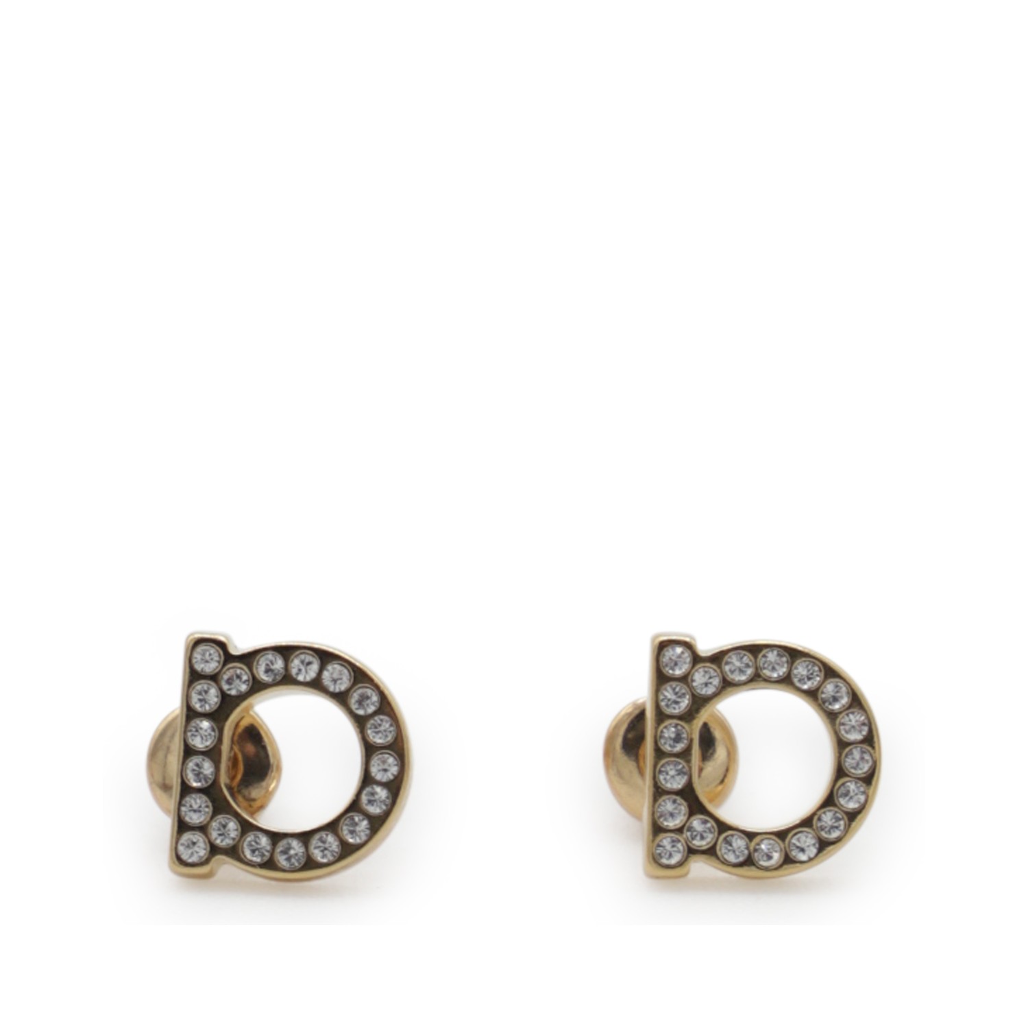 Gold metal earrings from Ferragamo featuring back closure, stud design and crystals.