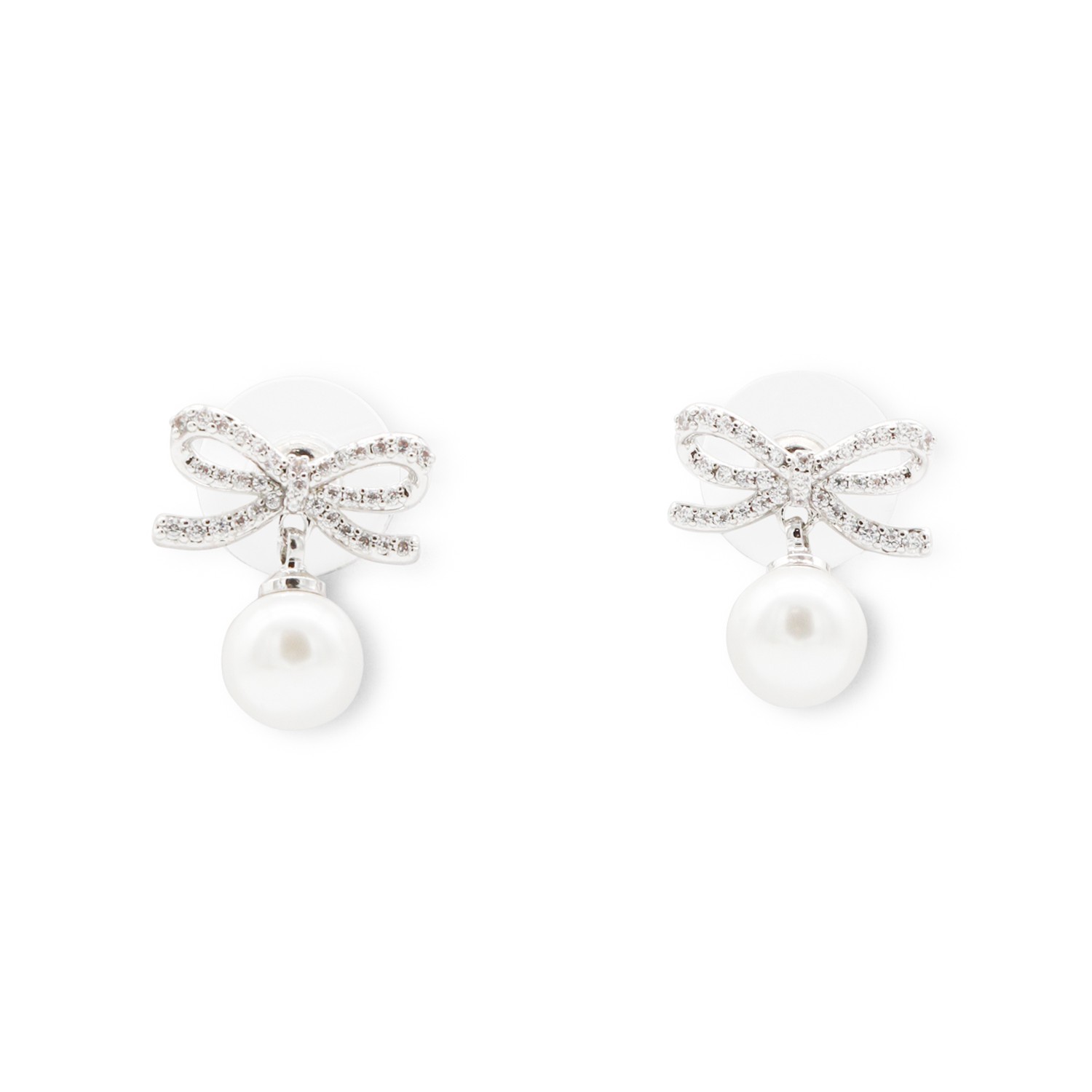 Silver and pearl earrings from Self-Portrait featuring plated brass, pearls and crystal embellishment.