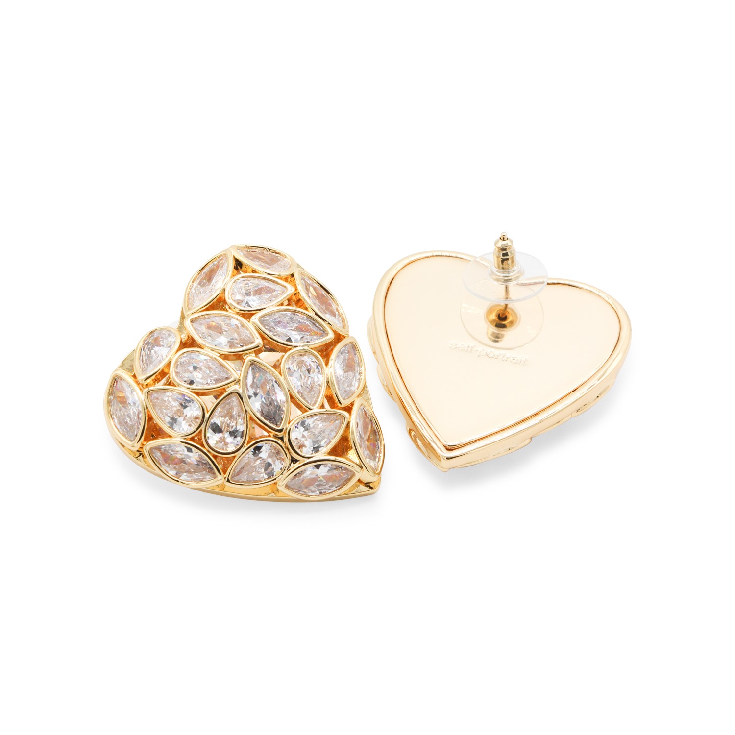 Gold earrings from Self-Portrait featuring gold tone hardware and crystals.