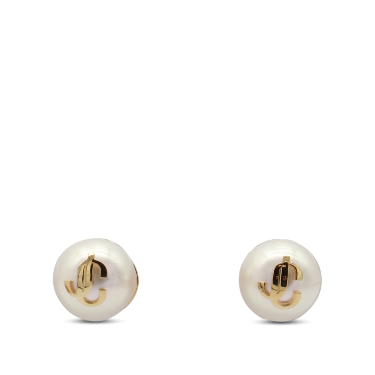 Pearl earrings from Jimmy Choo featuring pearl and gold tone logo.