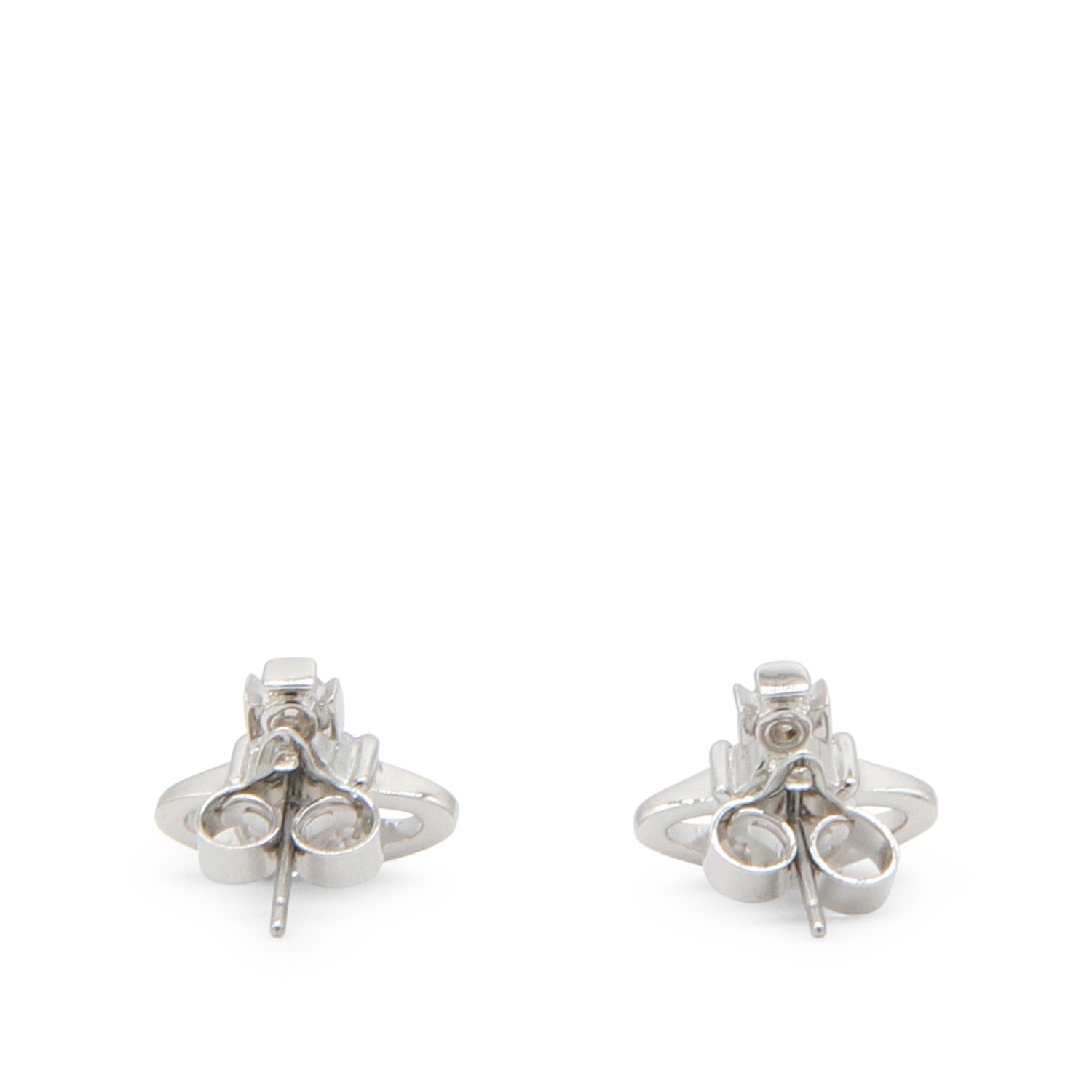 Silver metal earrings from Vivienne Westwood featuring silver tone brass, Orb shape, crystals and back fastening.