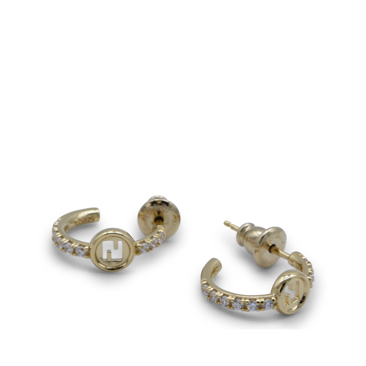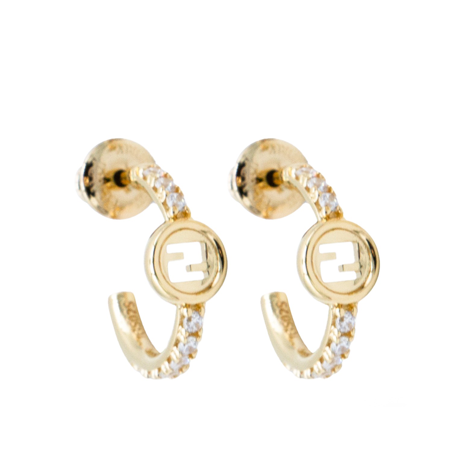 Gold tone earrings from Fendi featuring back fastening, crystal and frontal logo detail.