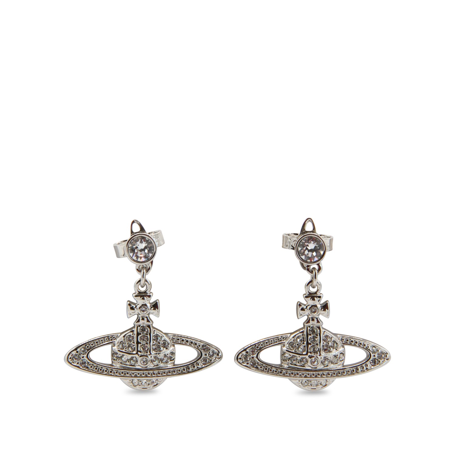 Silver metal earrings from Vivienne Westwood featuring crystals, classic fastening, brass and Strobe charm.