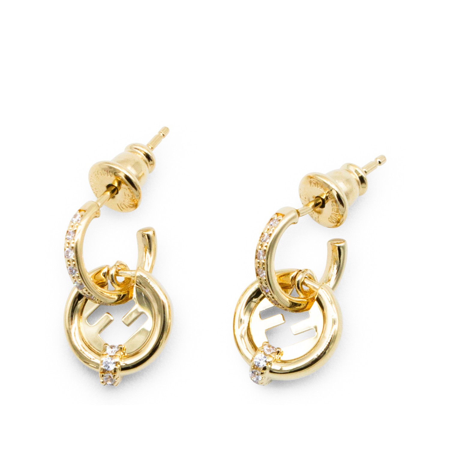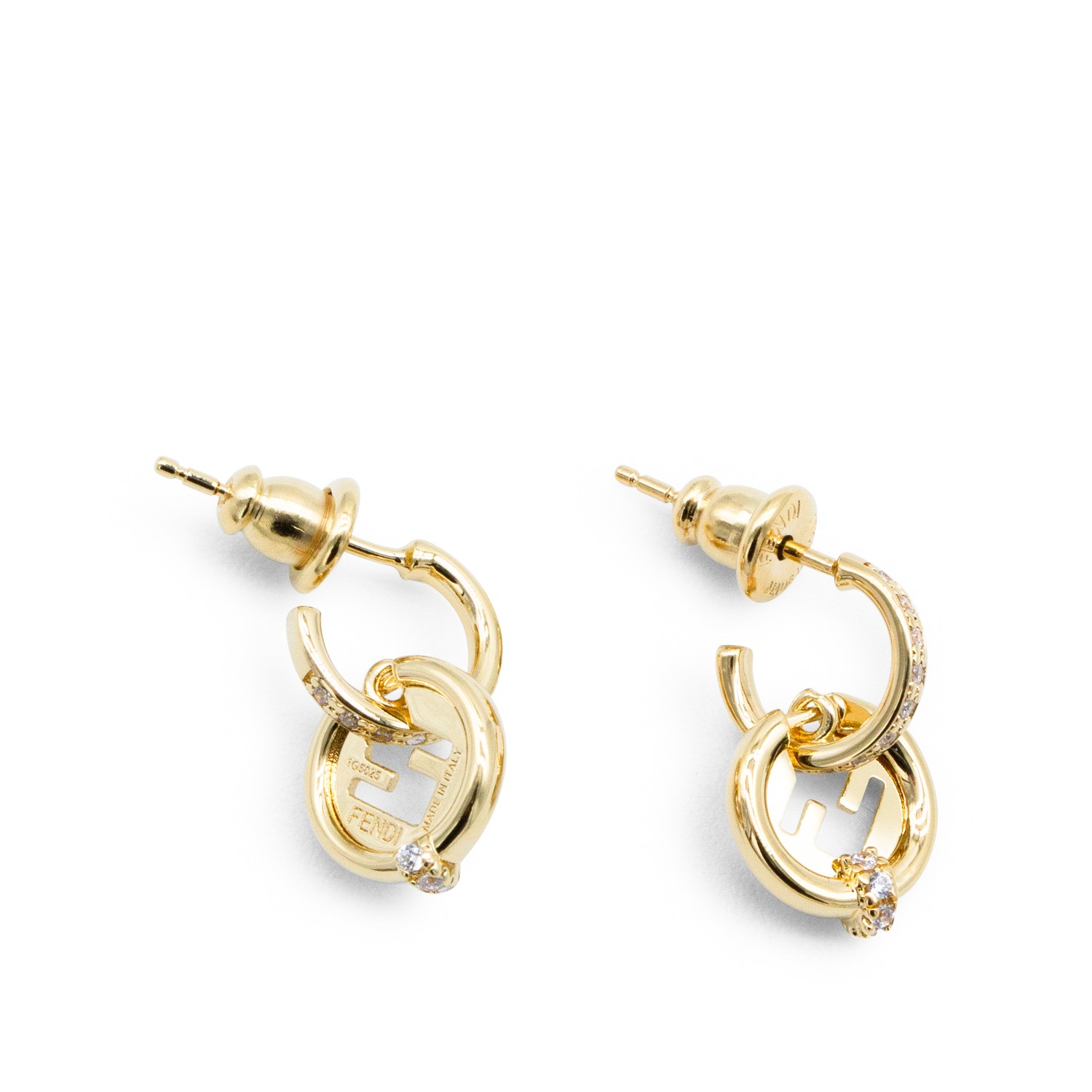 Gold tone crystal earrings from Fendi featuring back fastening, logo and gold tone hardware.