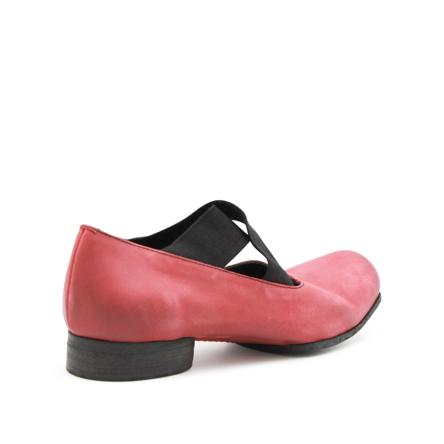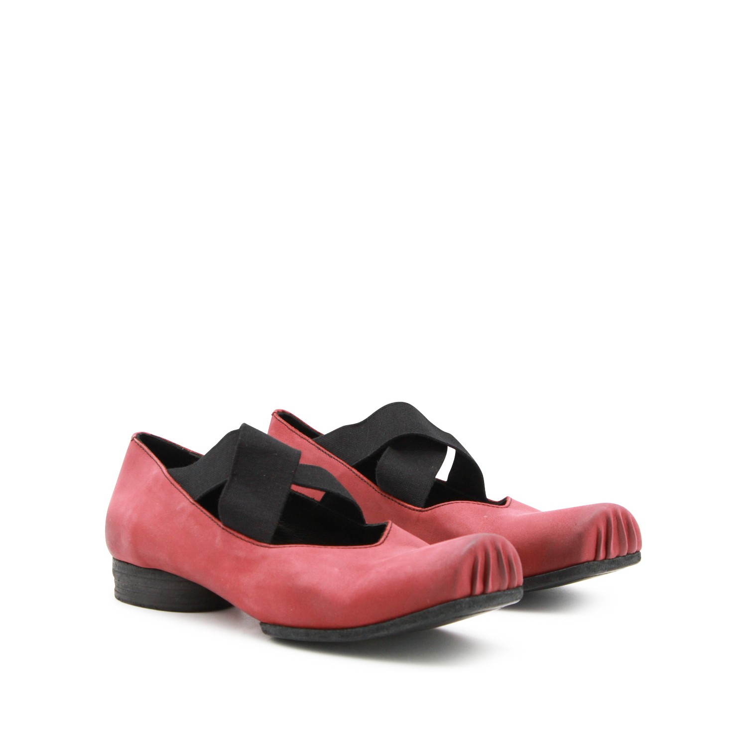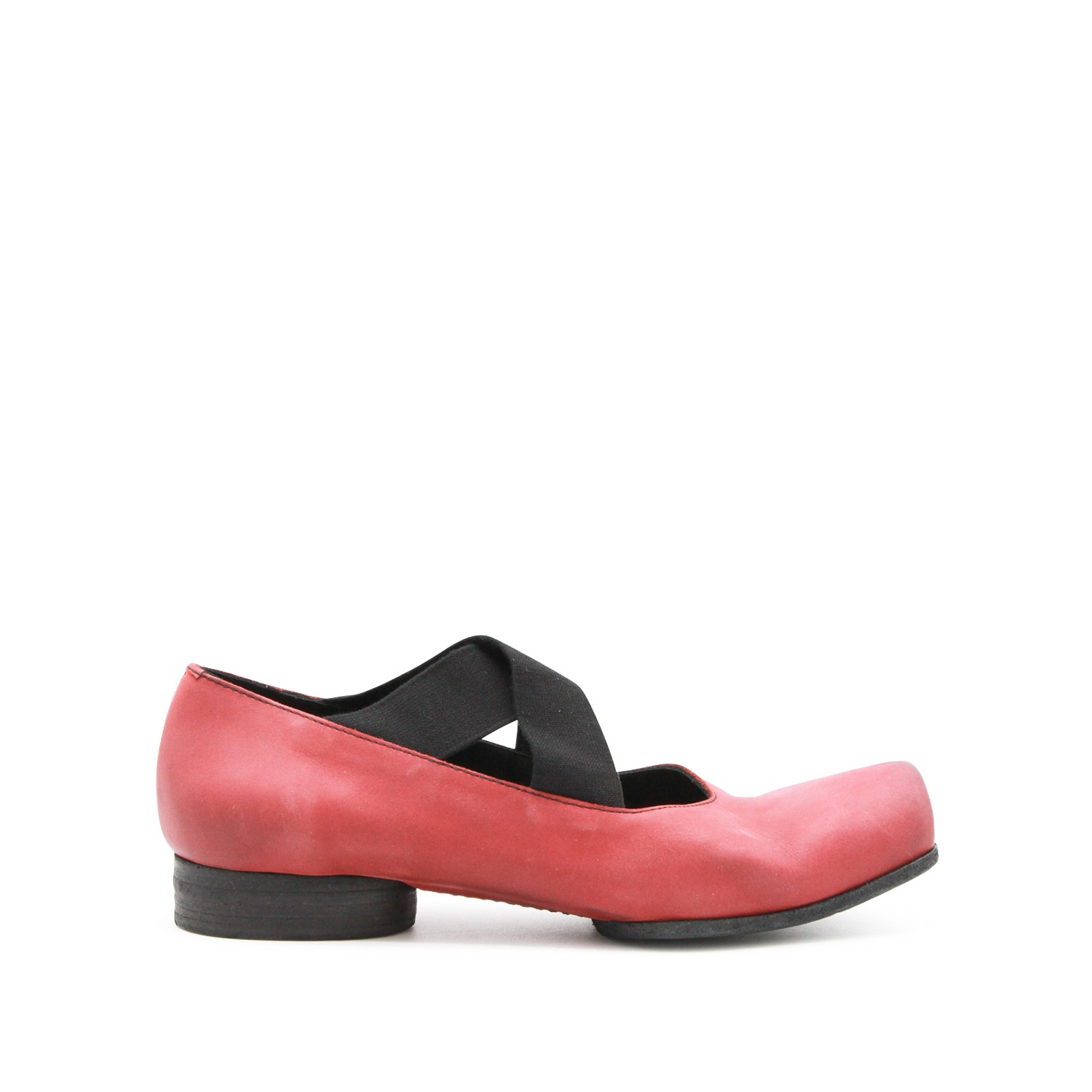 Red and black leather Ballet flats from Uma Wang featuring square toe, slip-on style, front elasticated straps and low heel.