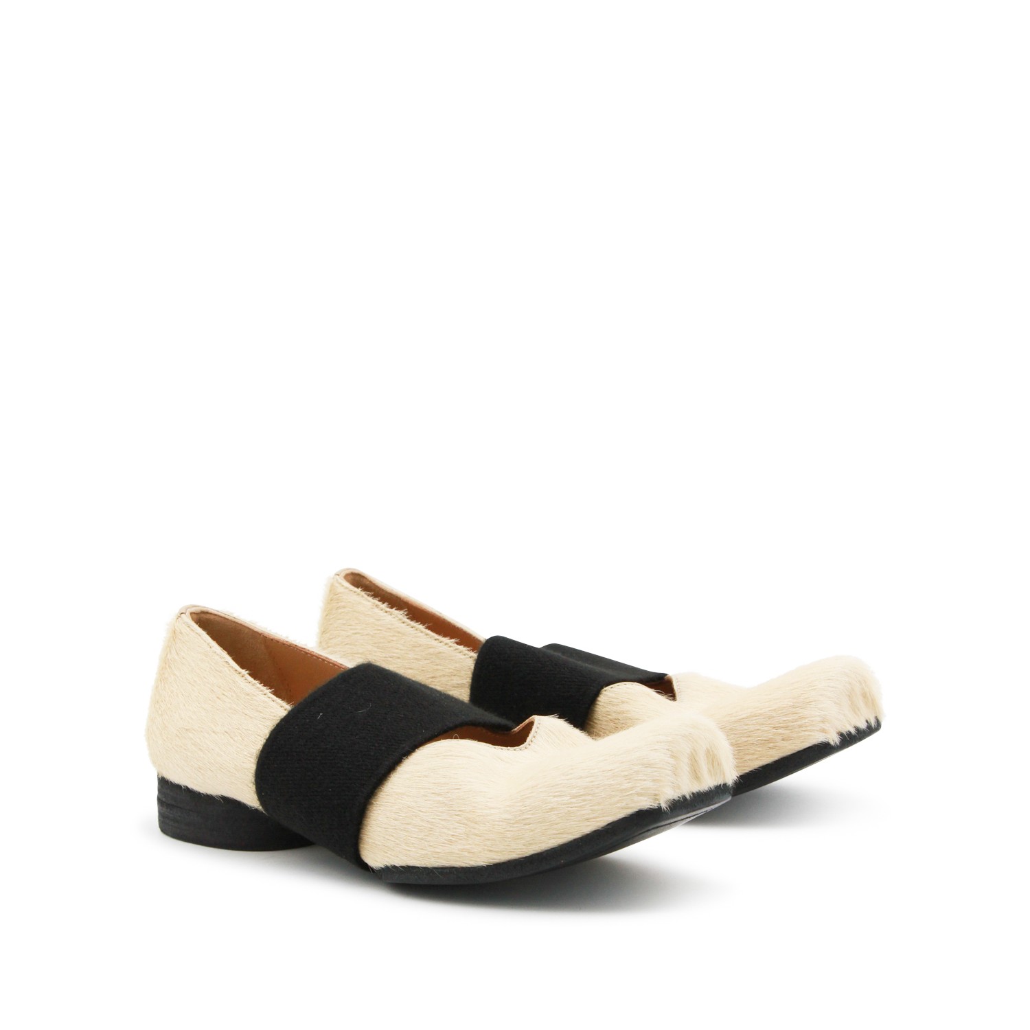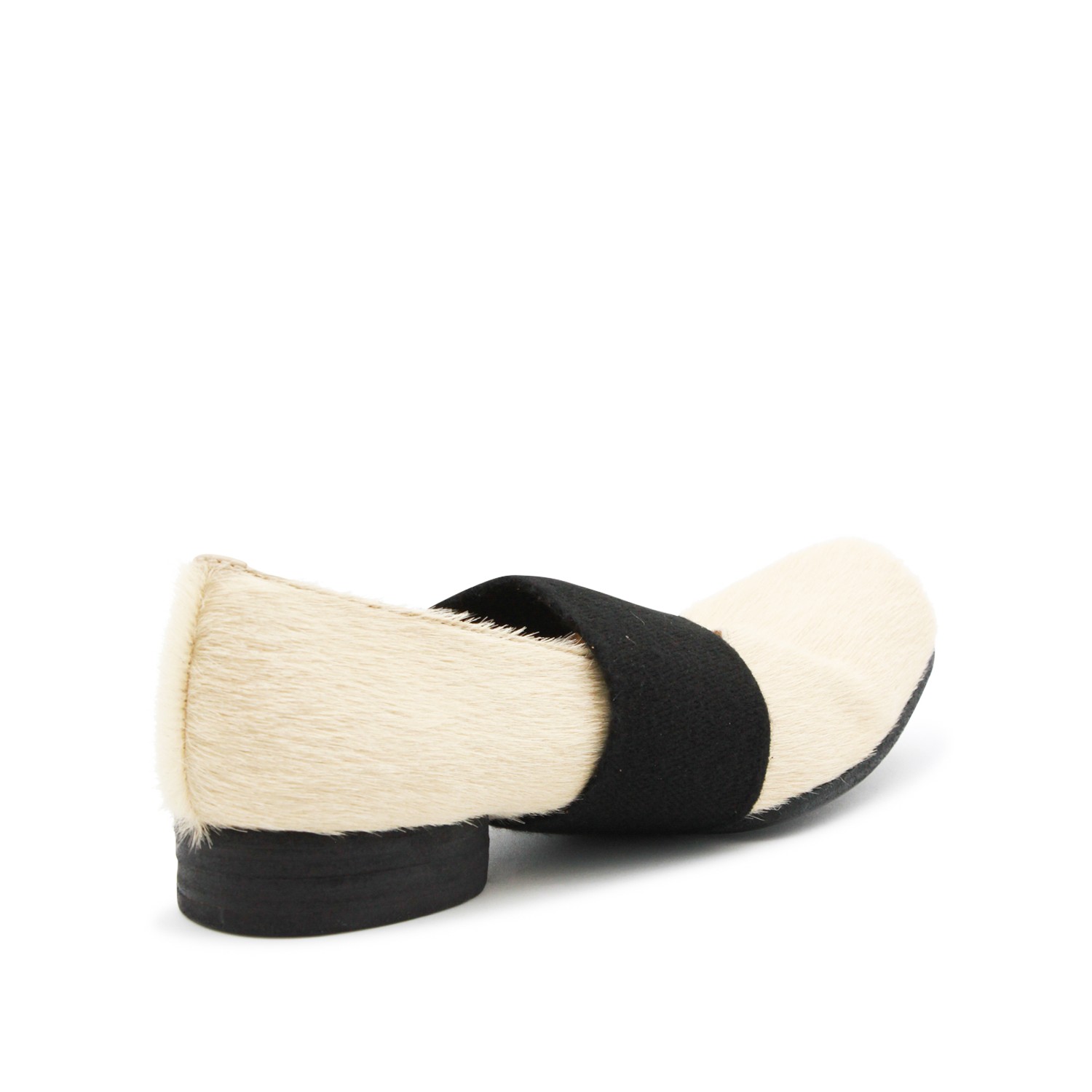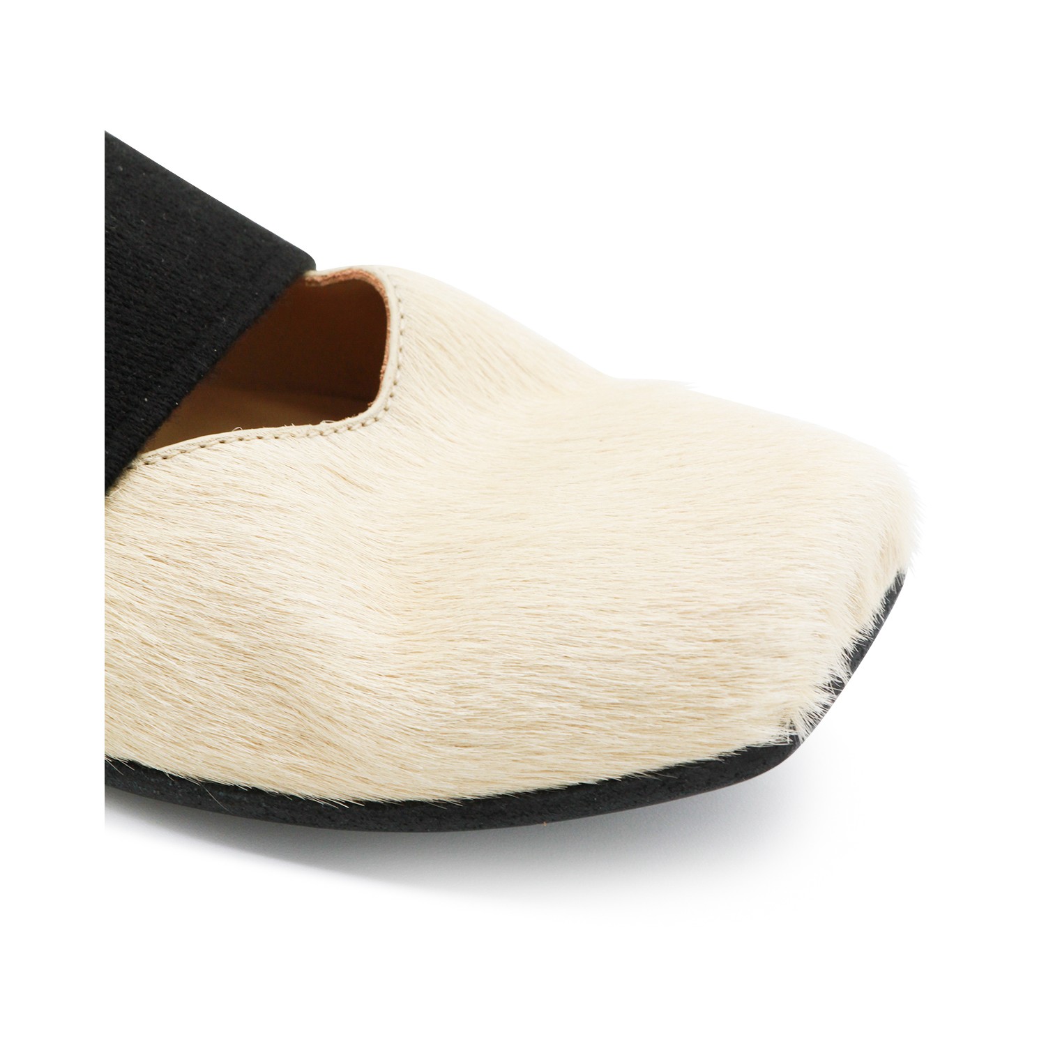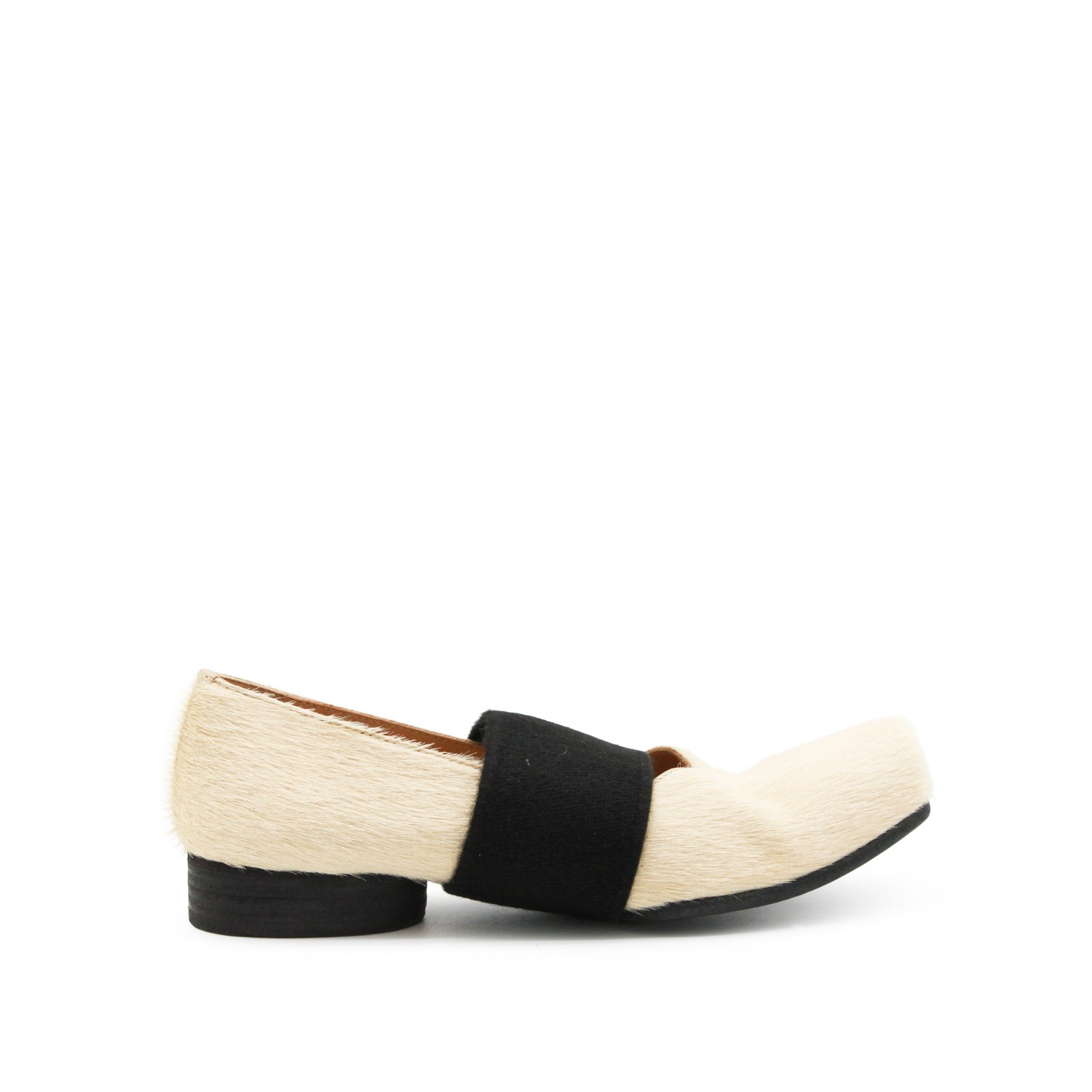 White leather Ballet flats from Uma Wang featuring square toe, slip-on style, elastix band and flat sole.