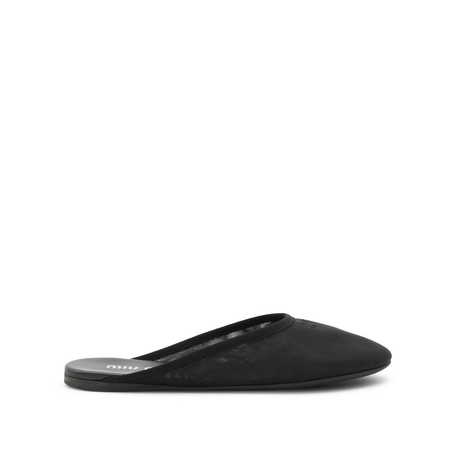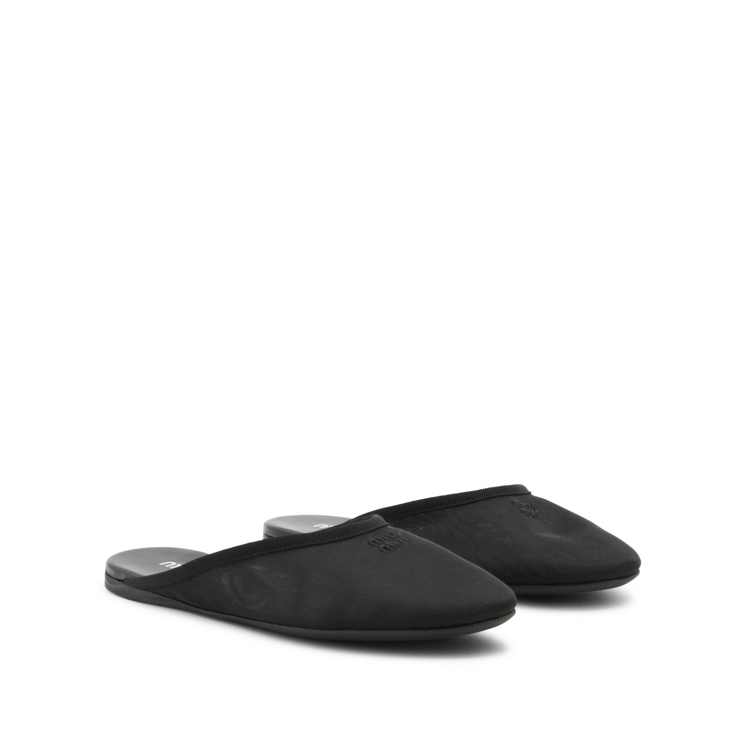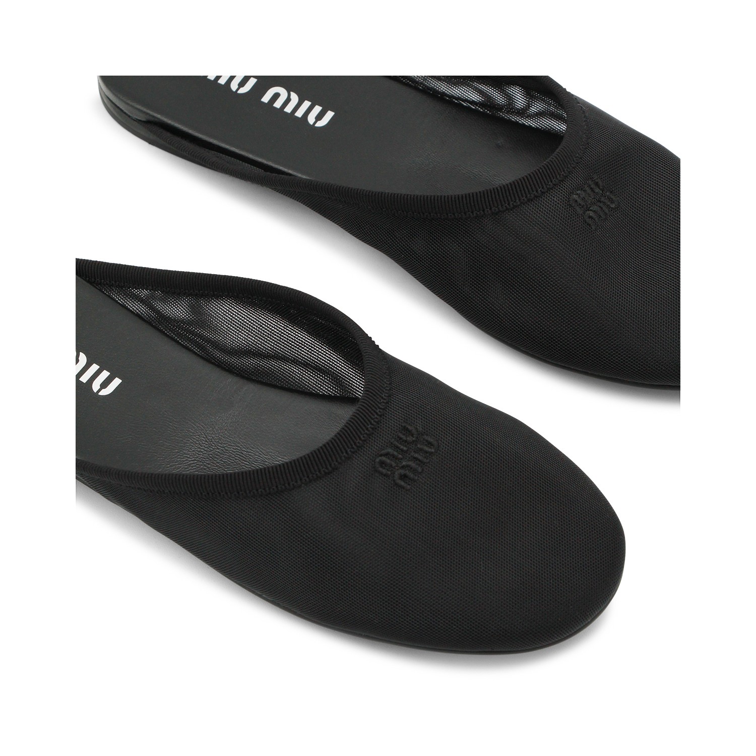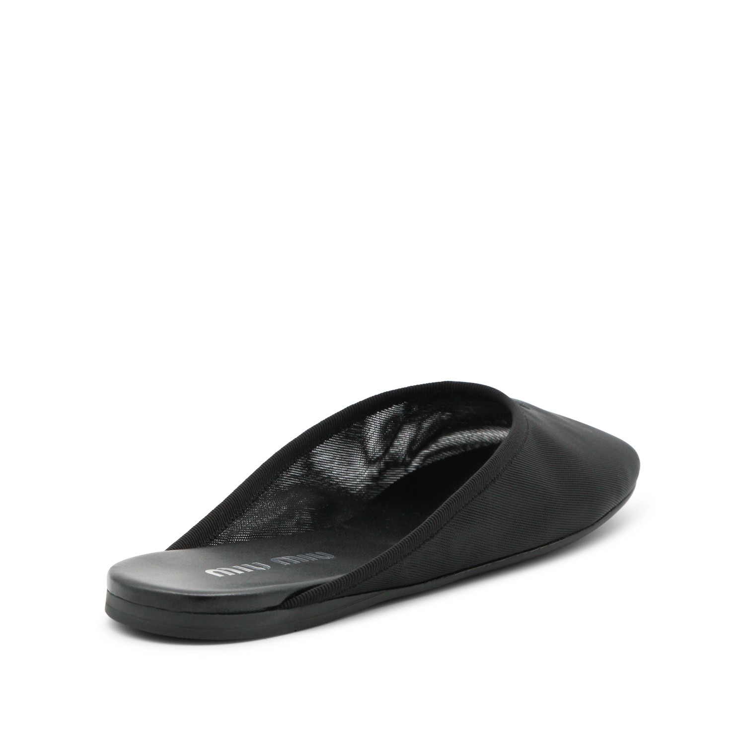Black leather flats from Miu Miu featuring round toe, slip on style and leather sole.