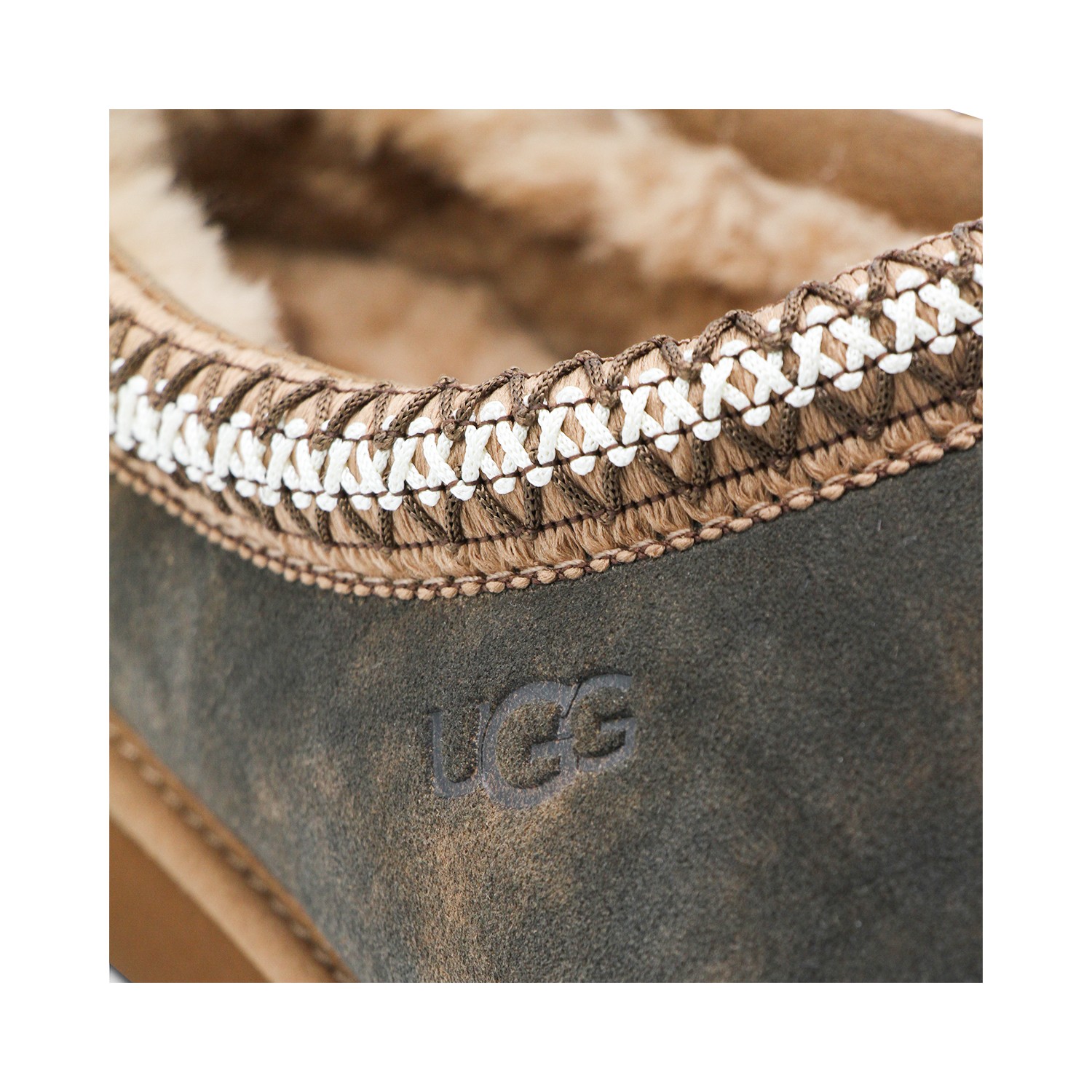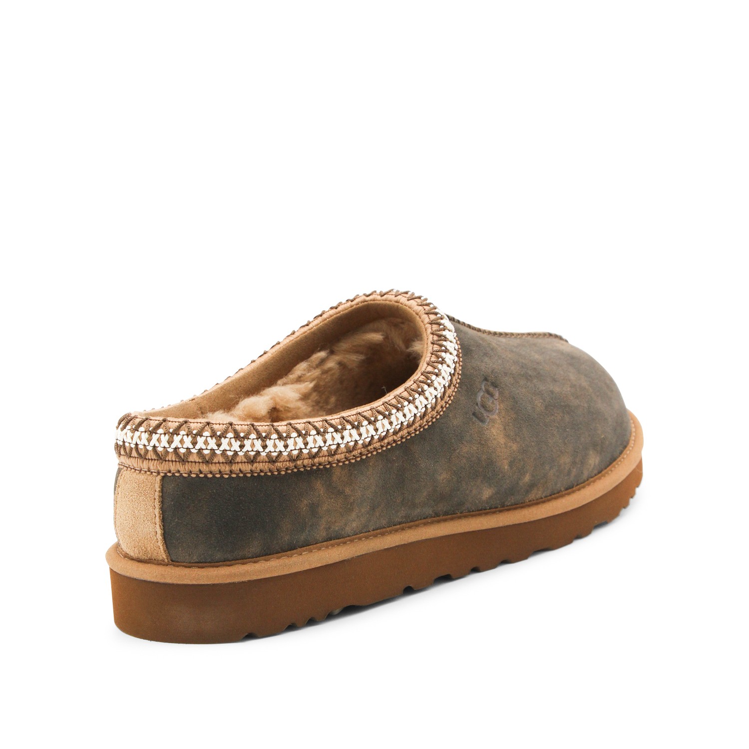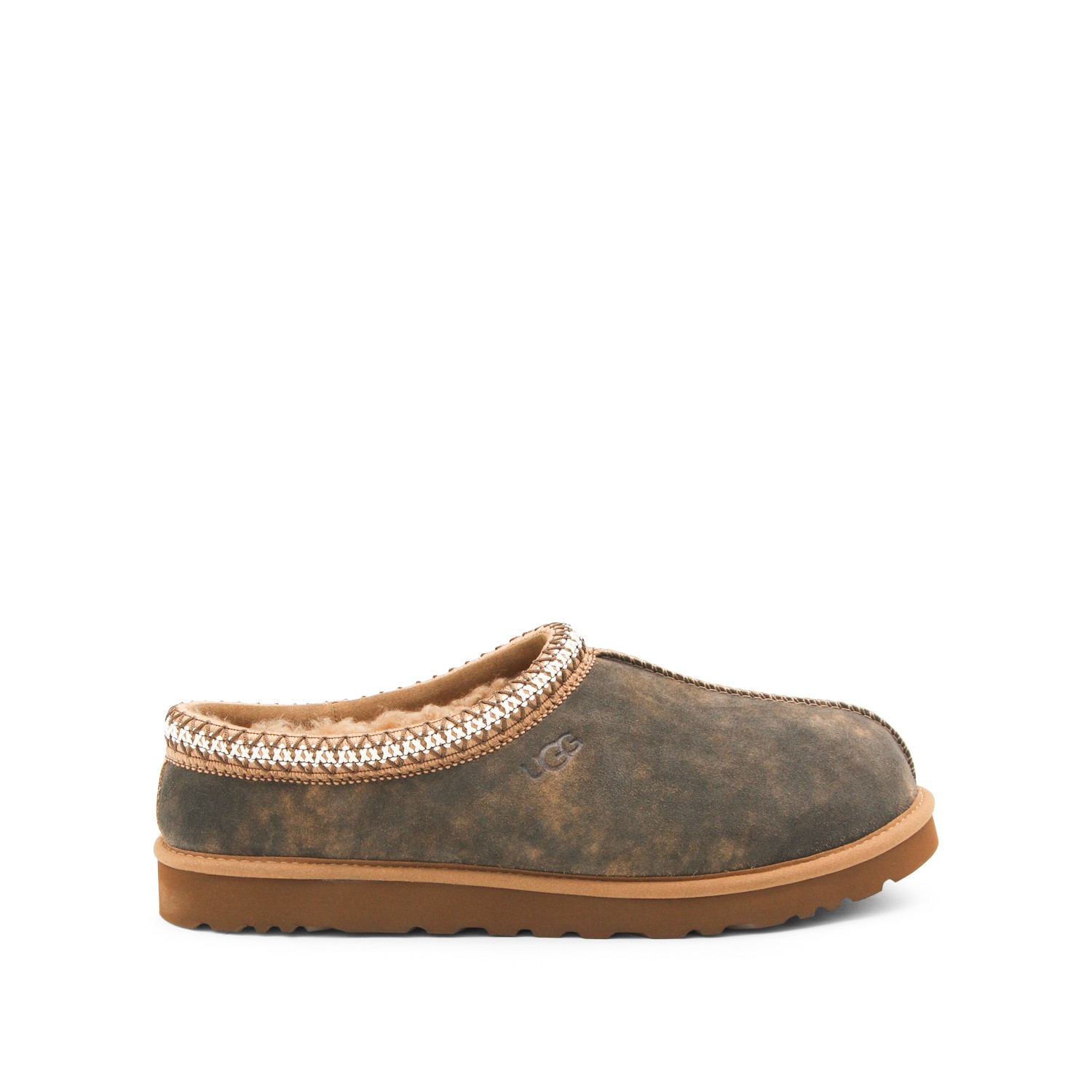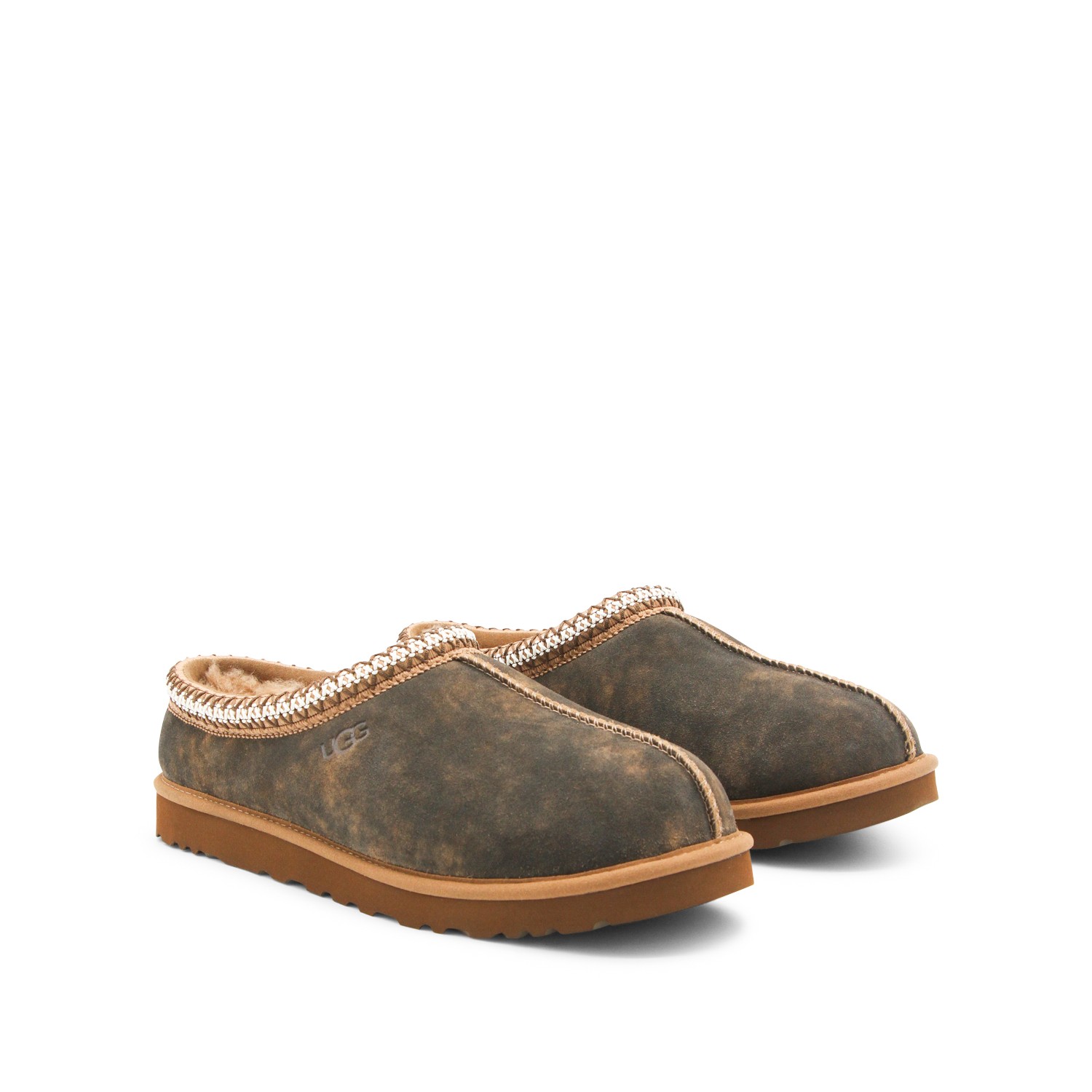 Brown flats from UGG featuring round toe, logo detail and leather sole.