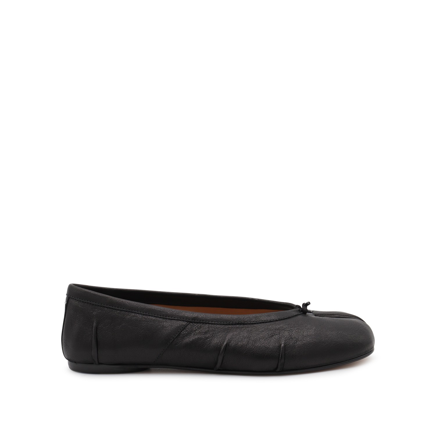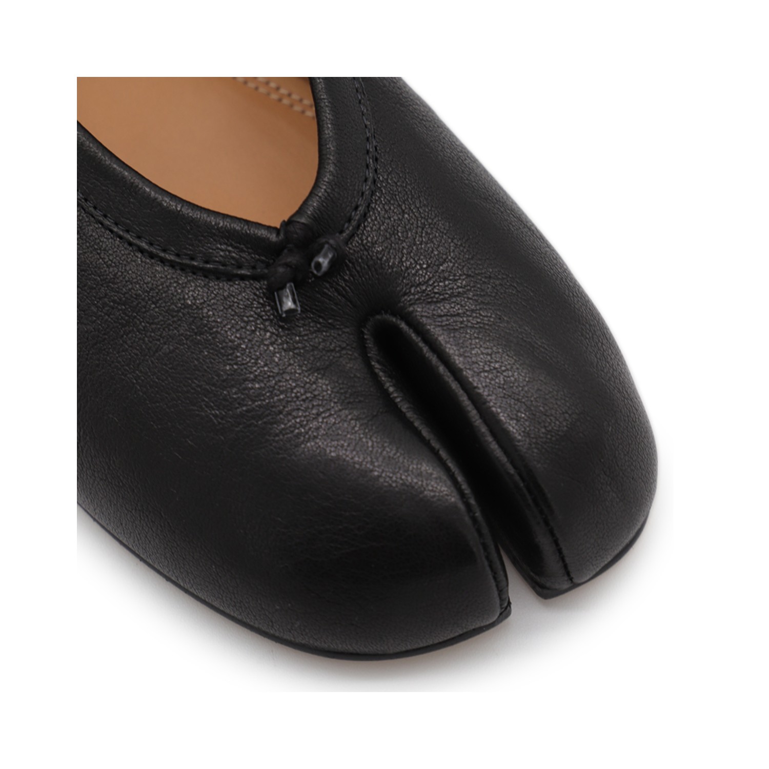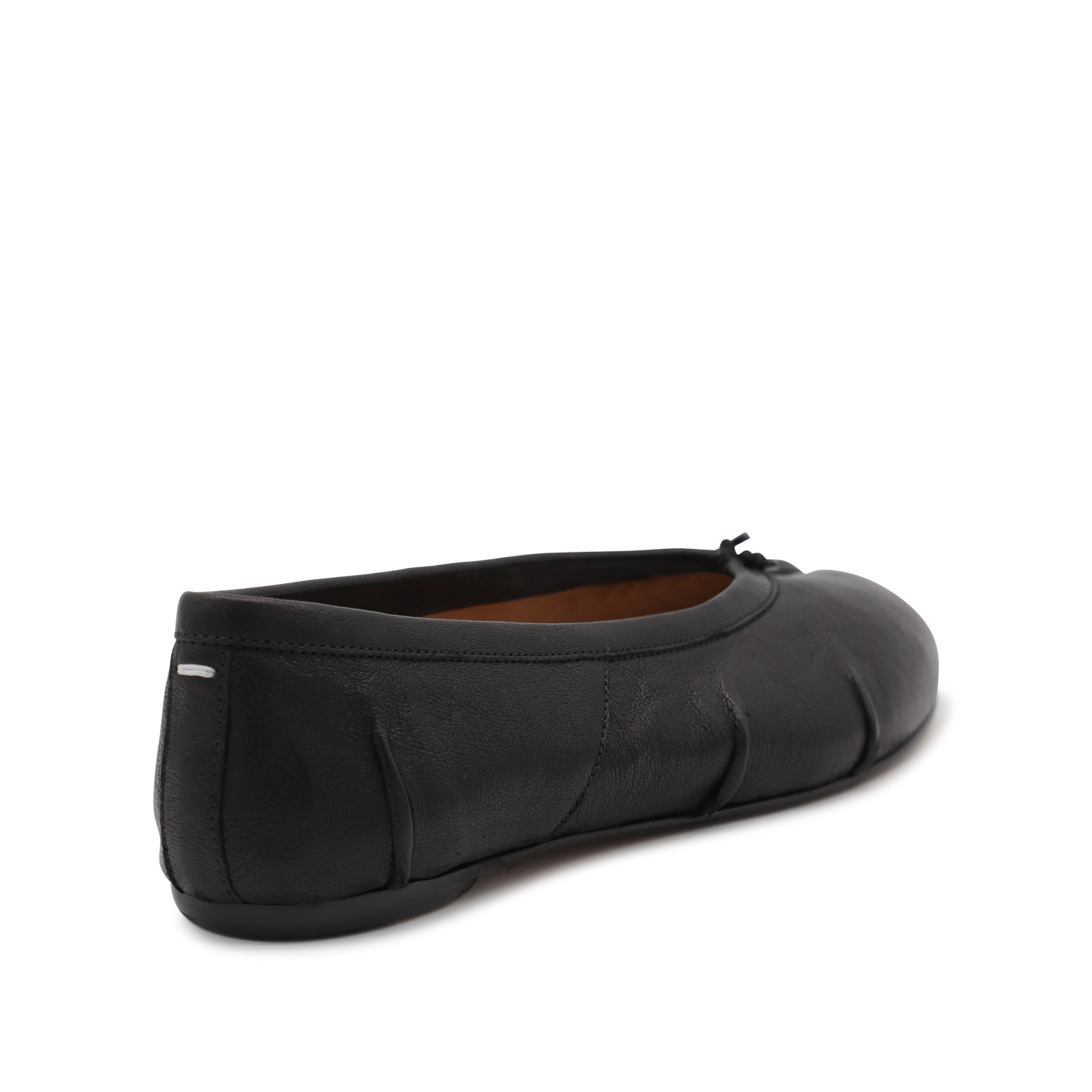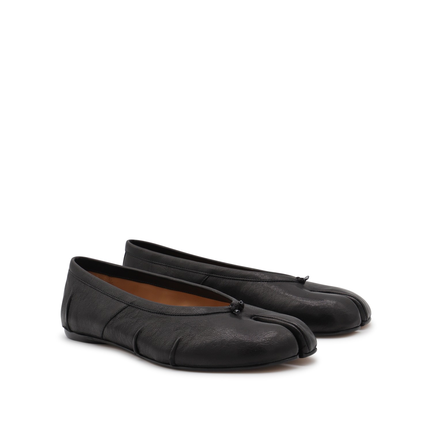 Black leather flats from Maison Margiela featuring Tabi toe, slip-on style, leather details and sole.