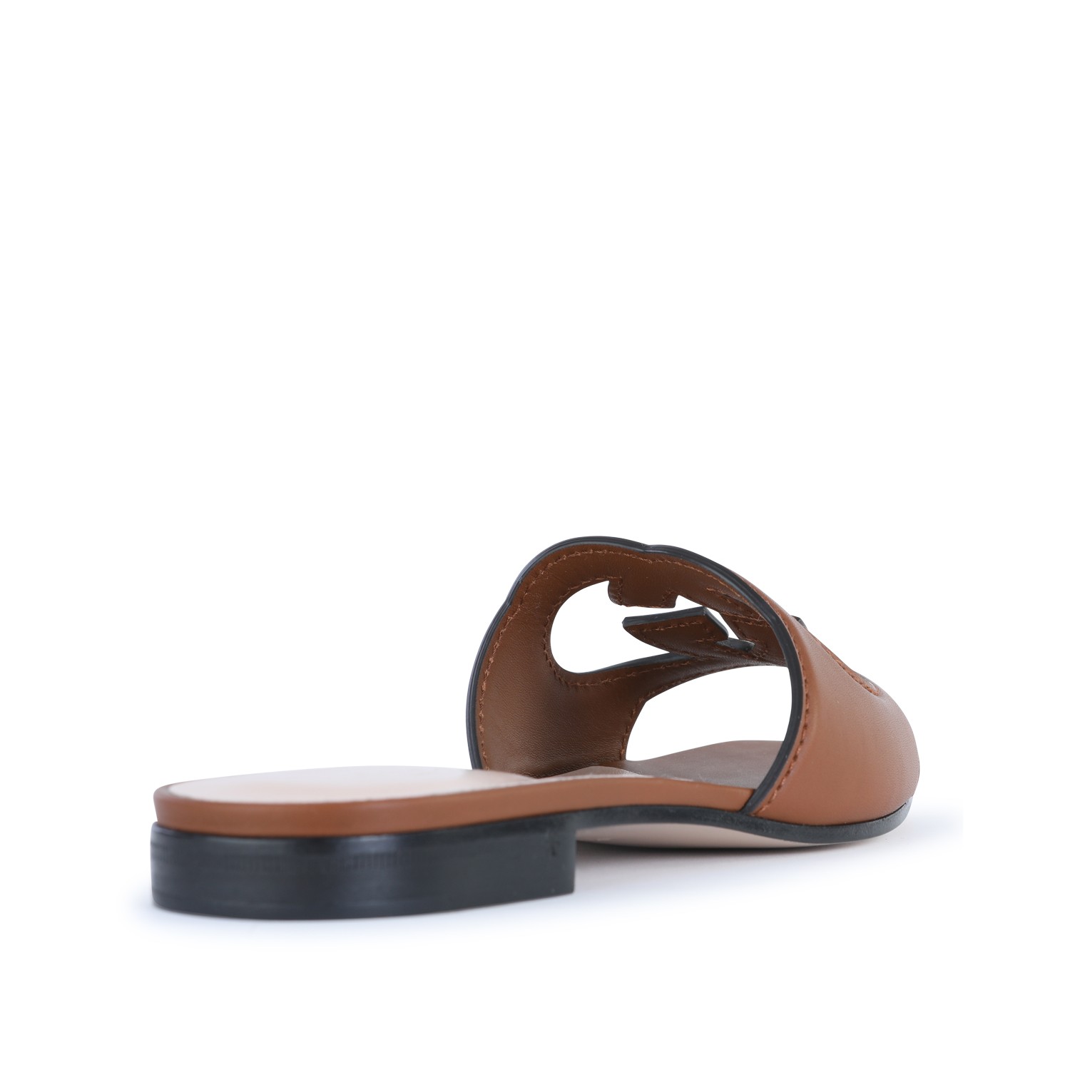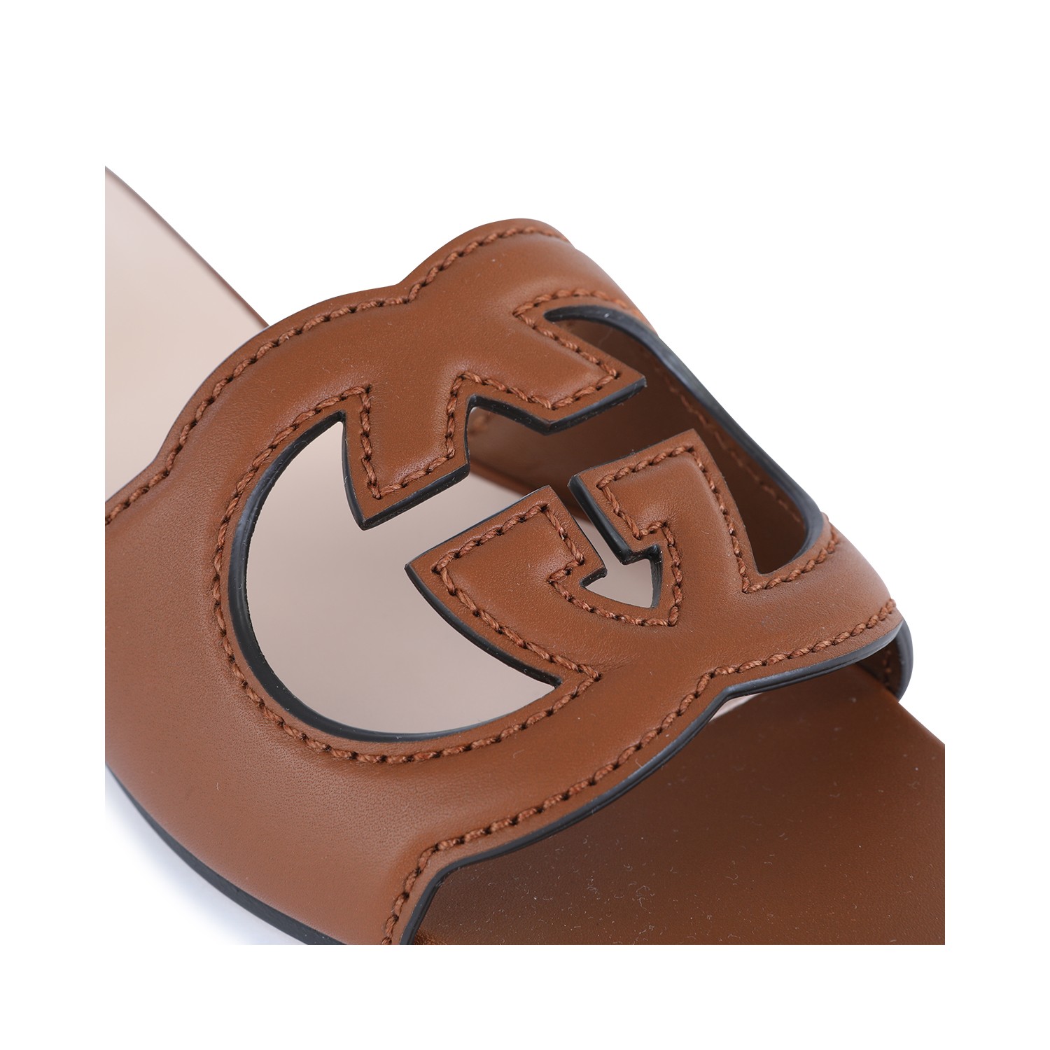BROWN LEATHER GG CROSS CUT OUT SANDALS