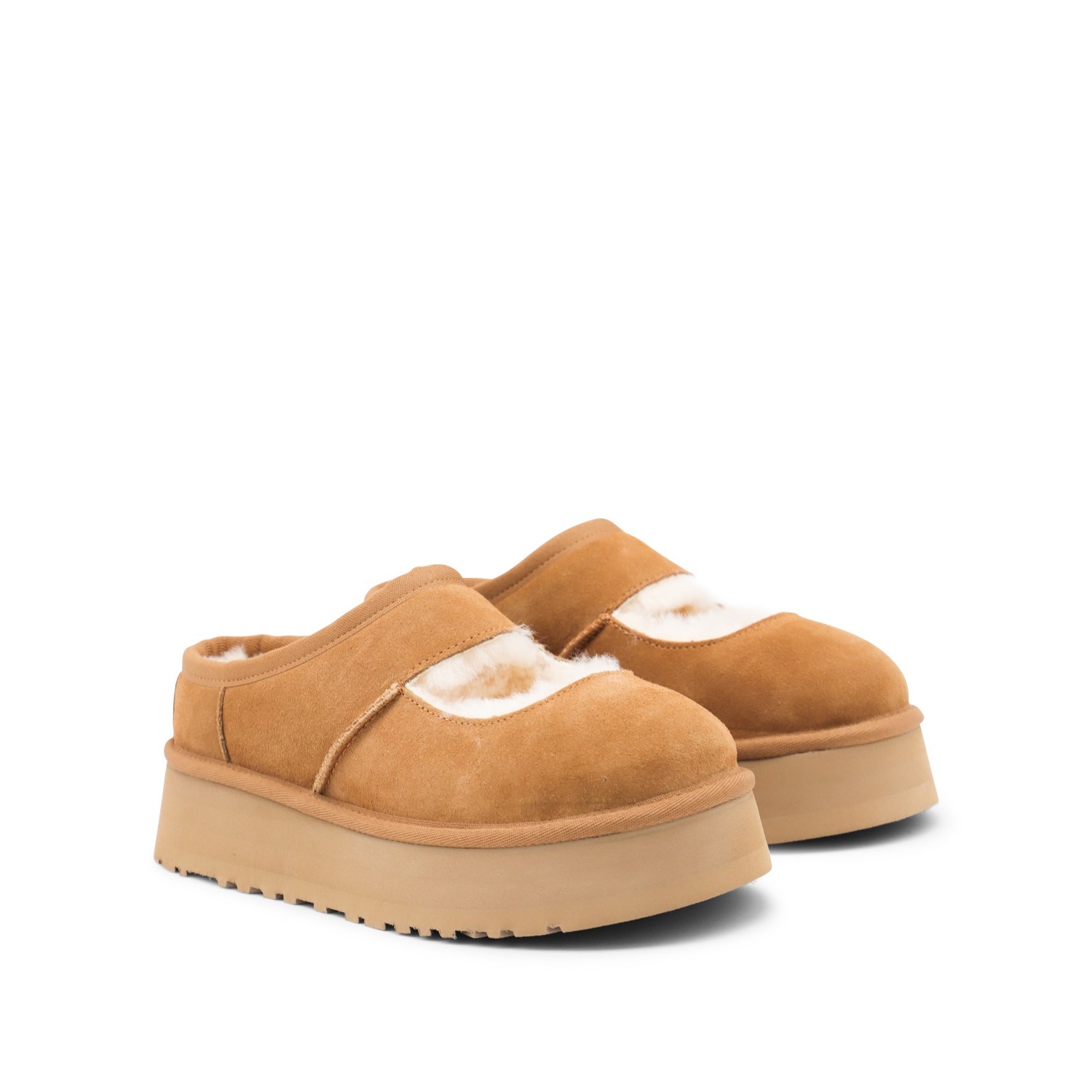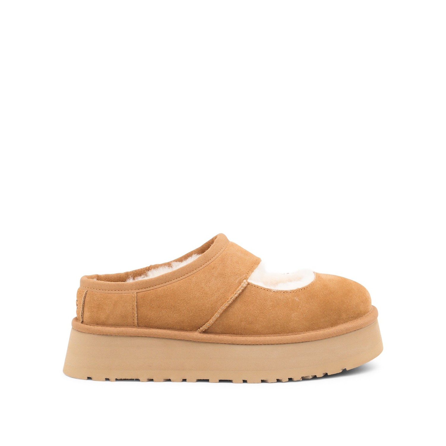 Chestnut Bea Mary Jane flats from Ugg featuring round toe, leather and oversize sole, frontal opening and inside hair.