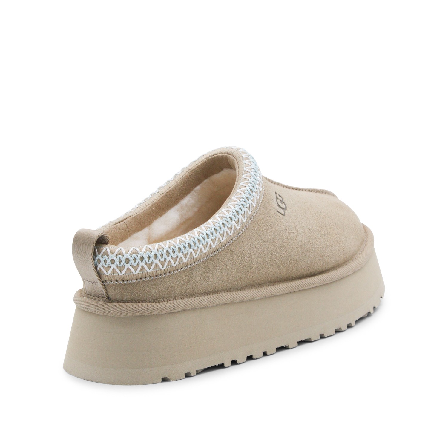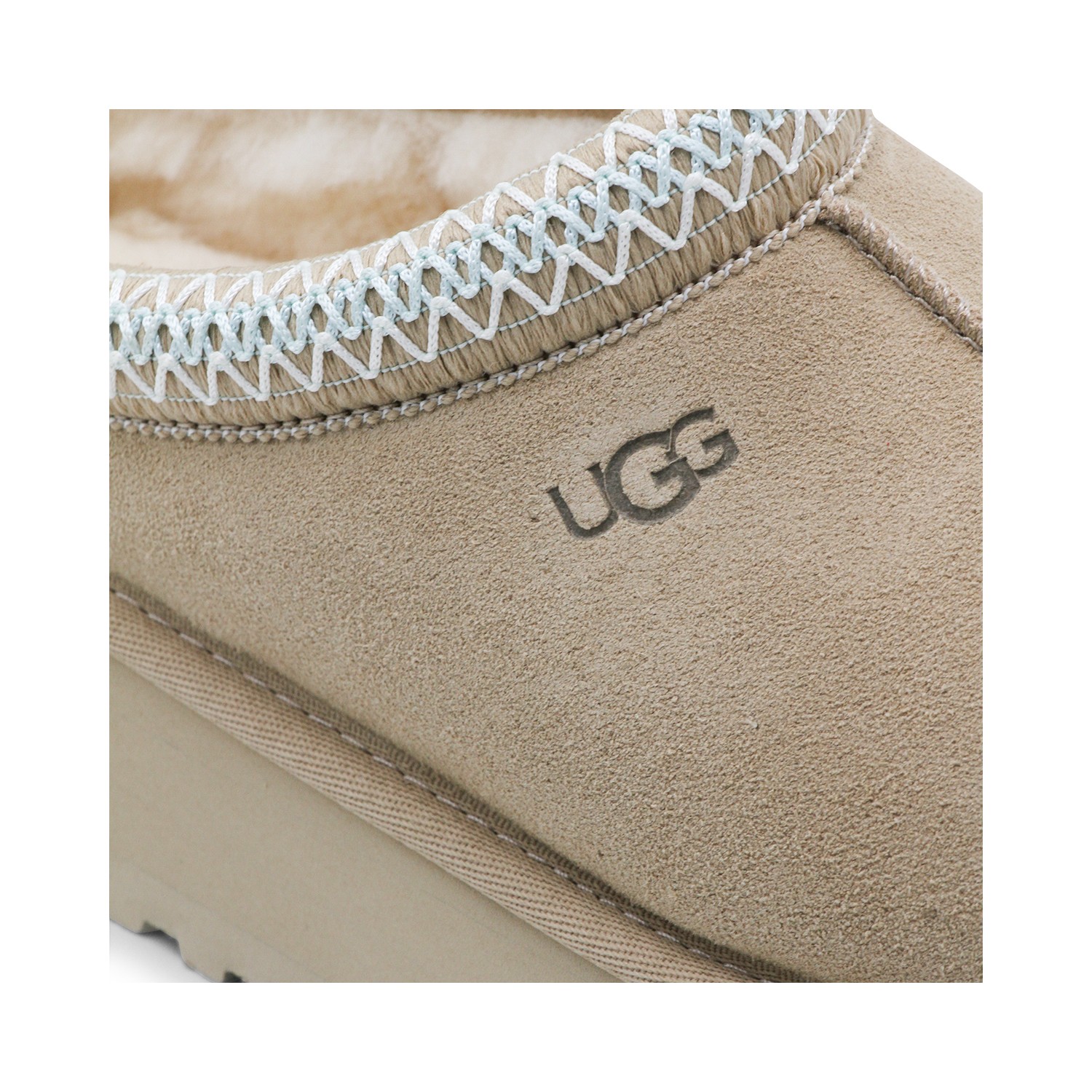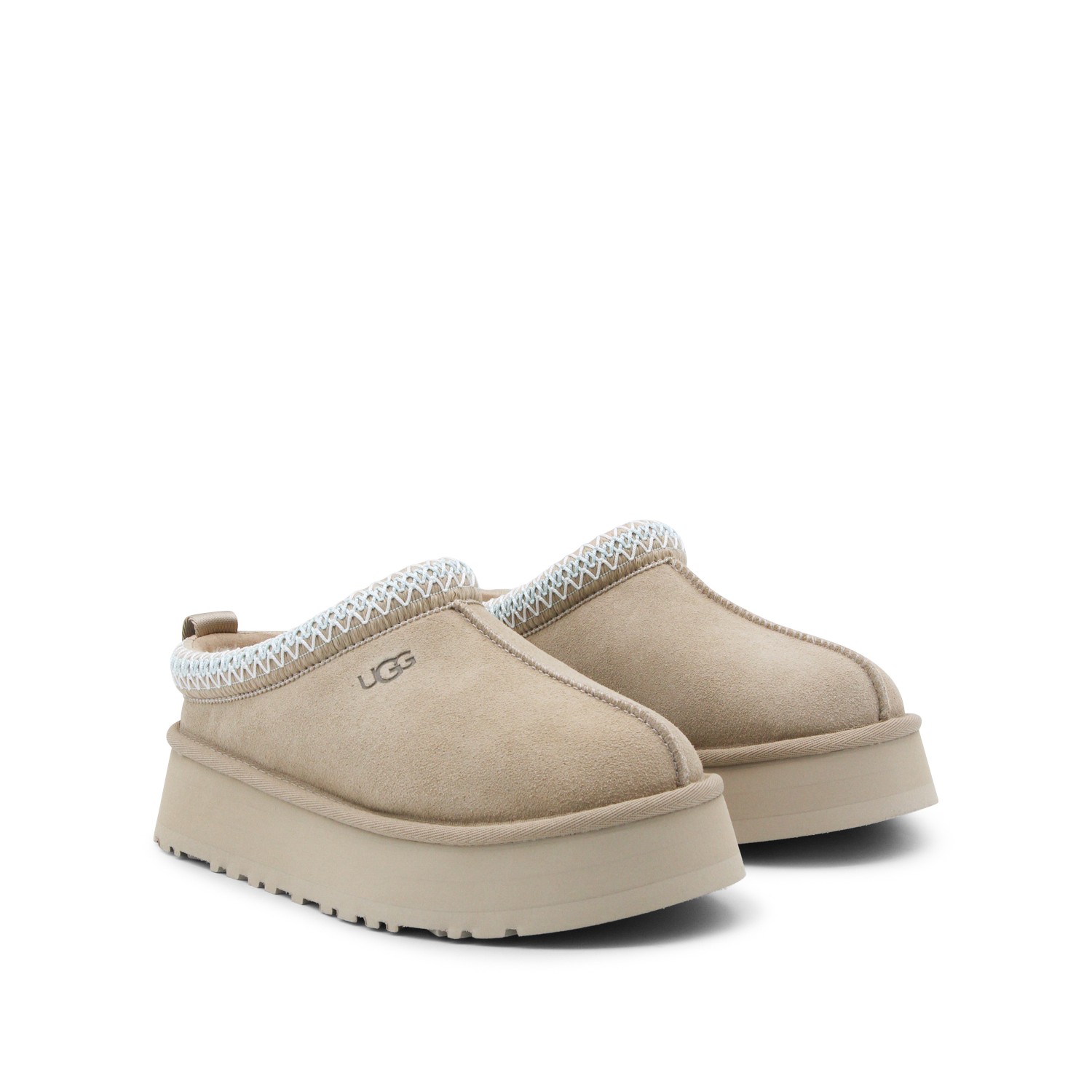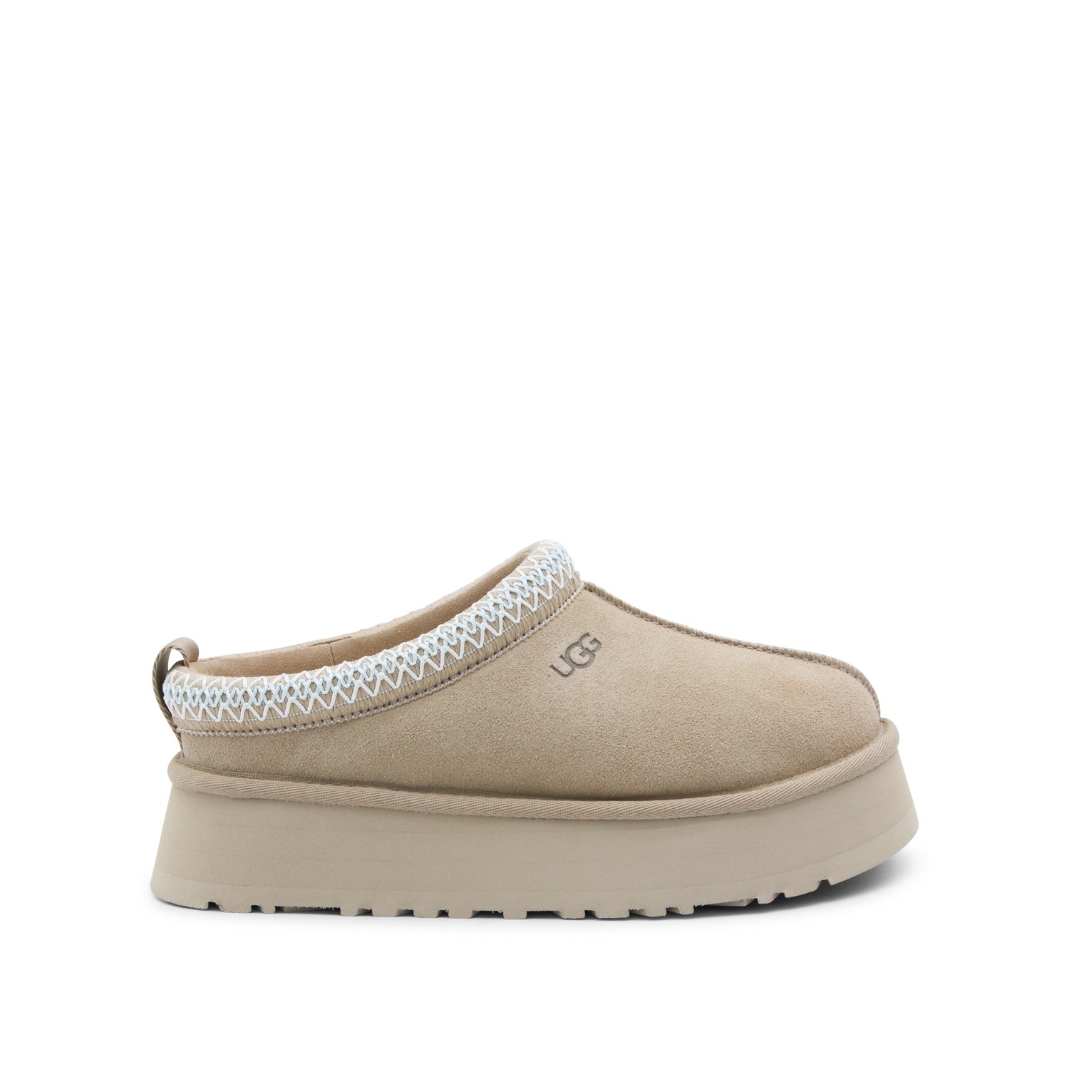 Sand leather W Tazz II flats fro UGG featuring round toe, slip-on style, suede, branded insole and rubber sole.