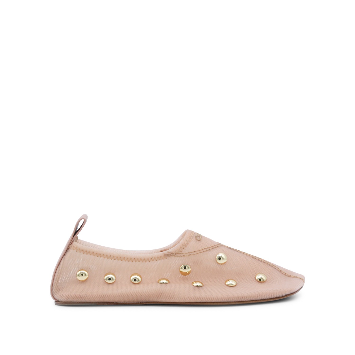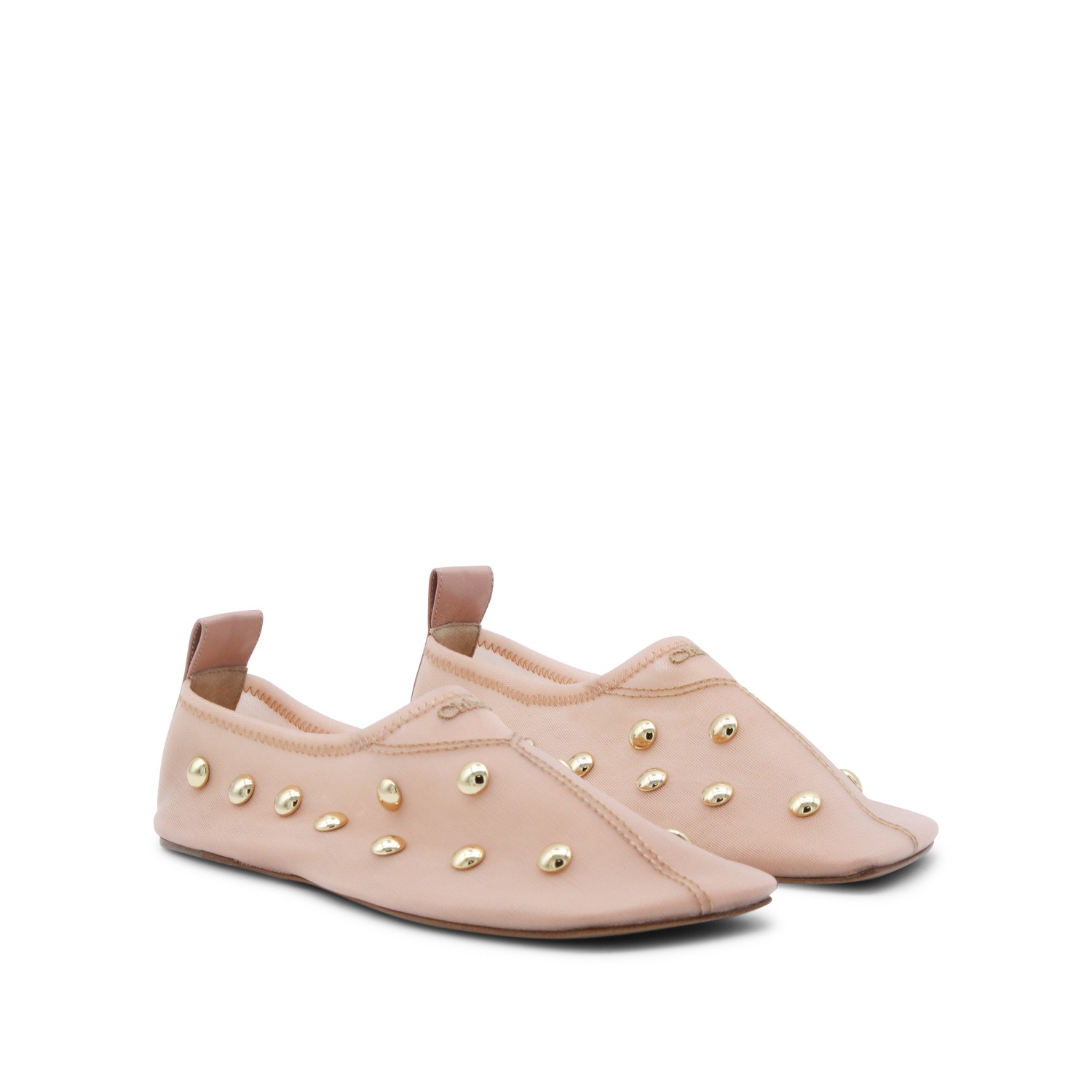 Beige Rita flats from Chlofeaturing round toe, trasparence, studs, slip-on style and leather sole.