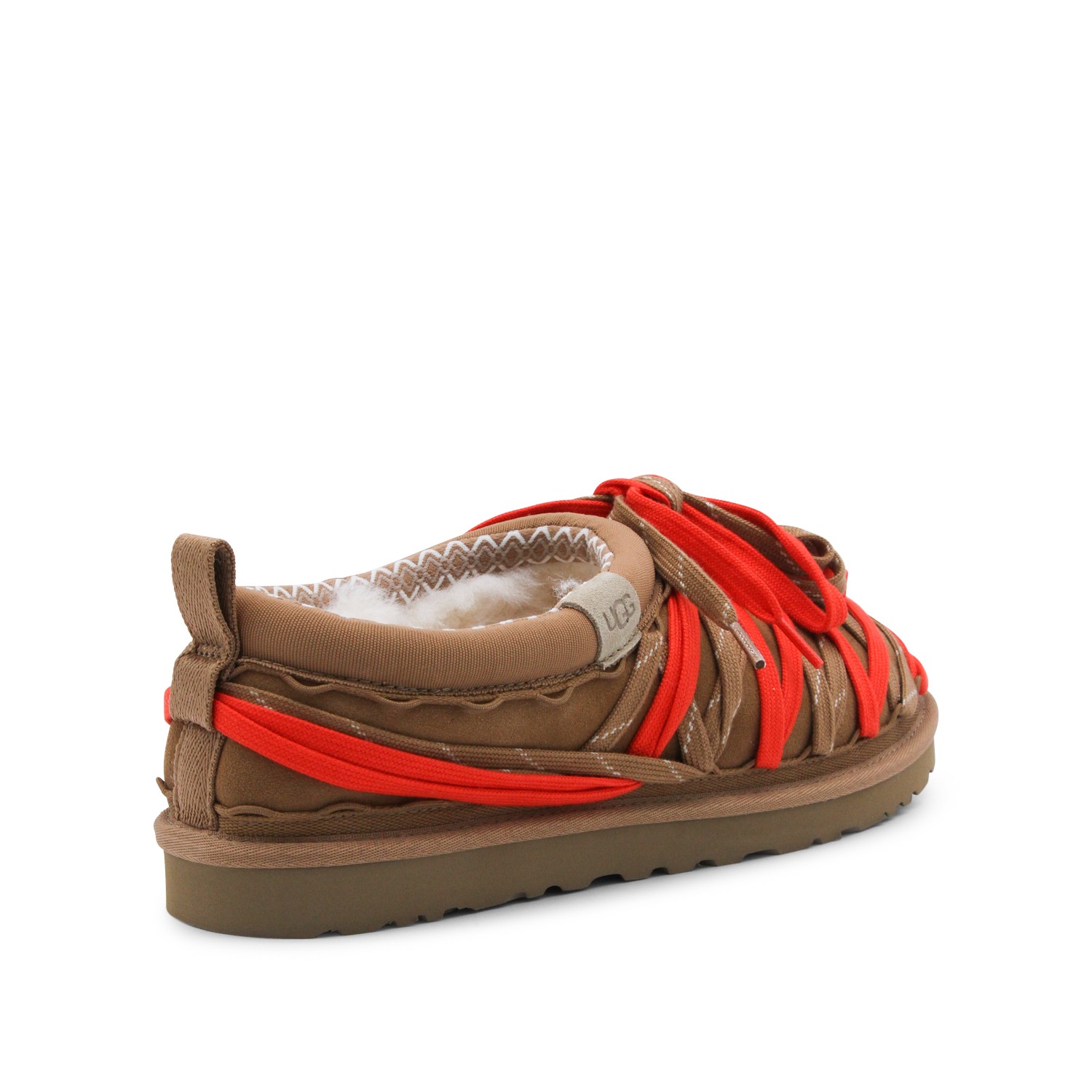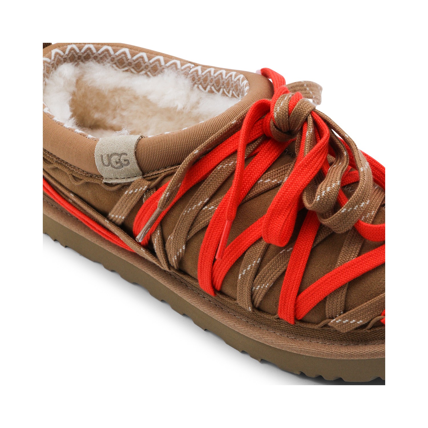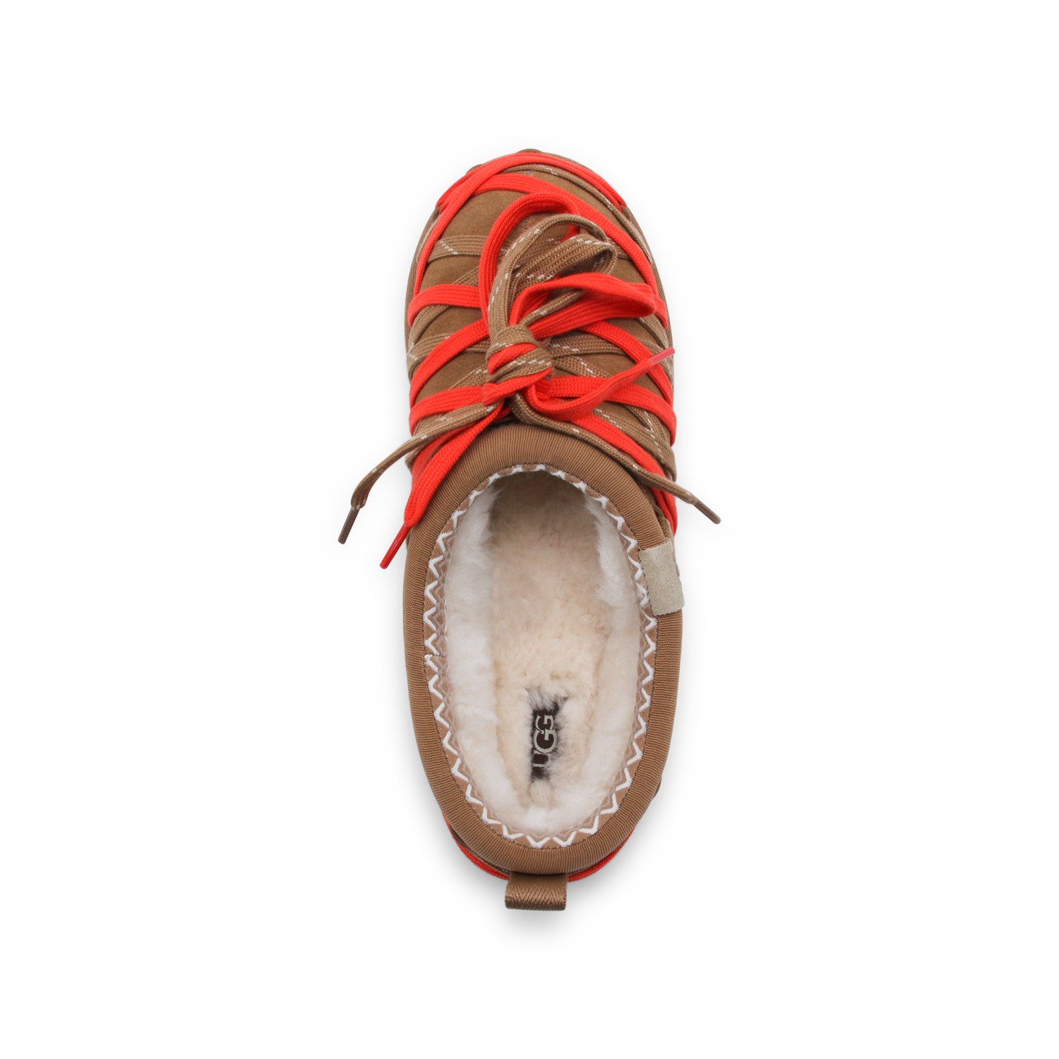 Brown Tasman Lace flats from UGG featuring round toe, slip-on style, logo label, contrasted lace details and rubber sole.