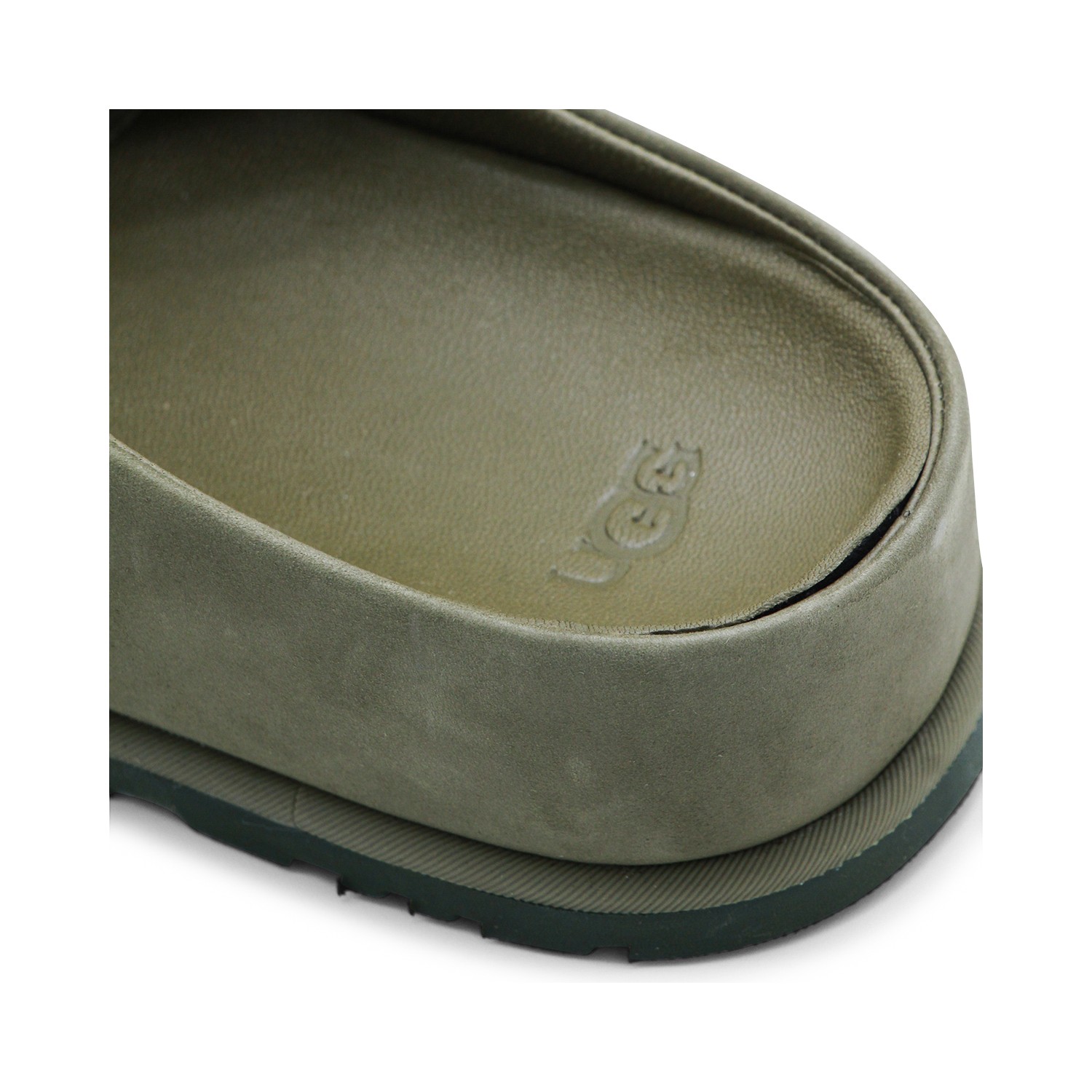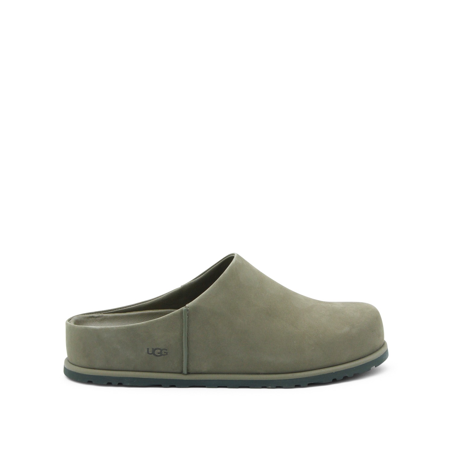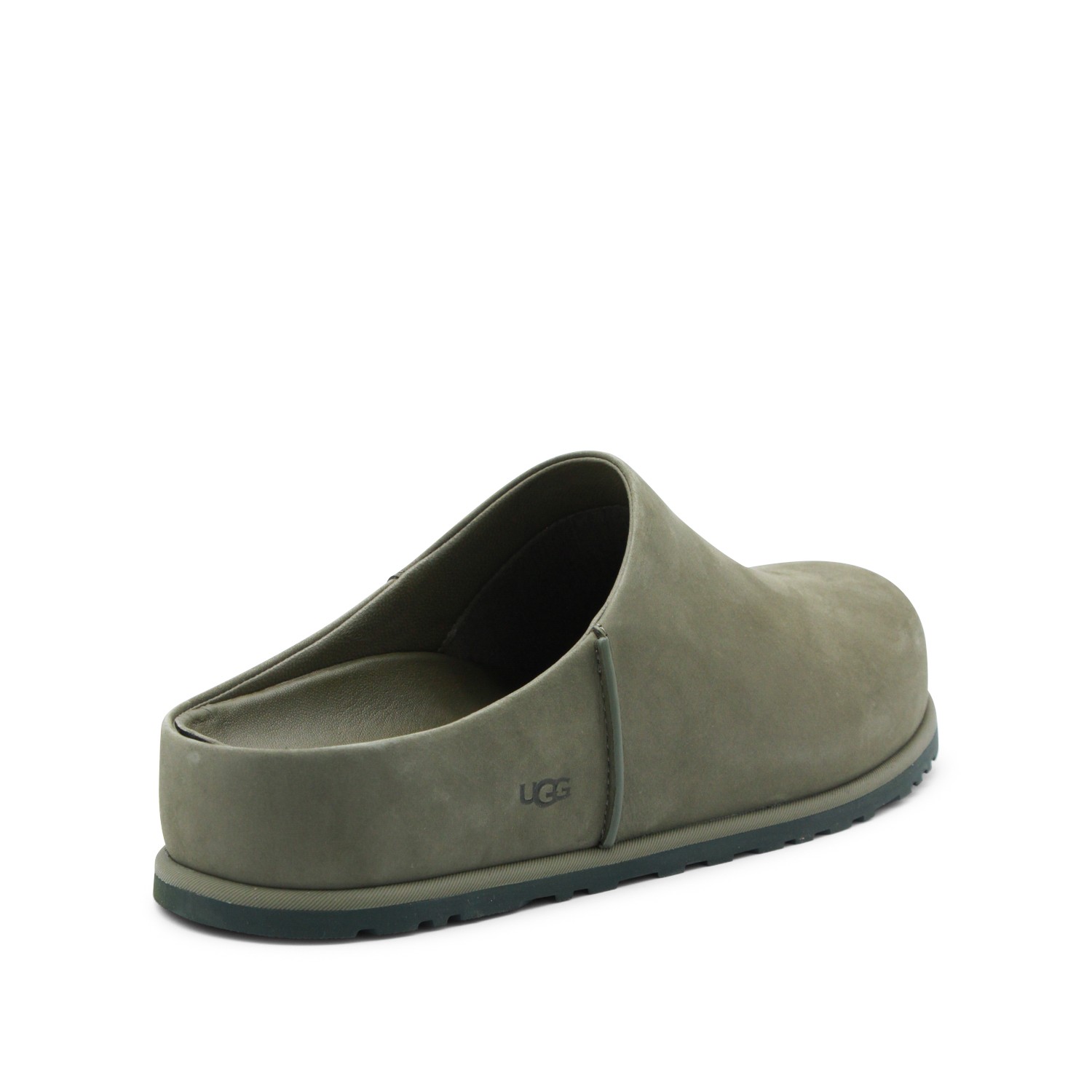 Burnt olive leather M OTZO CLOG flat from Ugg featuring round toe, high rubber sole, open back and lateral logo.