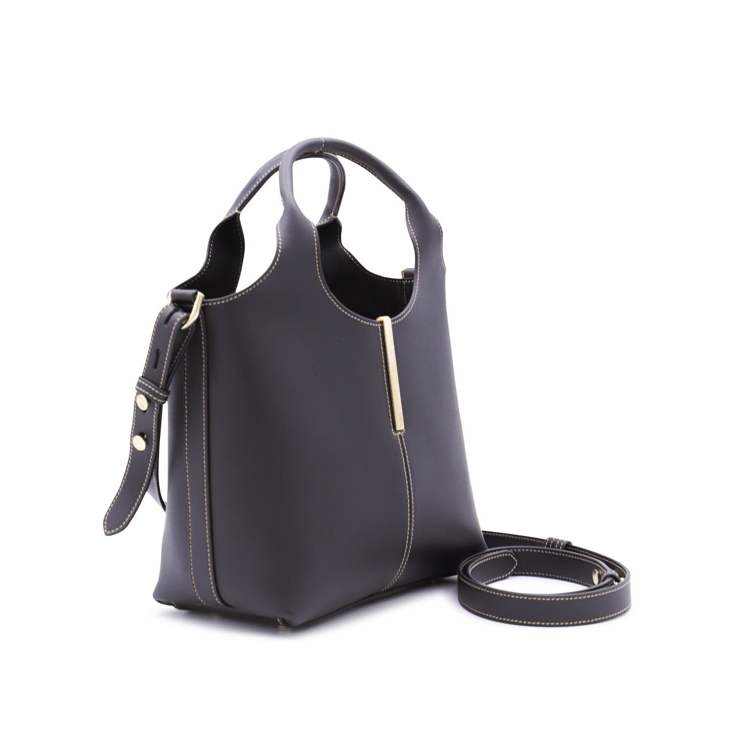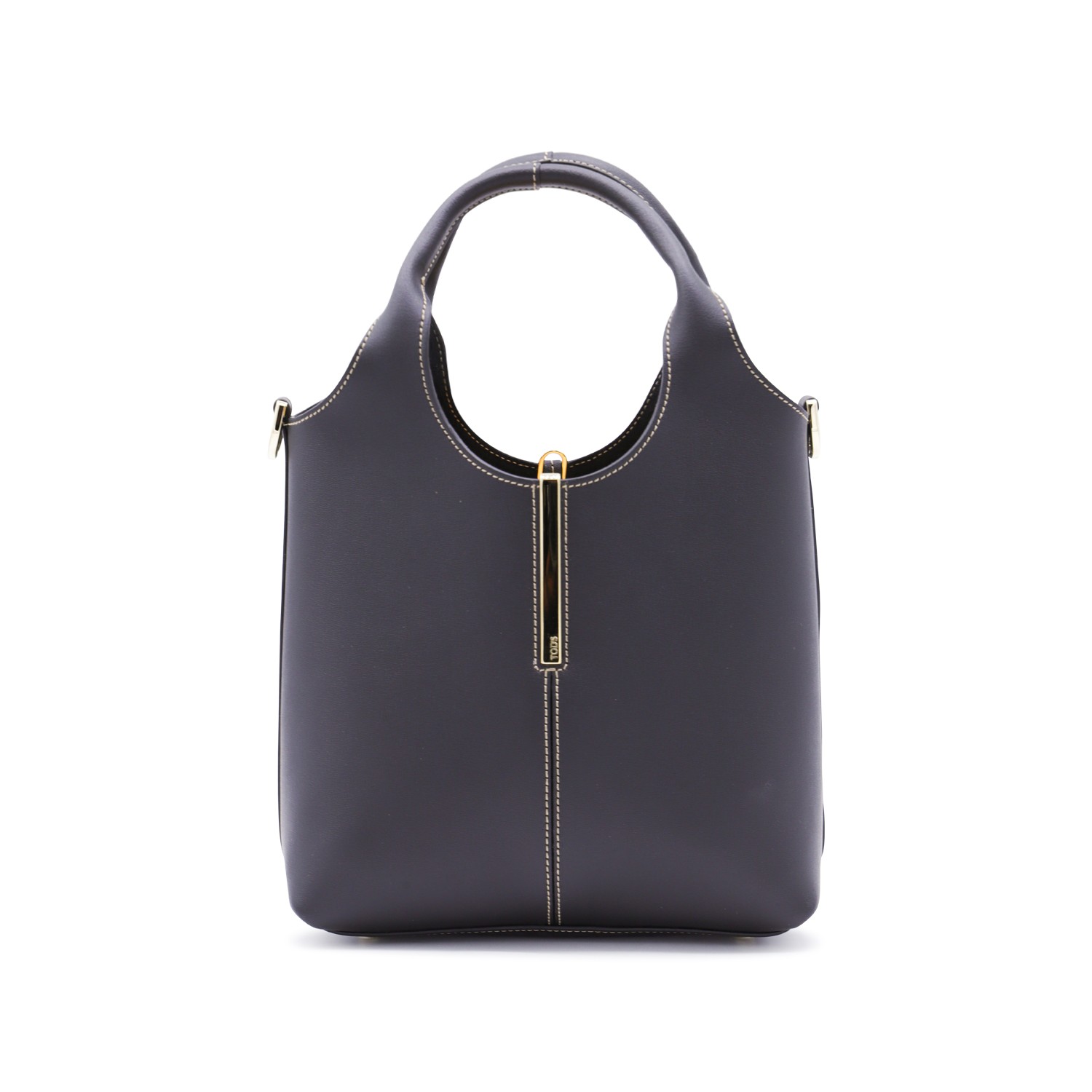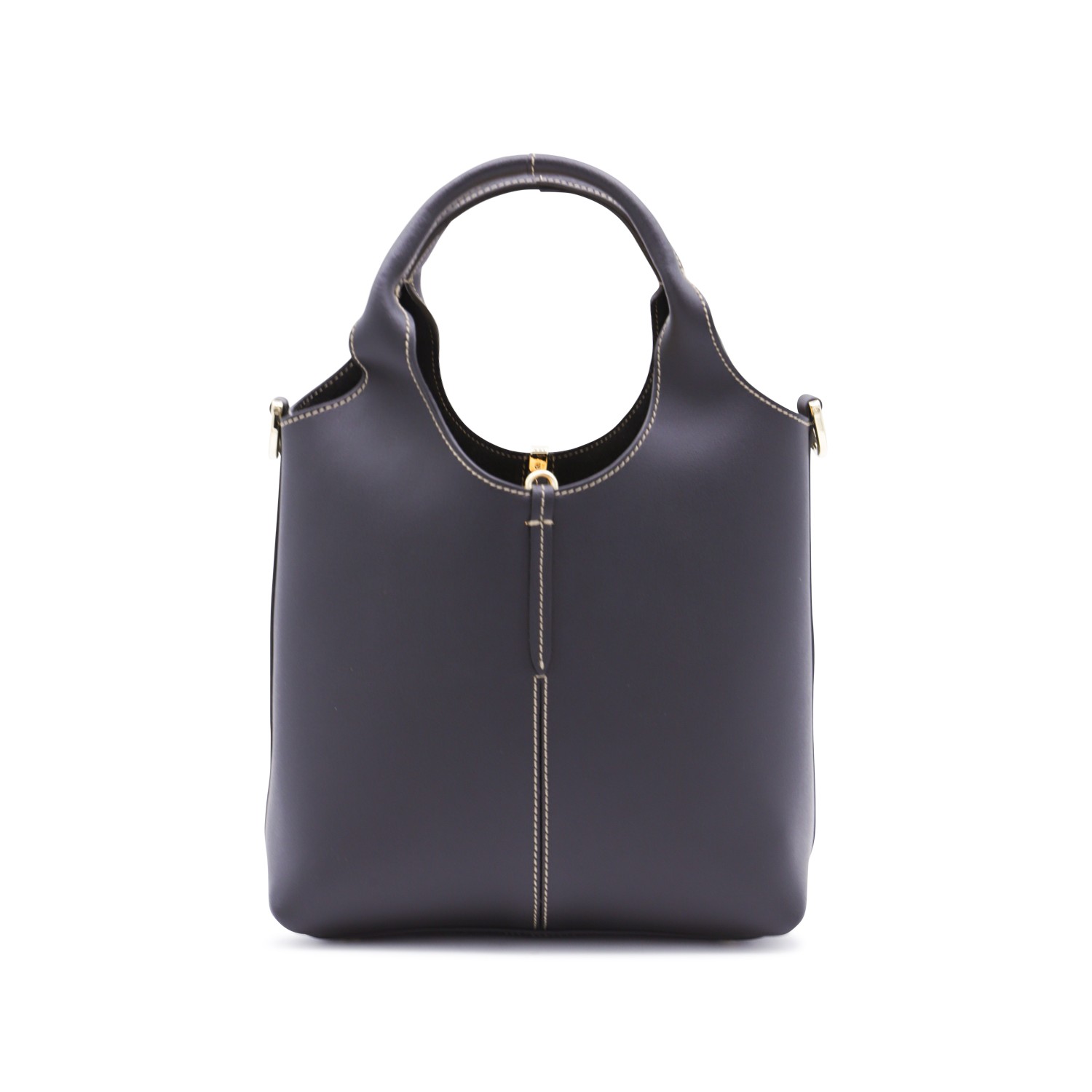 Black leather top handle bag from Tod's featuring top handles, gold tone hardware, upper fastening, zip details, main compartment and internal pocket.