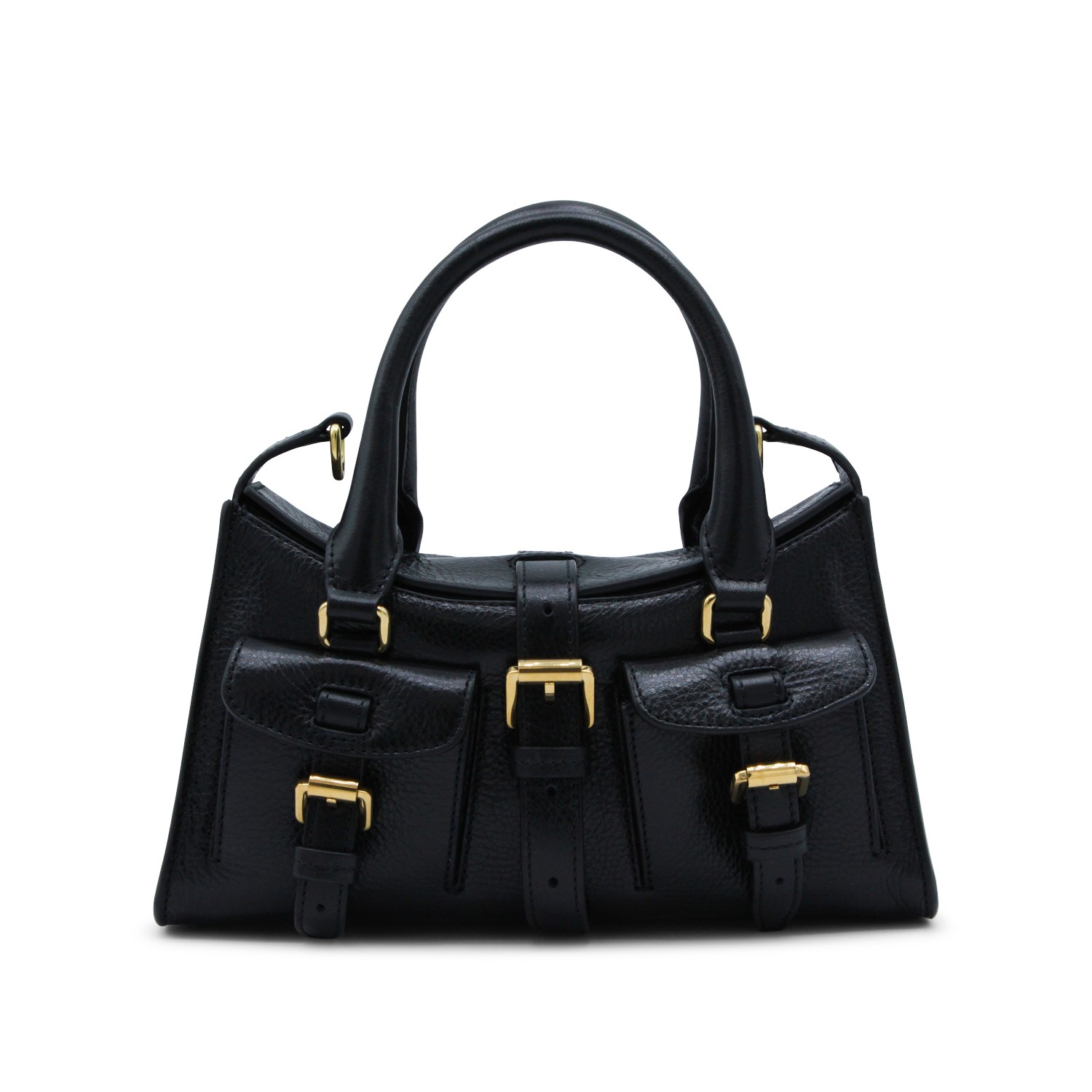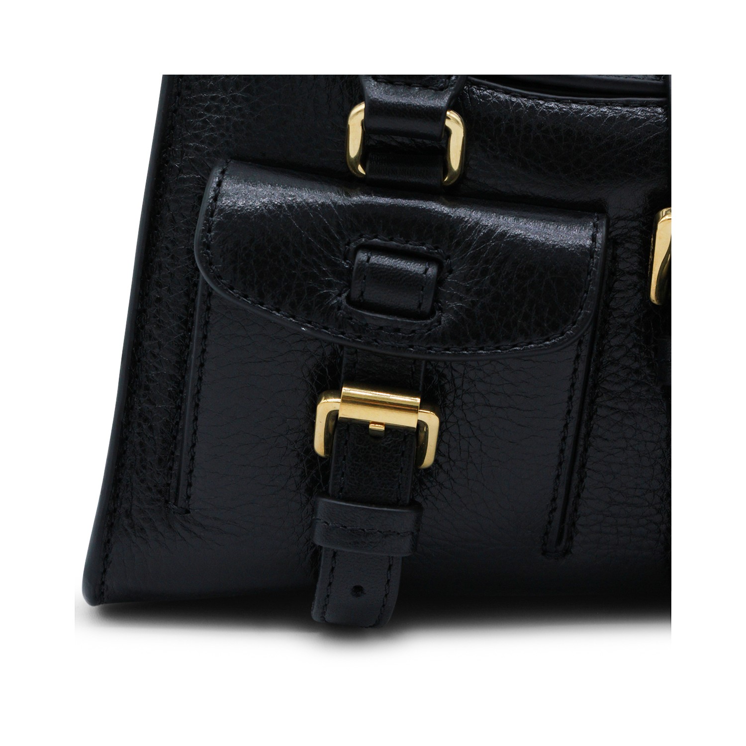 BLACK LEATHER MINI ROXANNE HIGH SHINE TOP HANDLE BAG