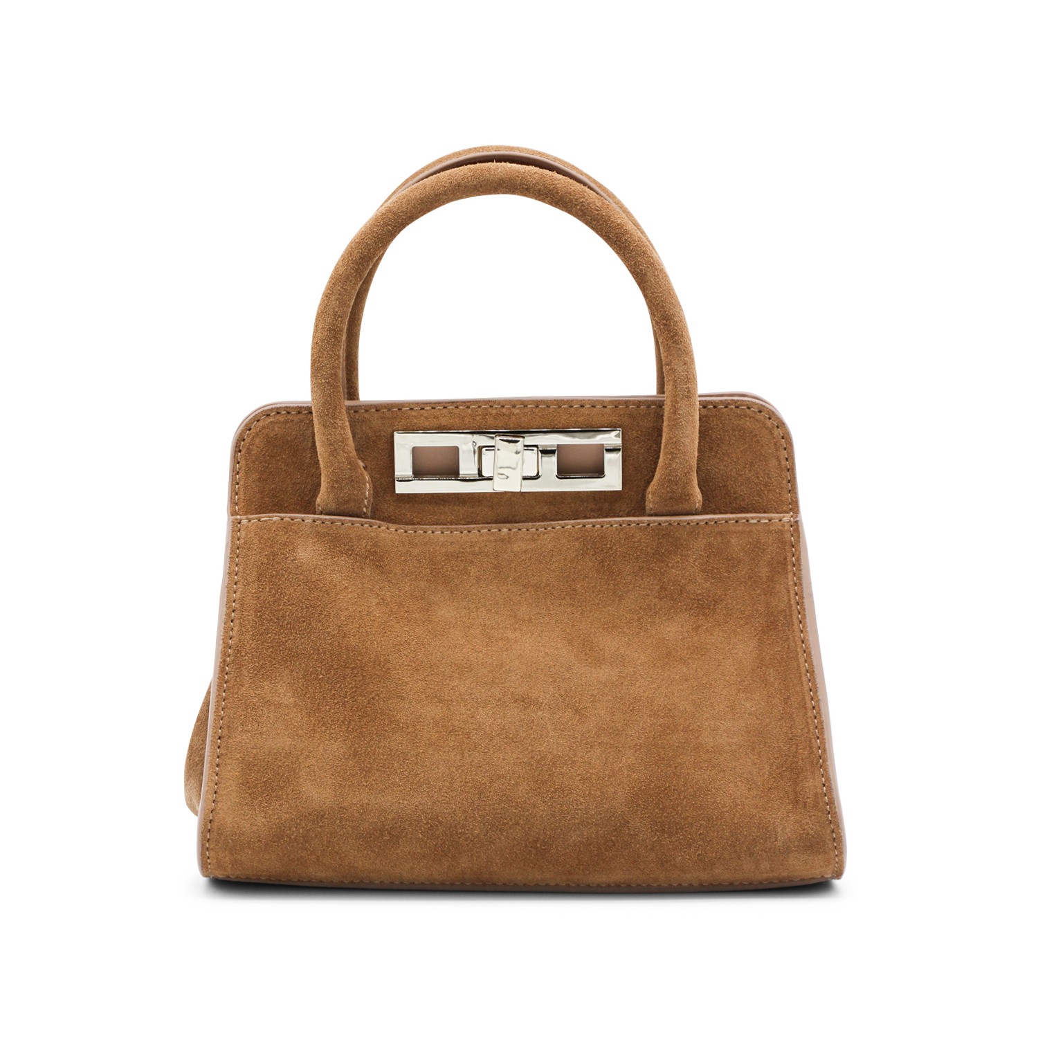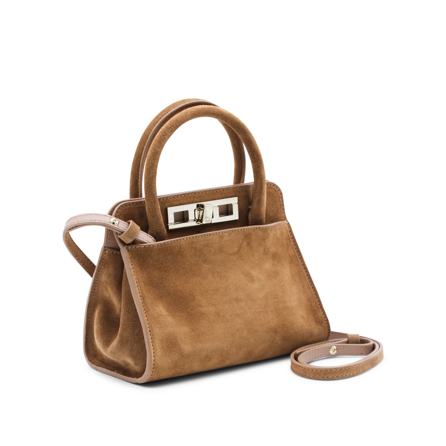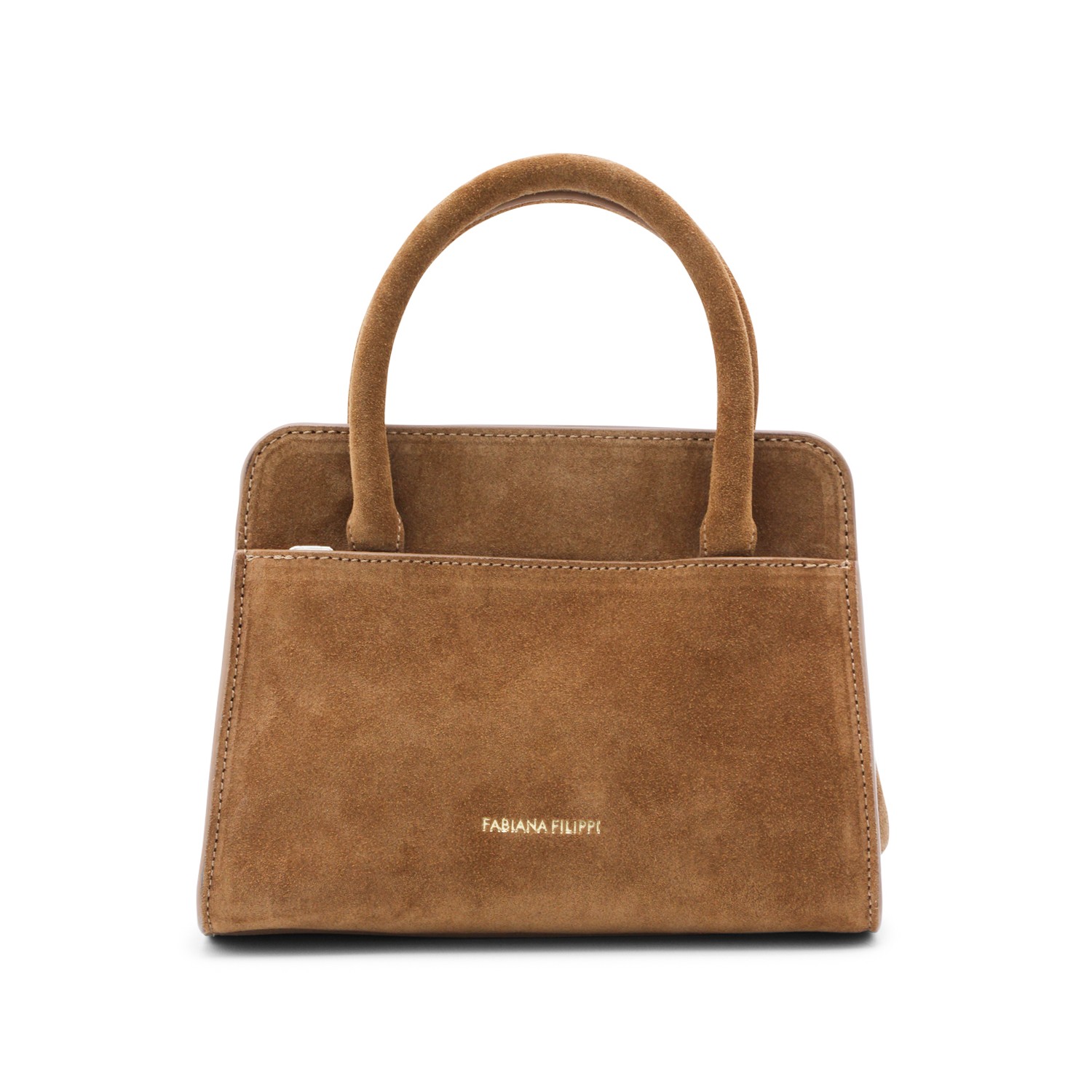 Brown leather top handle bag from Fabiana Filippi featuring top handles, upper fastening, silver tone hardware, inside pocket and suede.
