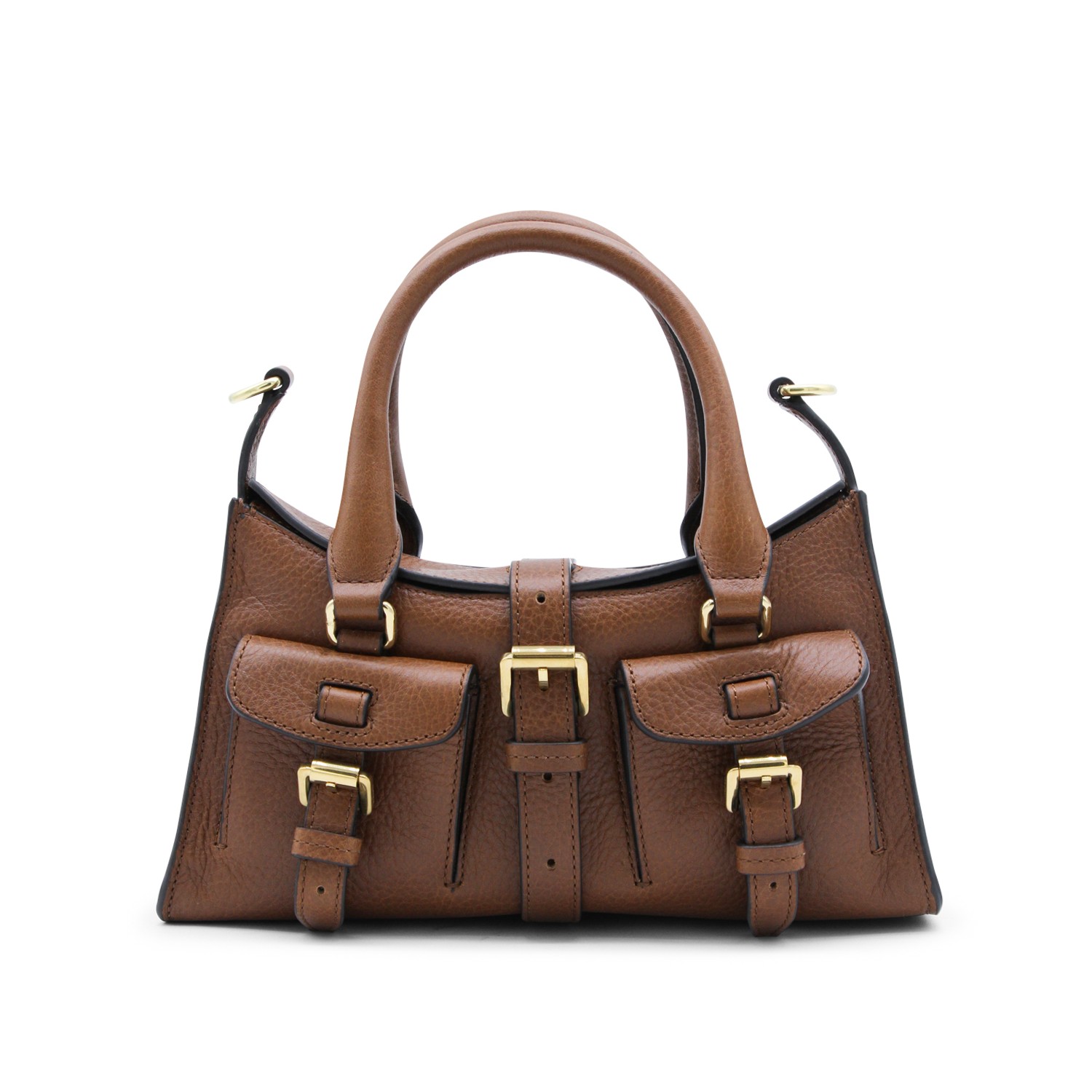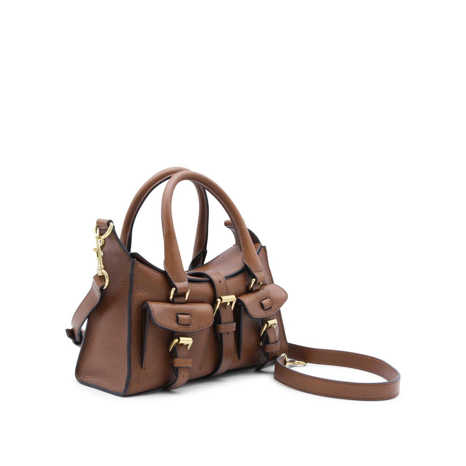 BROWN LEATHER MINI ROXANNE HERITAGE TOP HANDLE BAG