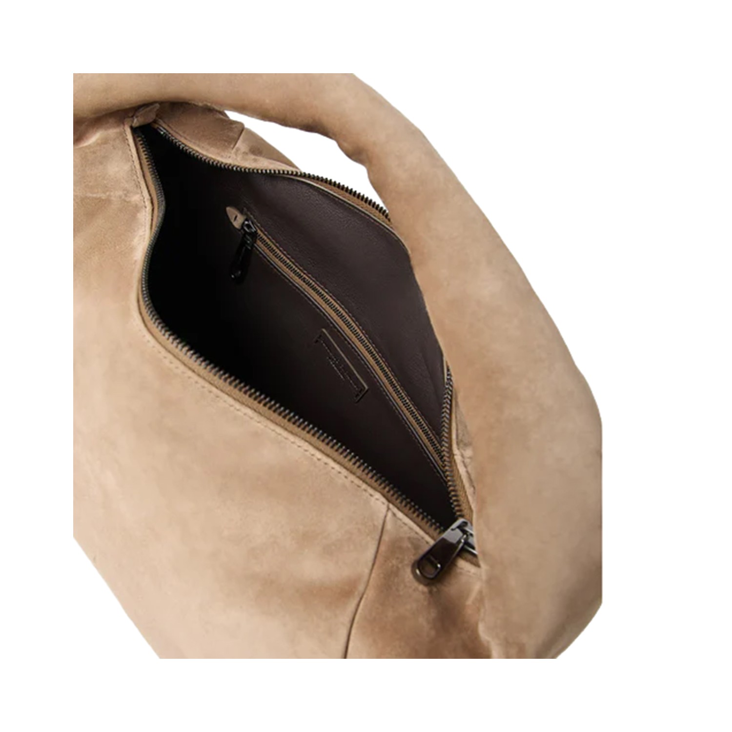 BEIGE LEATHER TOP HANDLE BAG