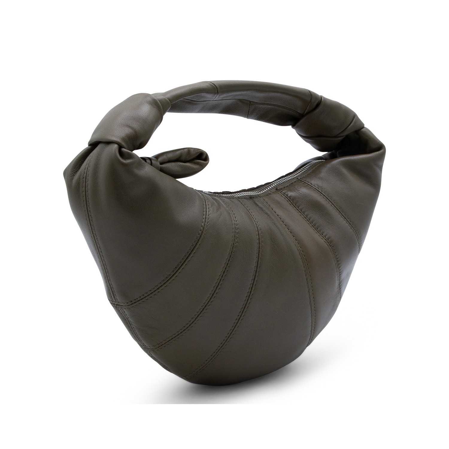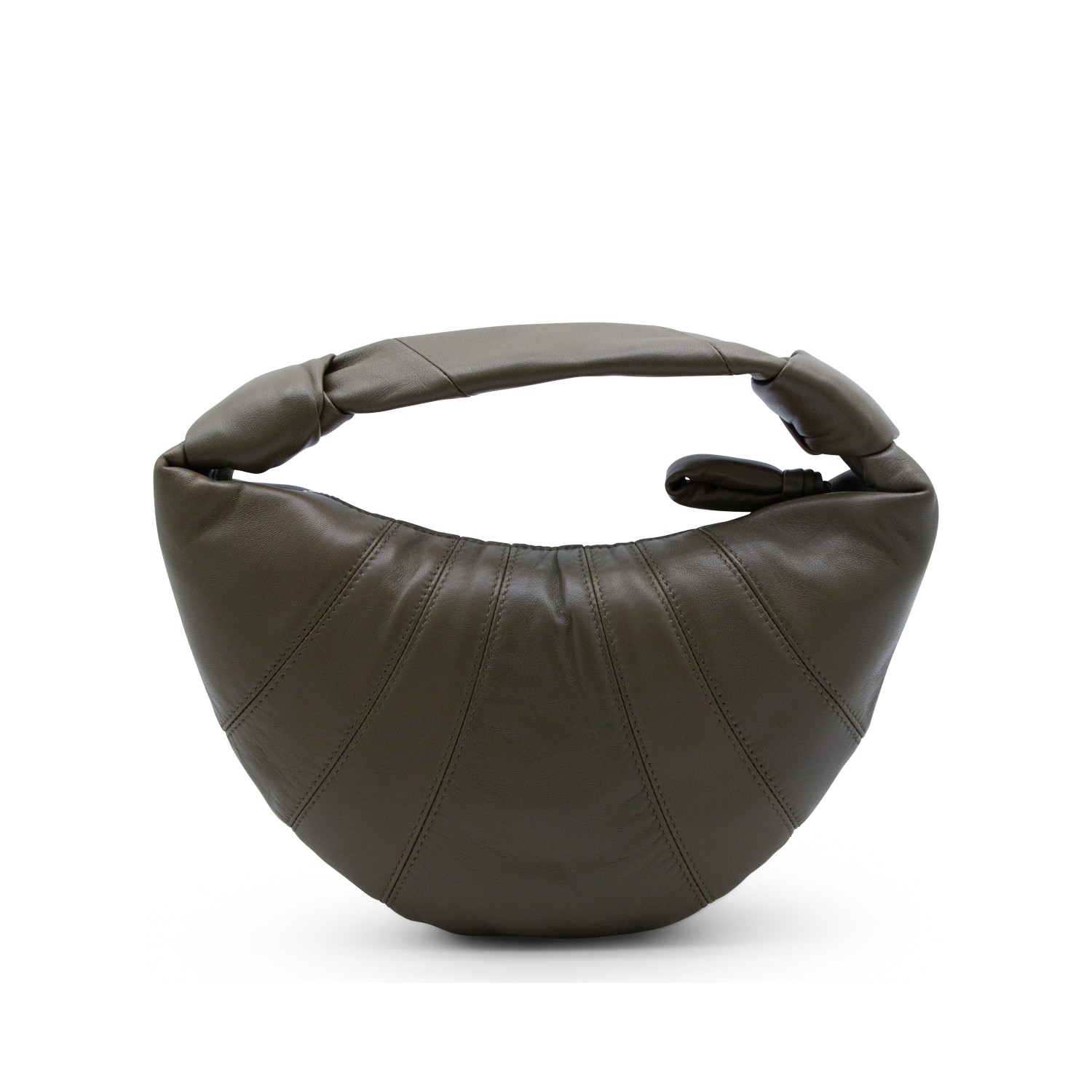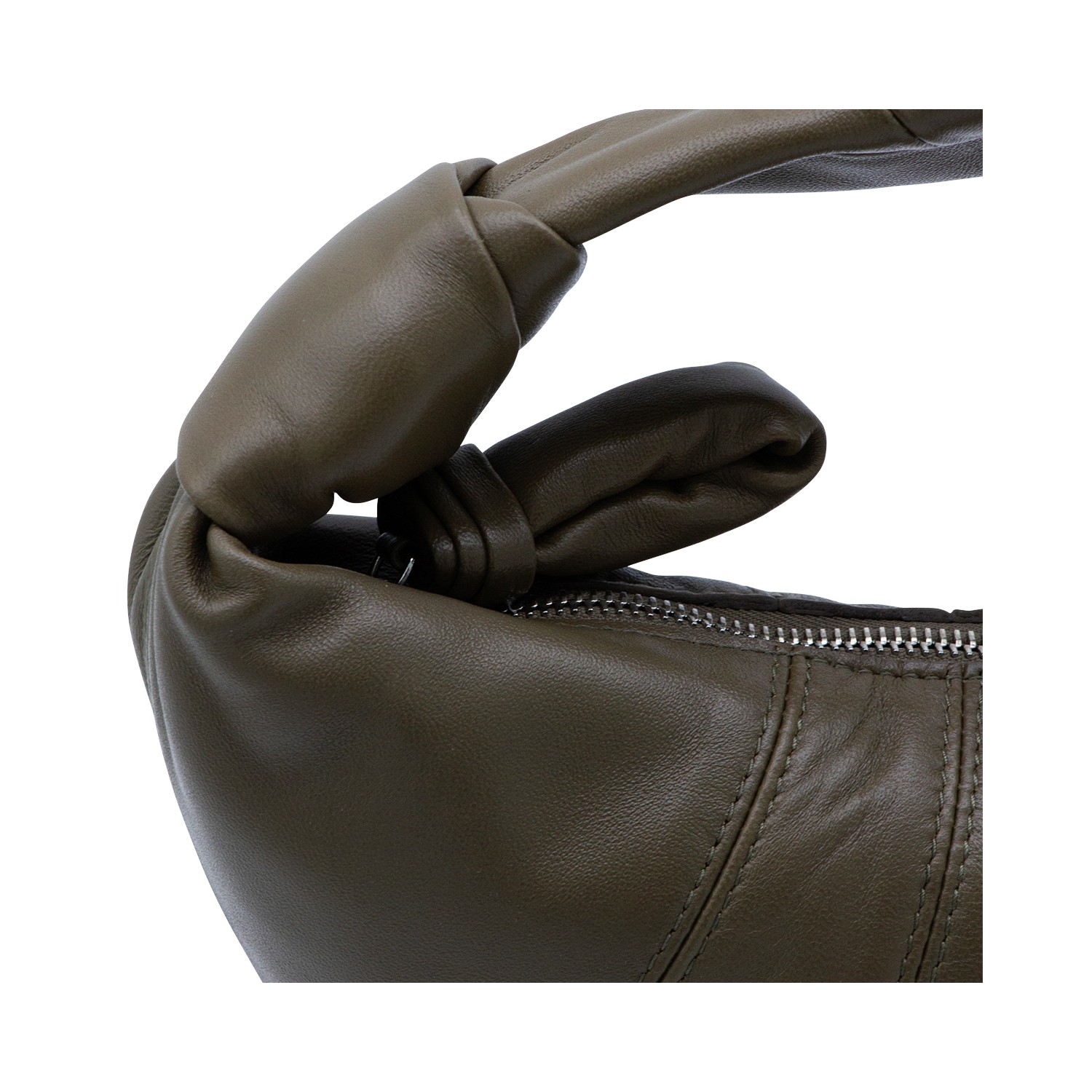 DARK KHAKI LEATHER MINI FORTUNE CROISSANT TOP HANDLE BAG