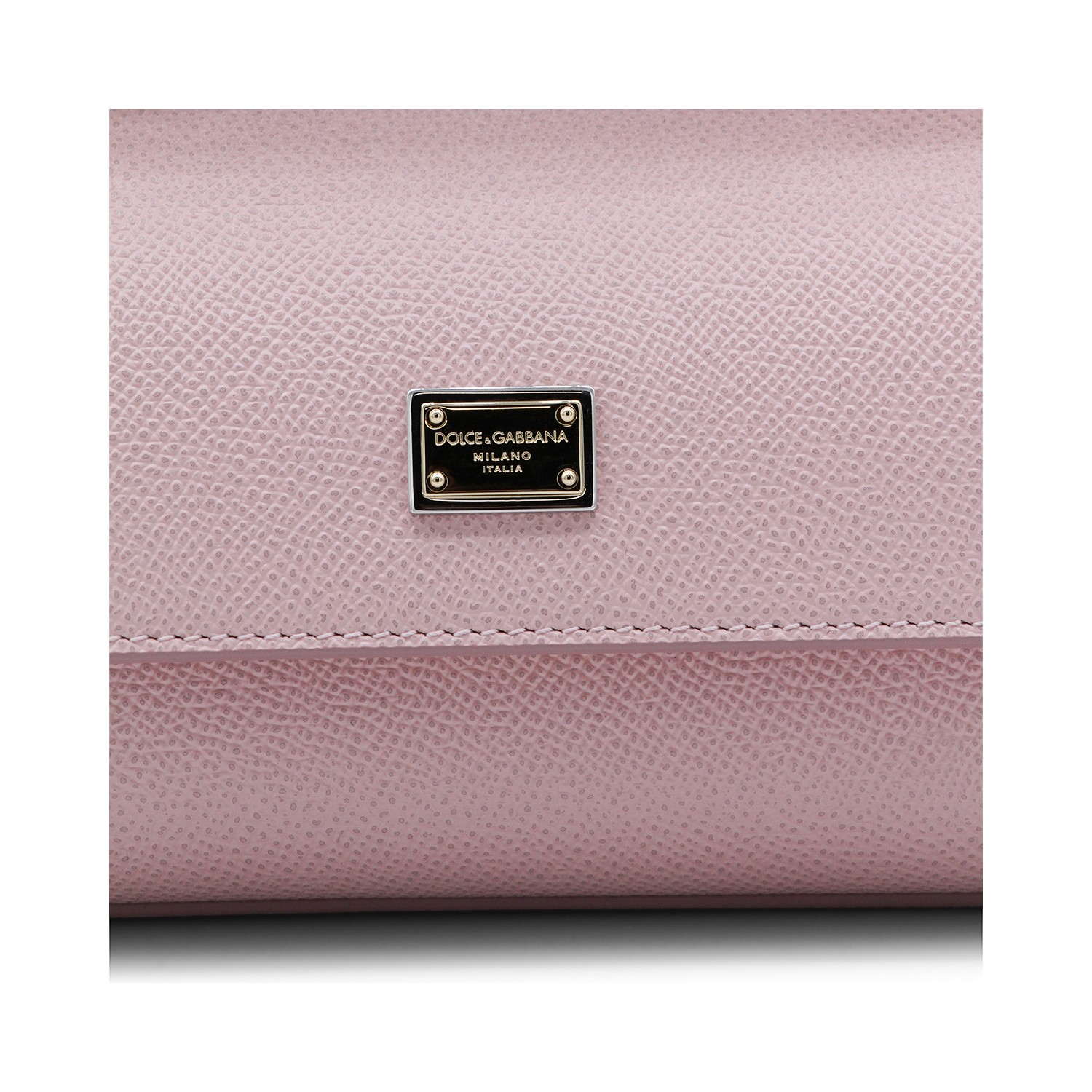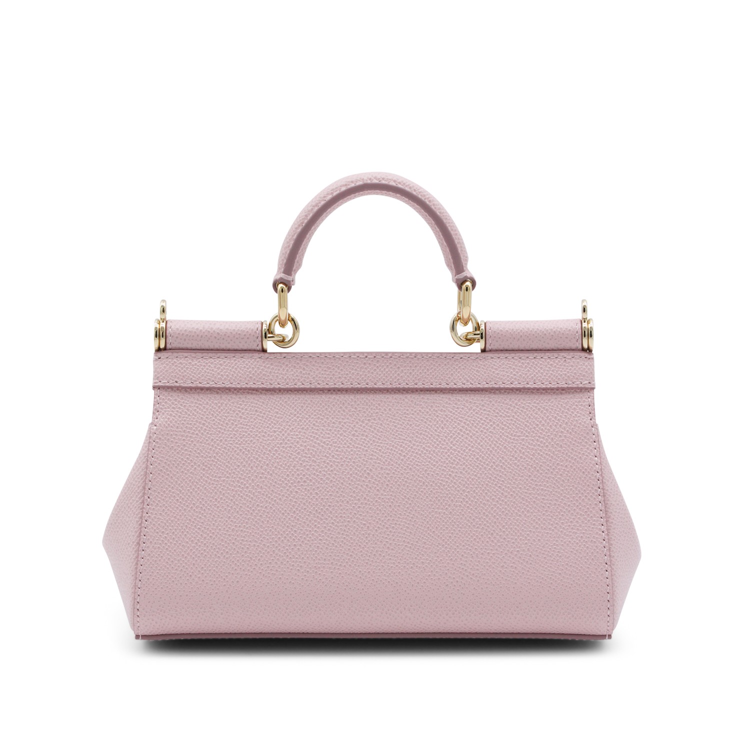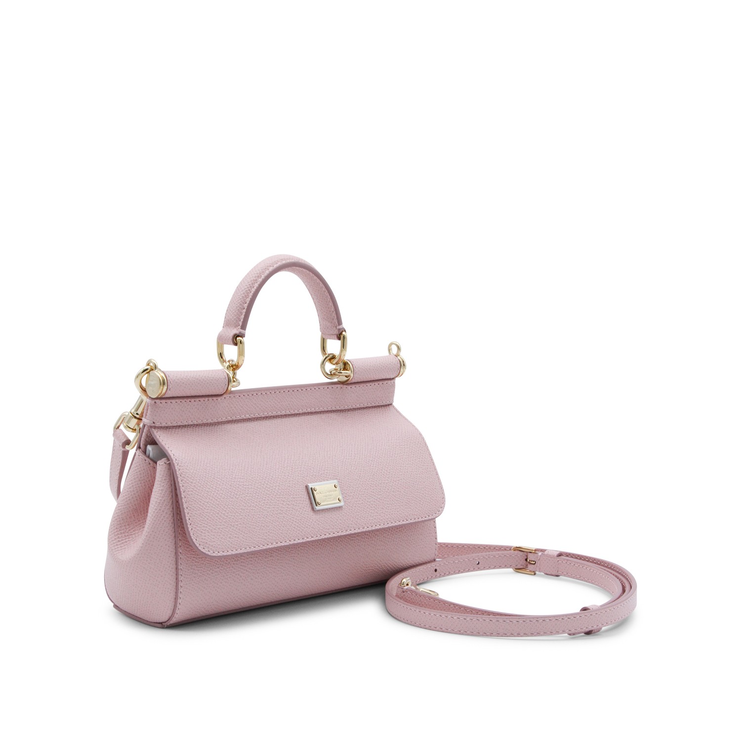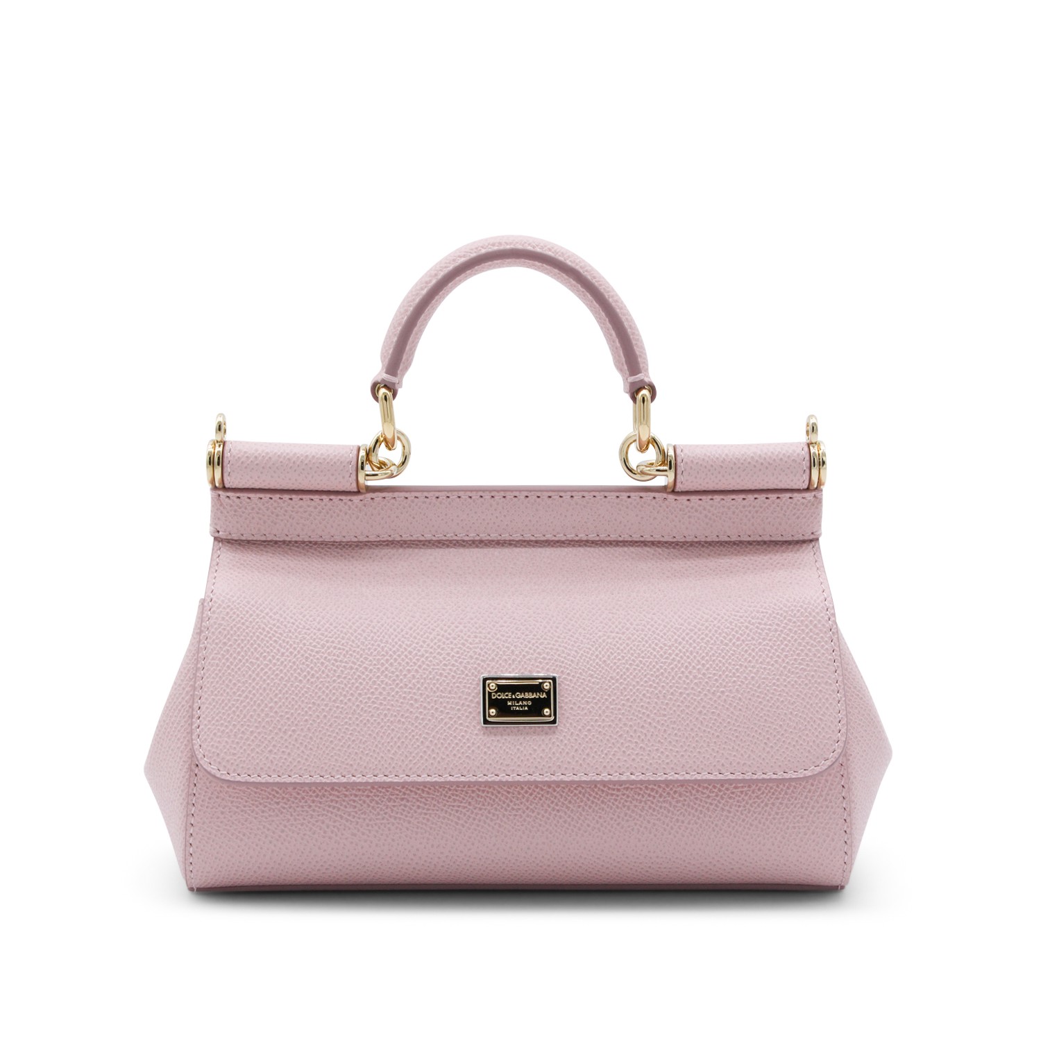 Pink leather Sicily long small top handle bag from Dolce & Gabbana featuring top handle, frontal fastening, adjustable and removable shoulder strap, main compartment and inside pocket.