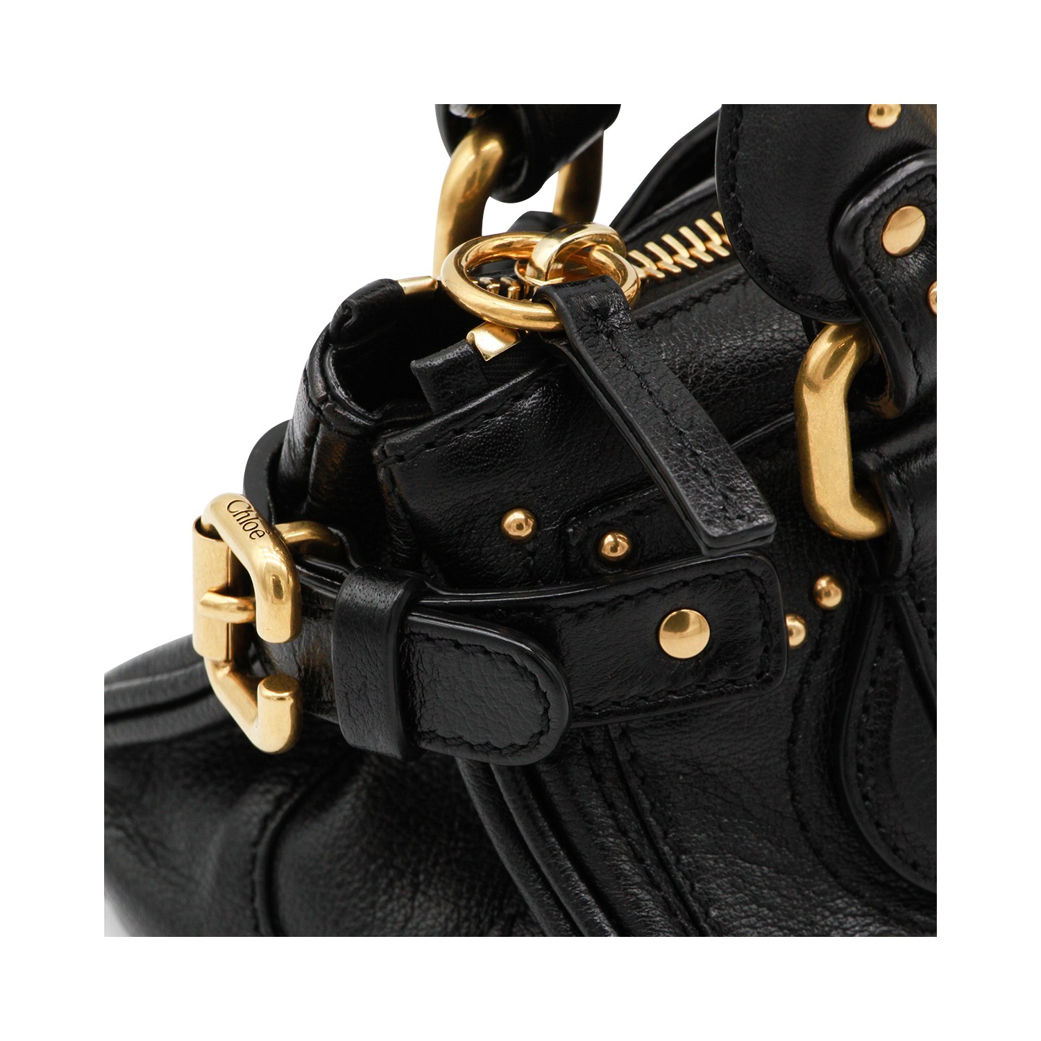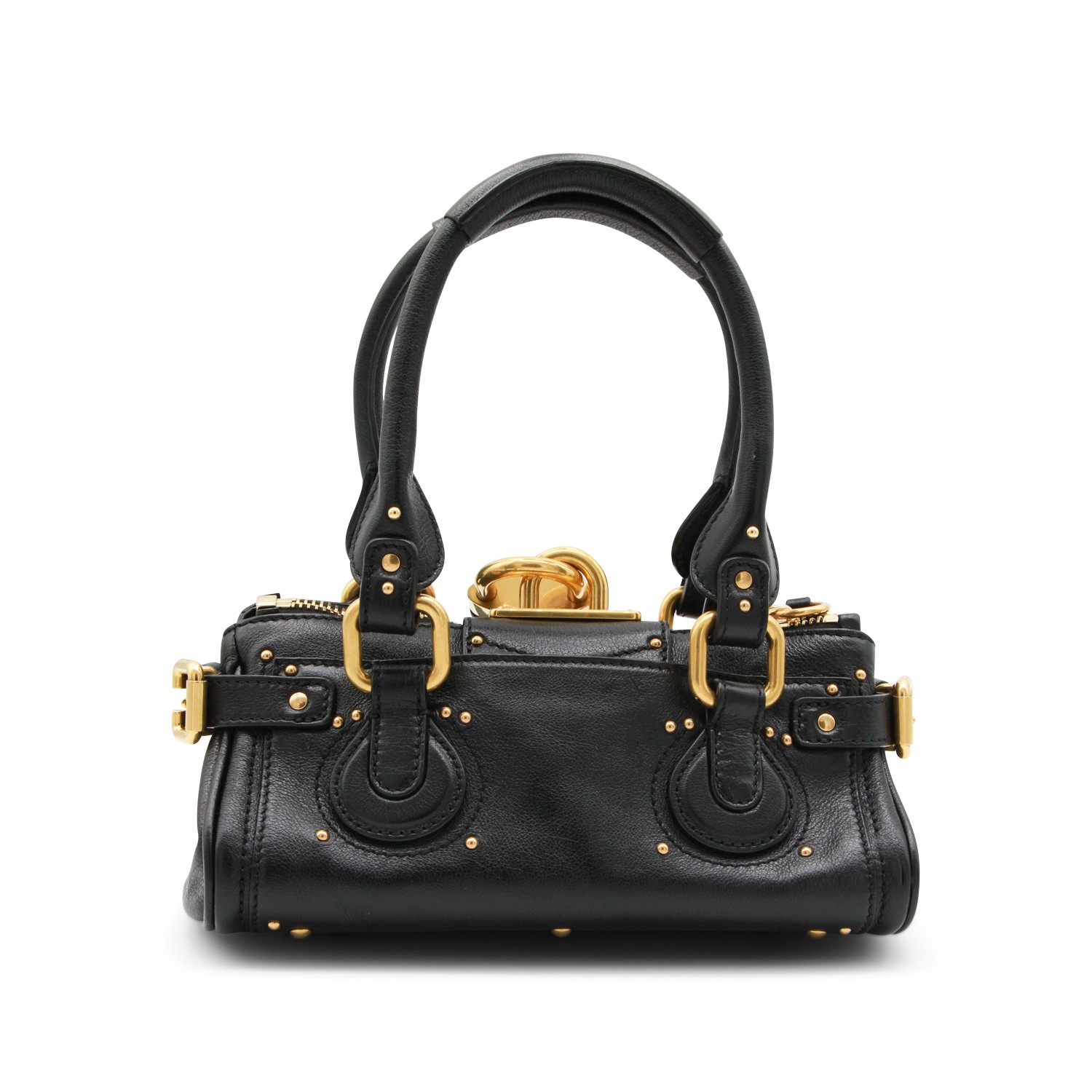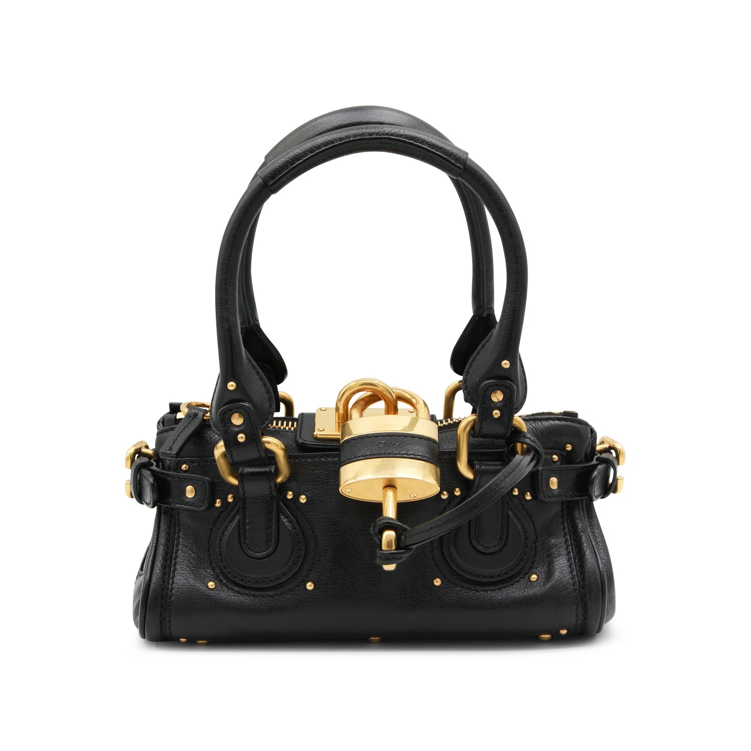 Black leather Paddington small top handle bag from Chlofeaturing handles, gold tone hardware, zip fastening and main compartment.