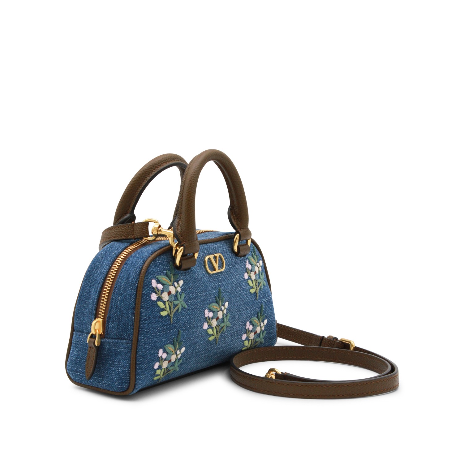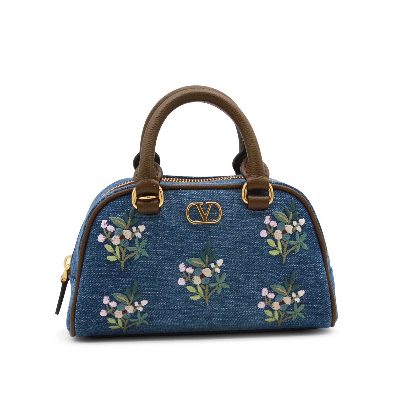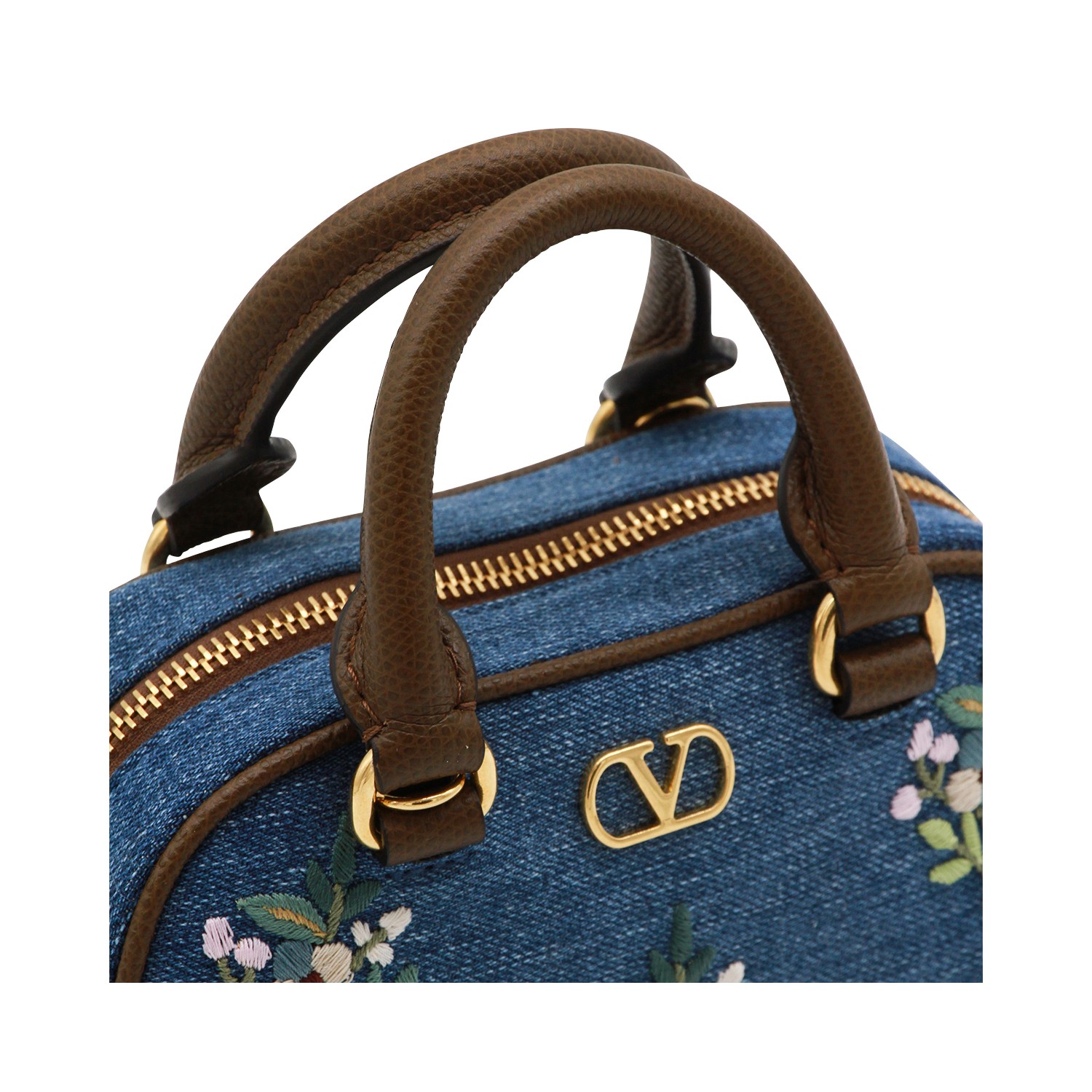 Multicolor leather top handle bag from Valentino Garavani featuring leather top handles, metal monogram logo to the front, embroidered flowers, zip fastening, gold tone metal hardware, adjustable and removale shoulder strap and main compartment.