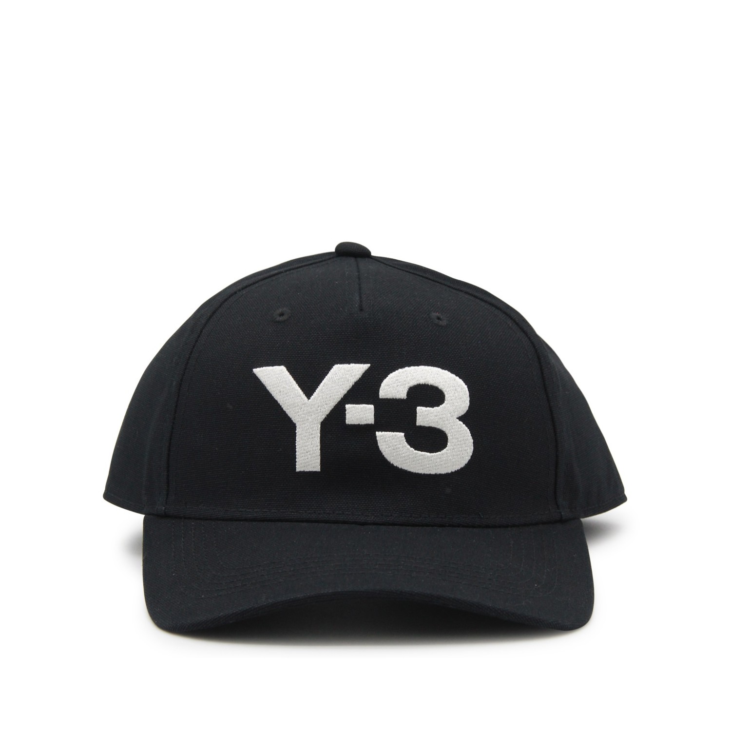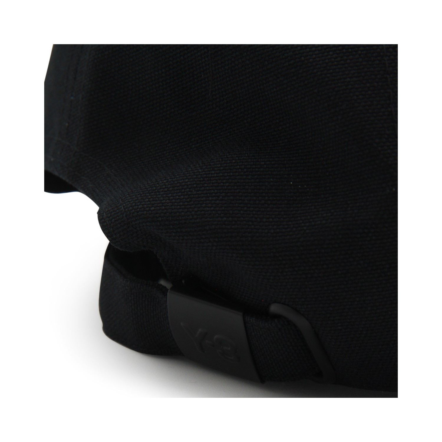 Black cotton hat from Adidas Y-3 featuring round trim, frontal logo detail and adjutable size.