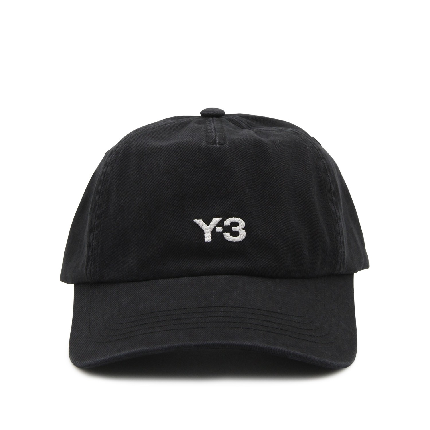 Black cotton hat from Adidas Y-3 featuring round trim, frontal logo detail and adjutable size.