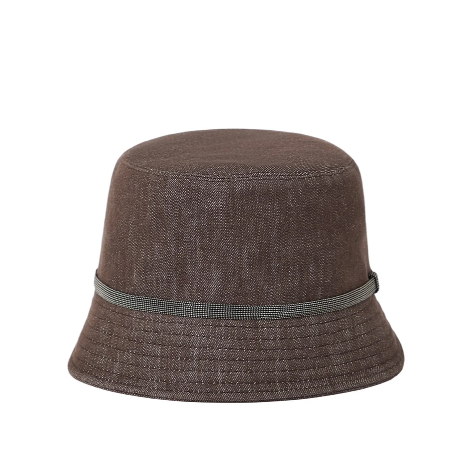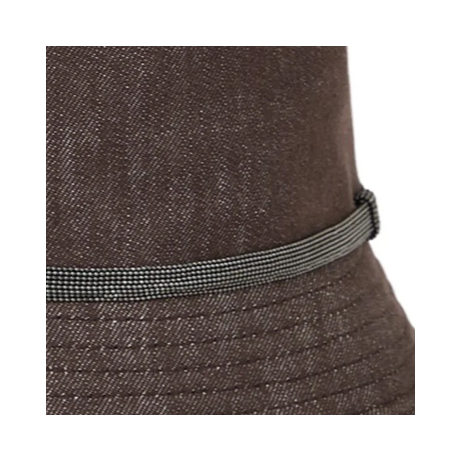 Brown cotton hat from Brunello Cucinelli featuring flat crown, dropped narrow and tone-on-tone stitching.