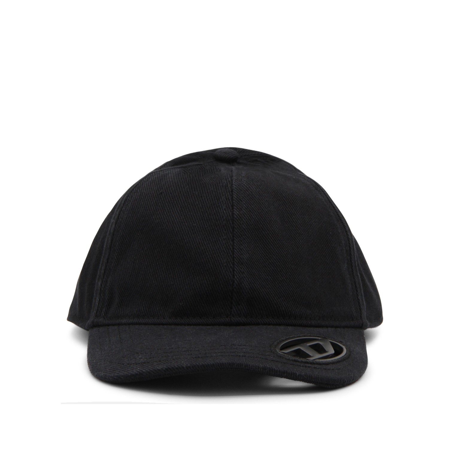 Black cotton hat from Diesel featuring round trim, logo and adjustable size.