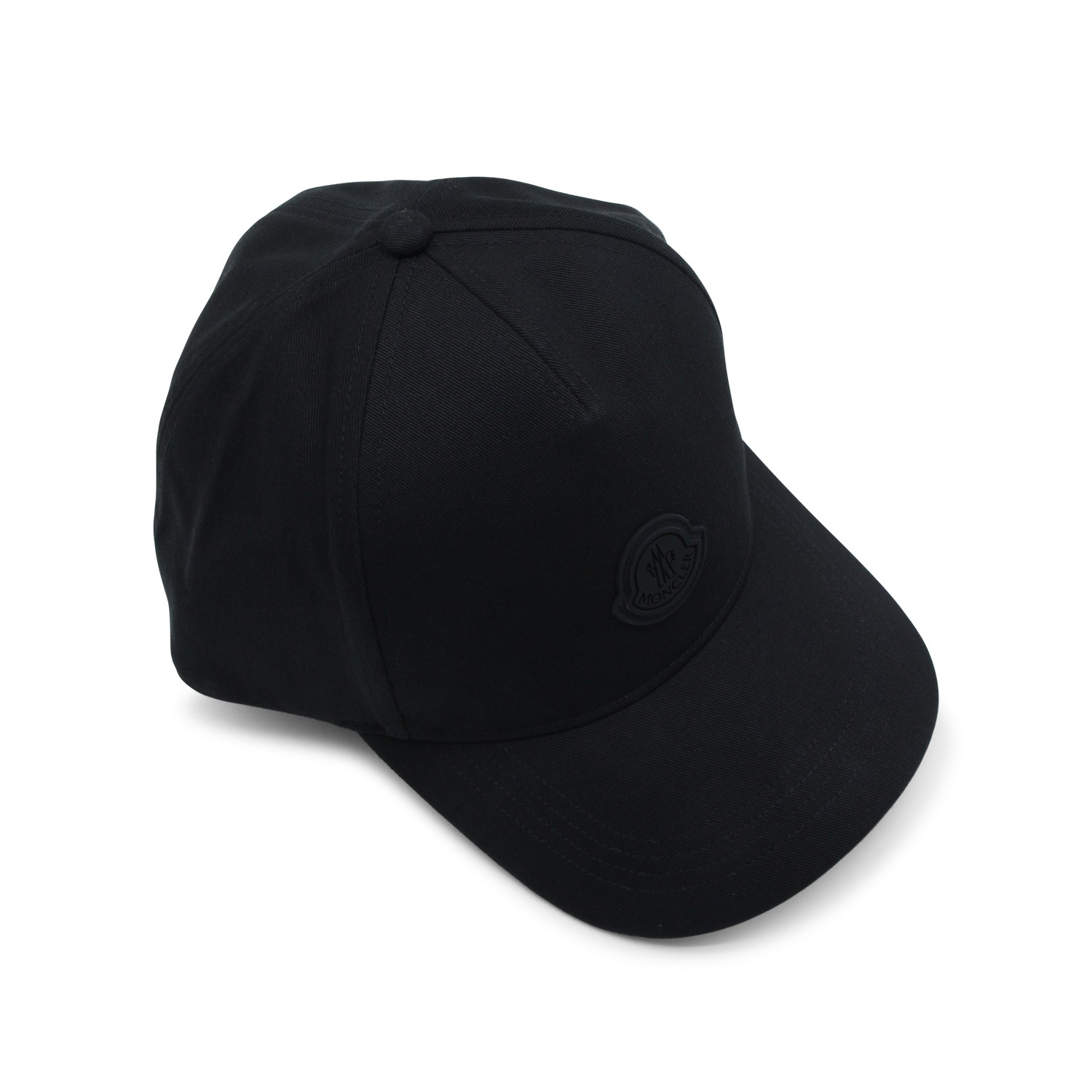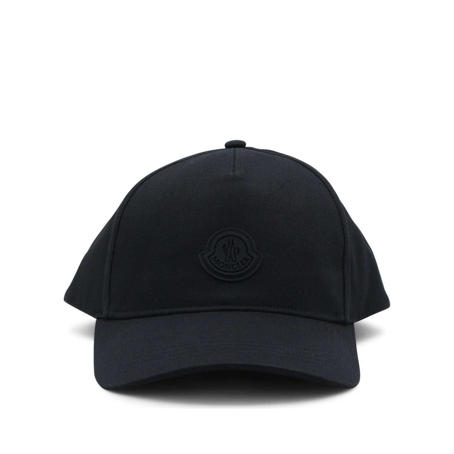 Black cotton baseball cap from Moncler featuring curved peak, tone on tone embroidered logo and adjustable size.