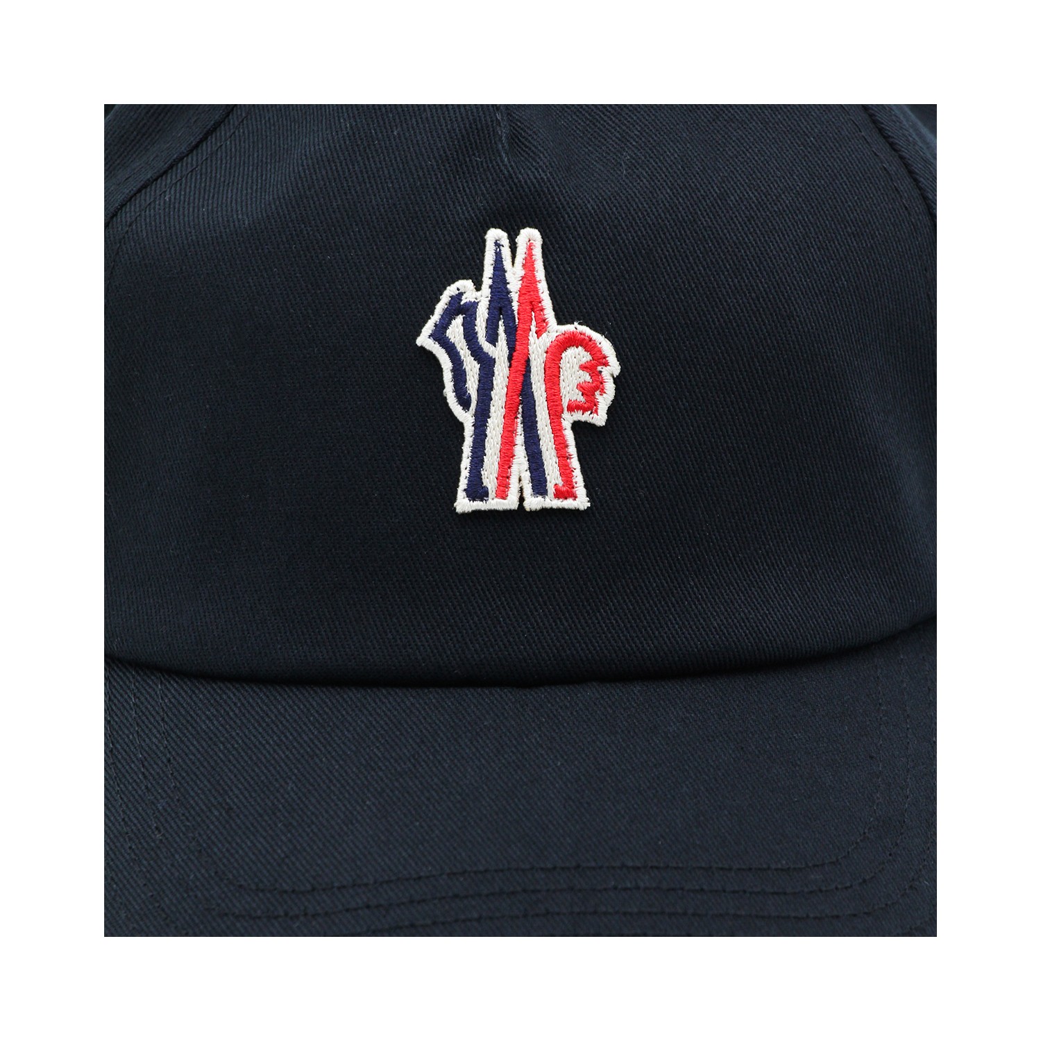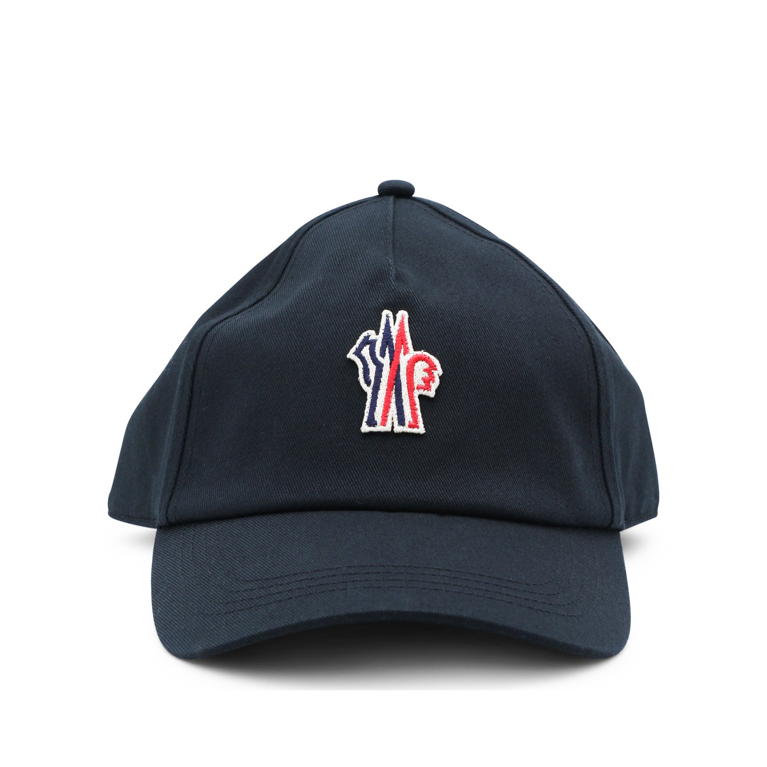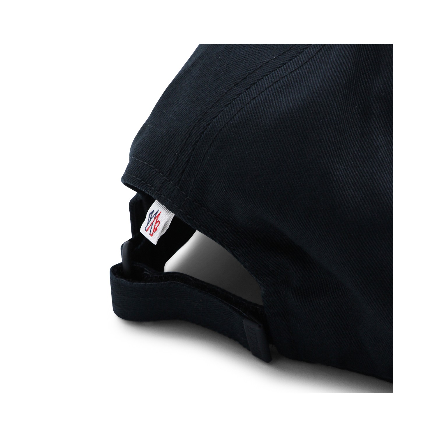 Black cotton hat from Moncler Grenoble featuring round trim, logo patch and adjustable size.