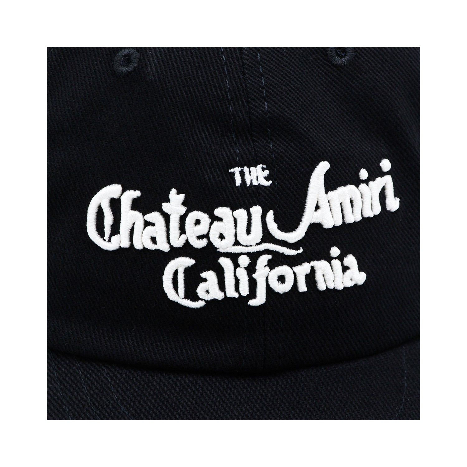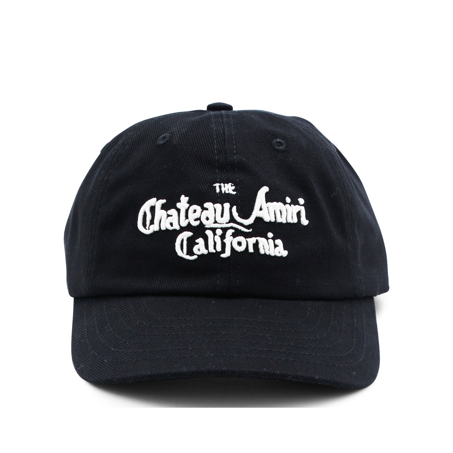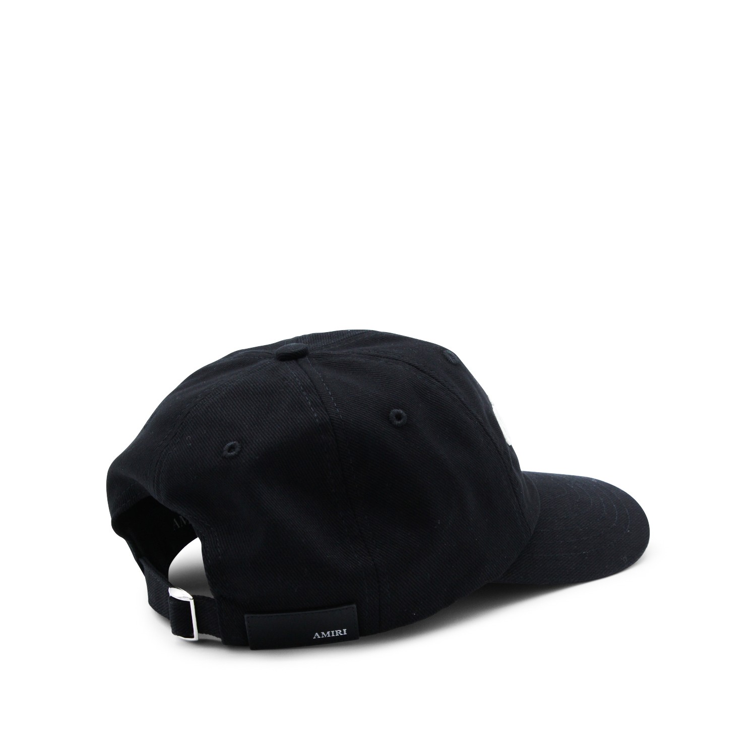 Black cotton hat from Amiri featuring round trim, frontal logo, back fastening and adjustable size.