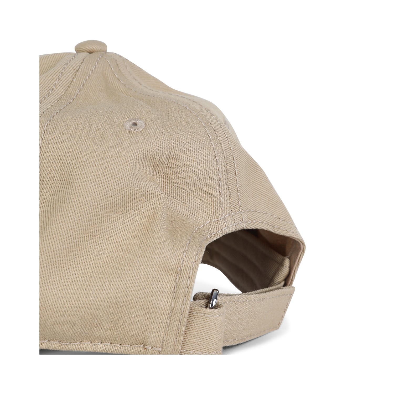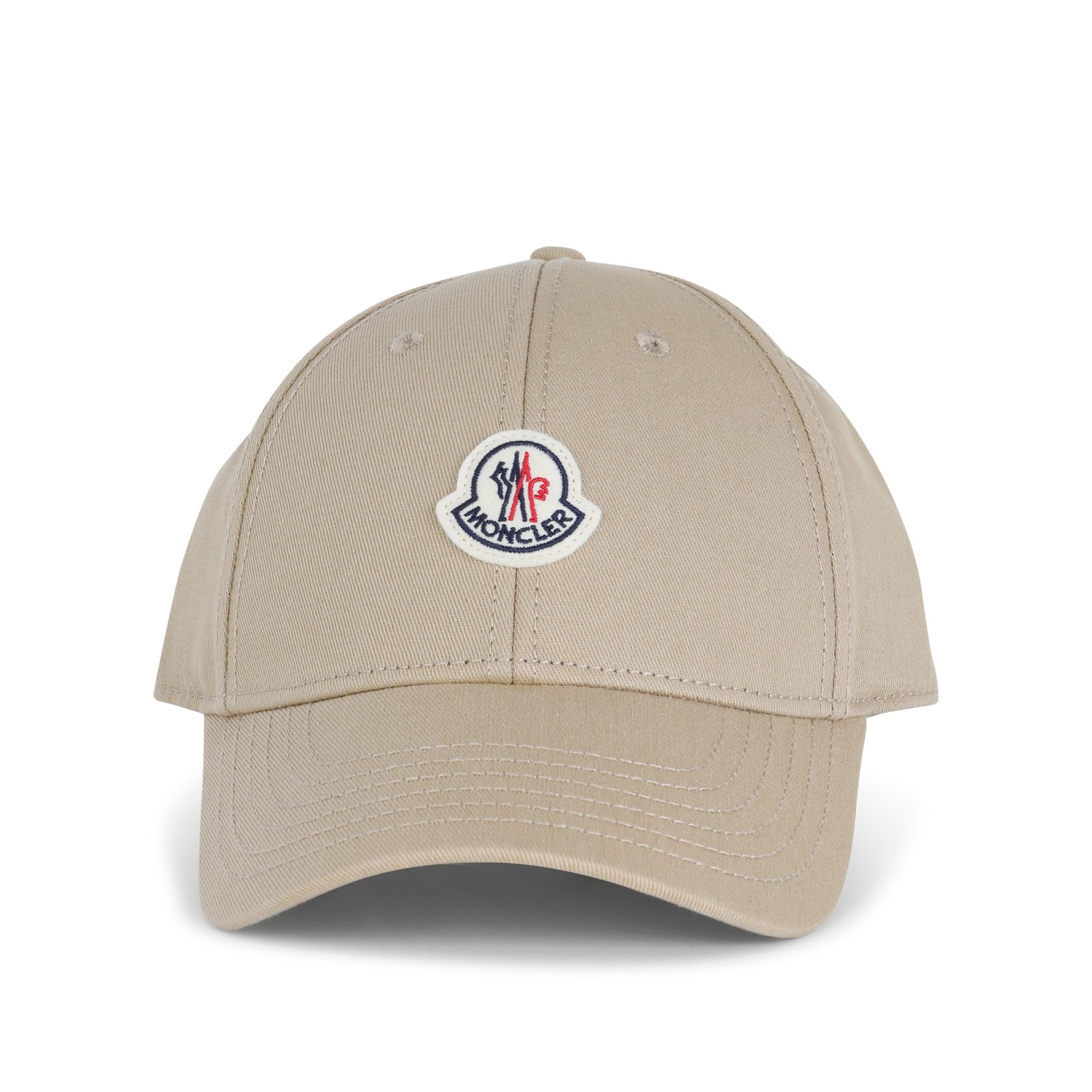 Beige cotton hat from Moncler featuring round trim, adjustable size and logo.