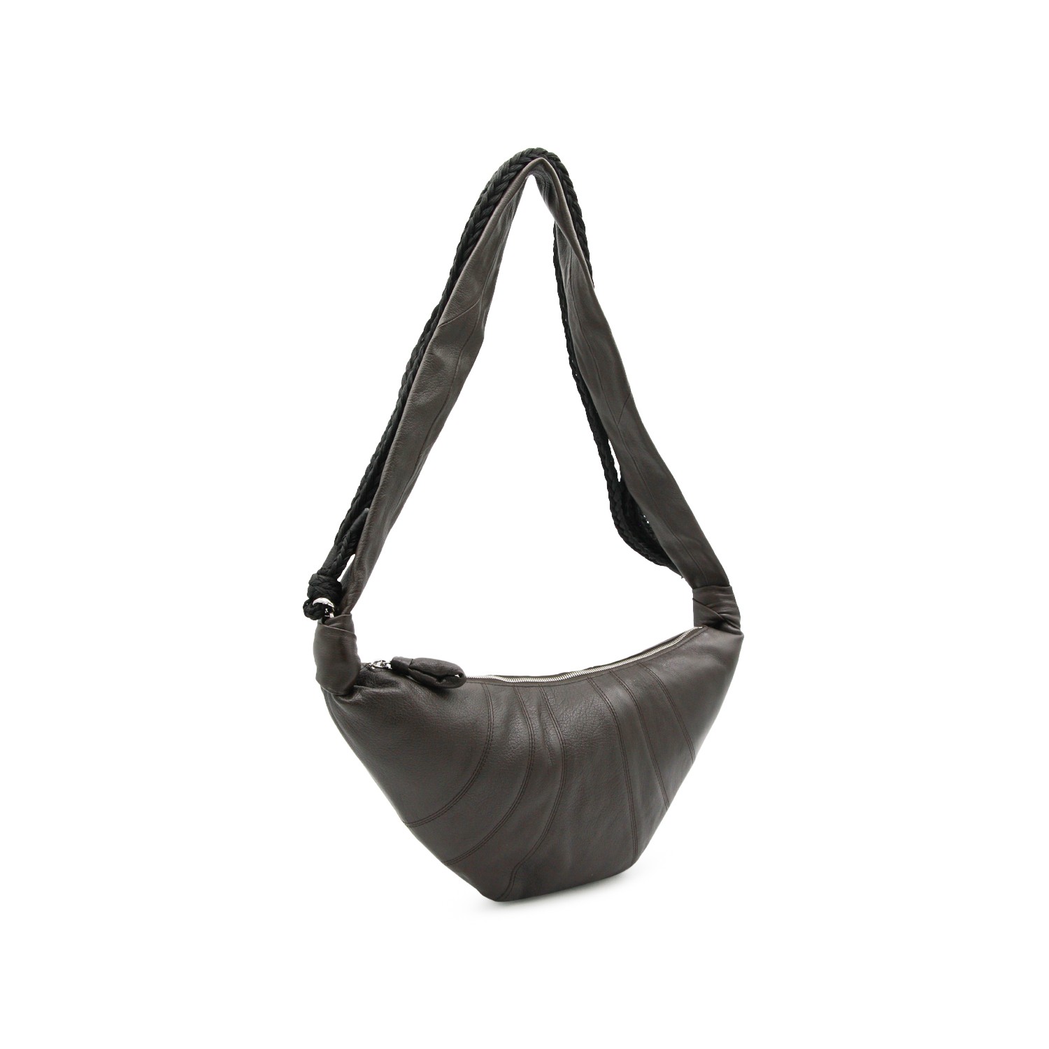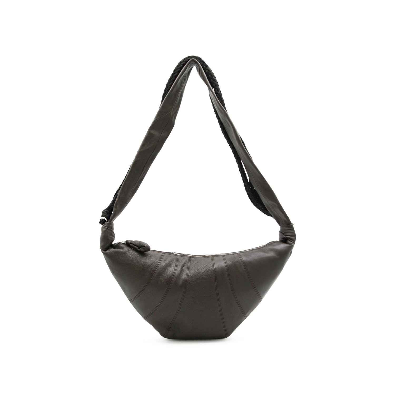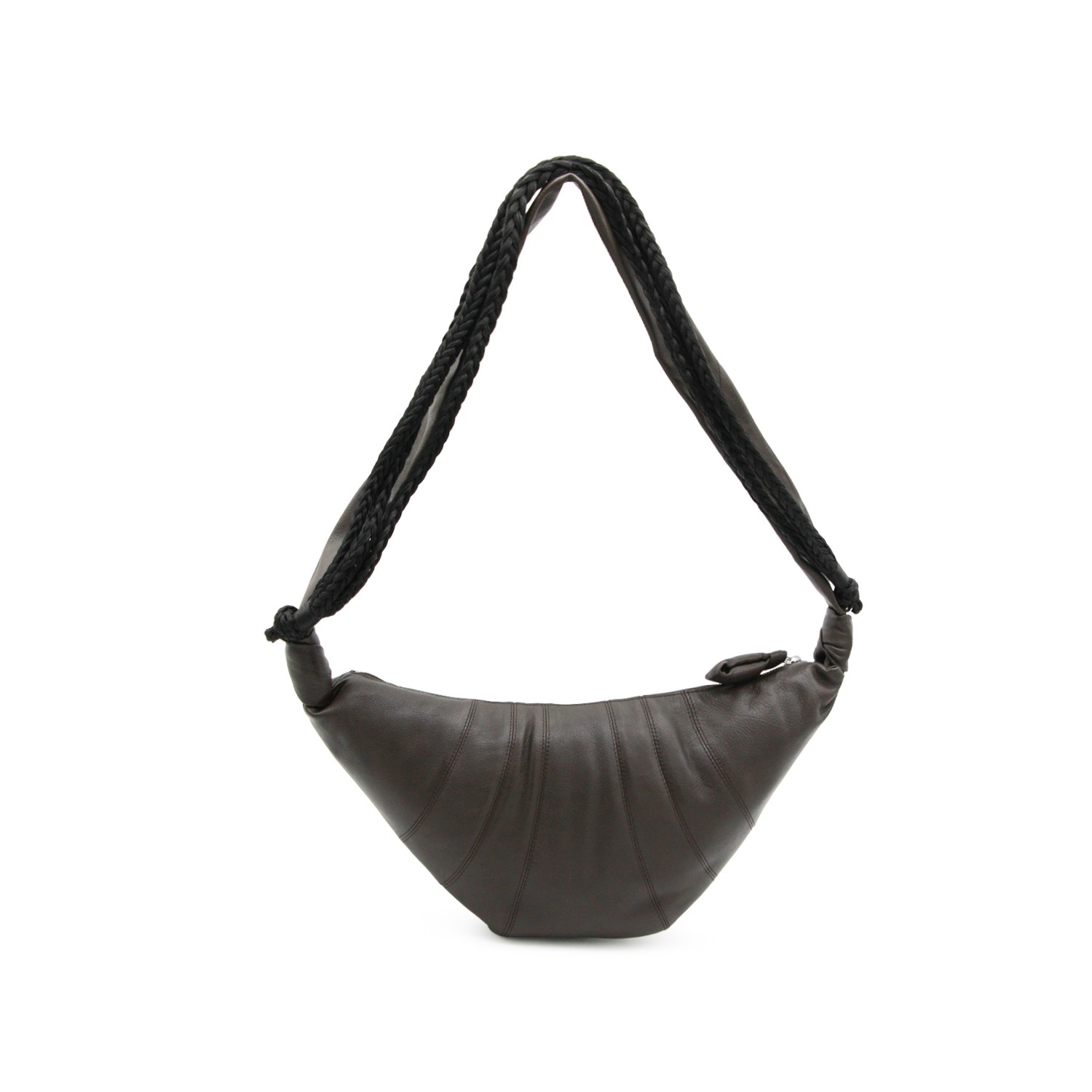 Black leather Braid Medium Croissant shoulder bag from Lemaire featuring handles, croissant shape, zip fastening and main compartment.