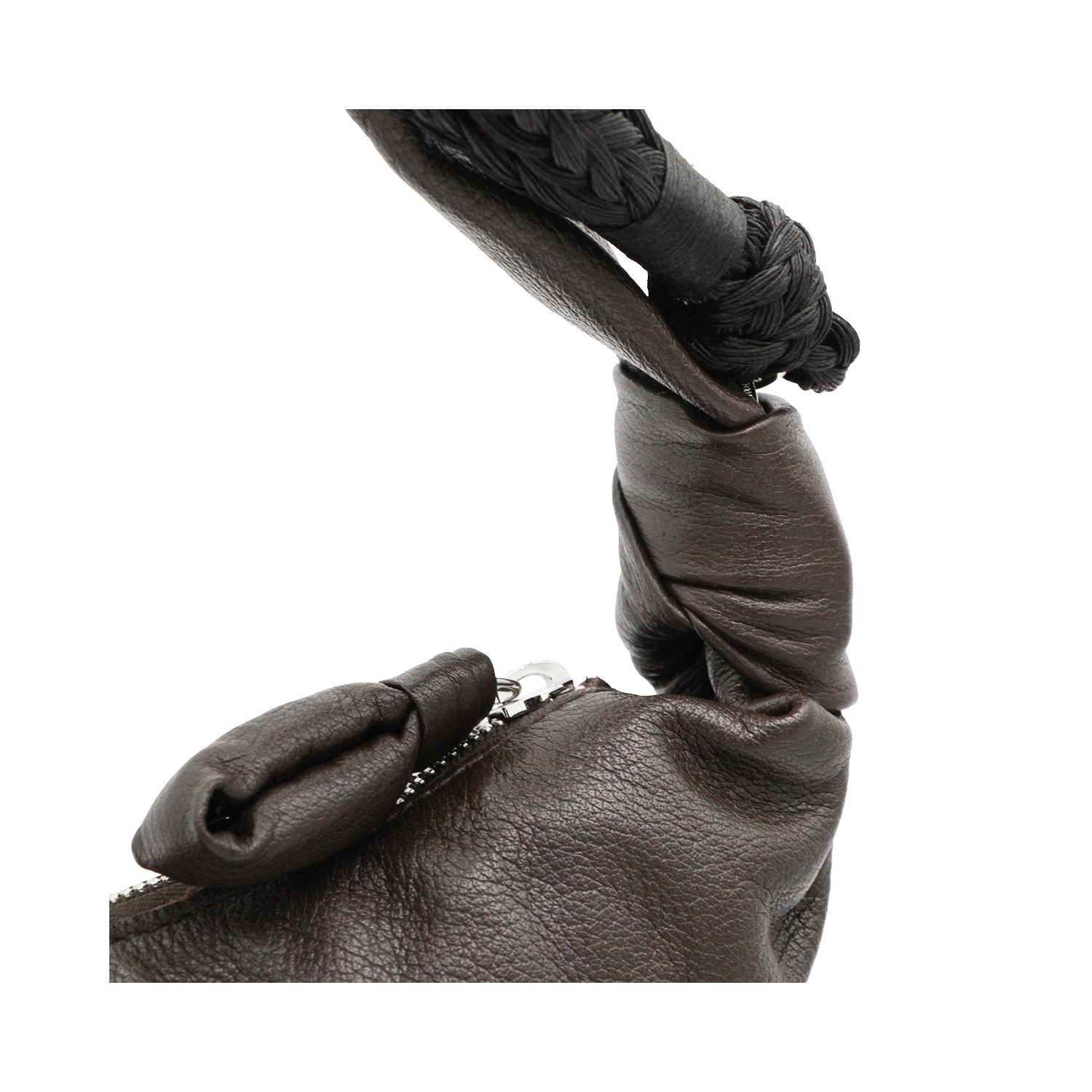 BLACK LEATHER BRAID MEDIUM CROISSANT SHOULDER BAG