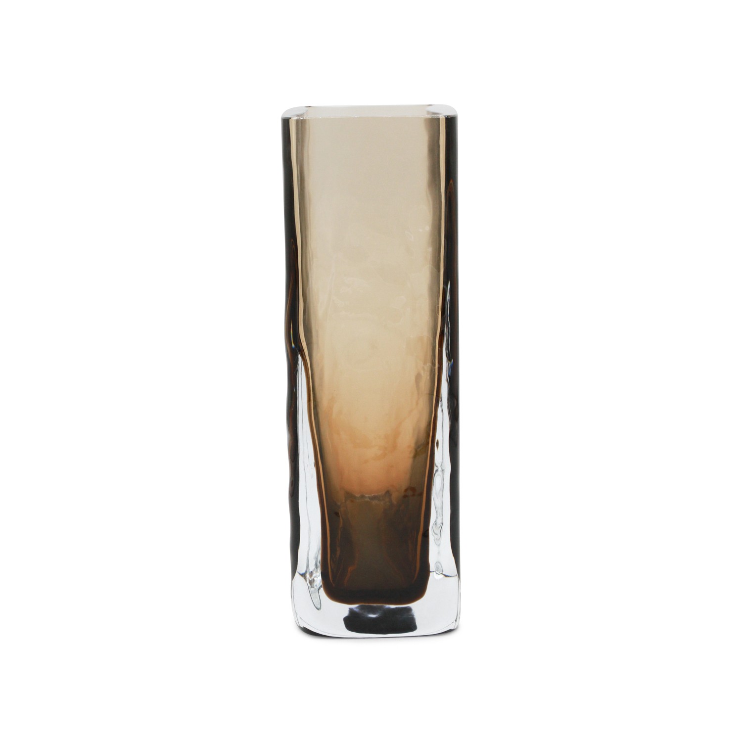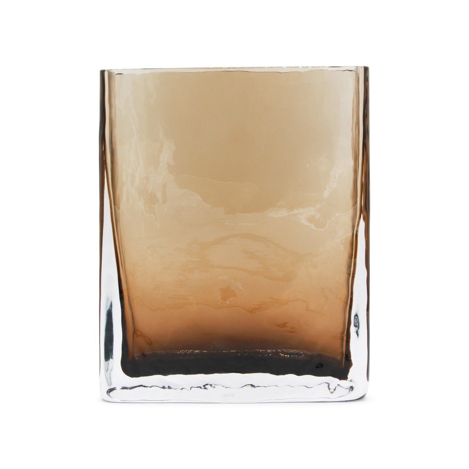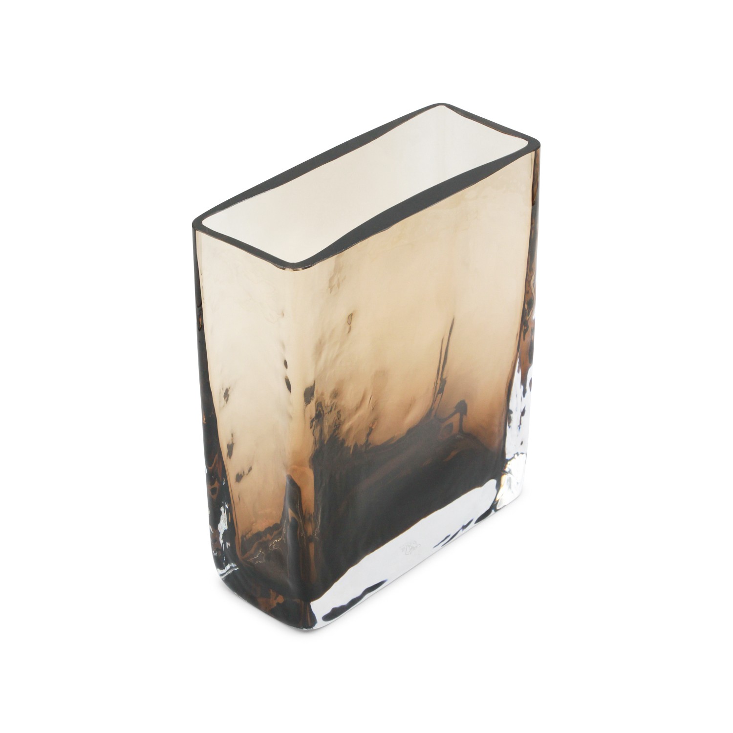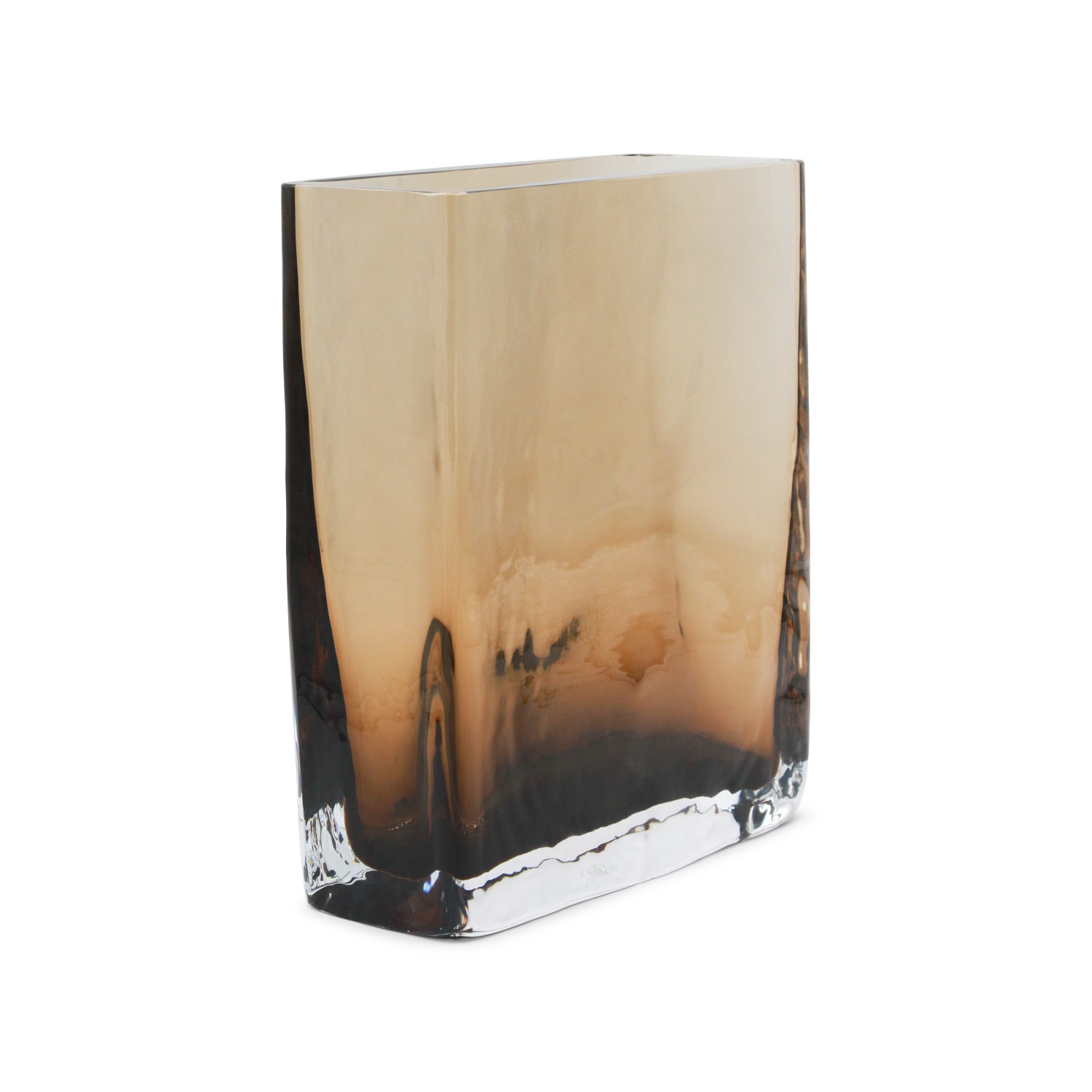 Brown vase from Brunello Cucinelli featuring rectangular base and nuances.