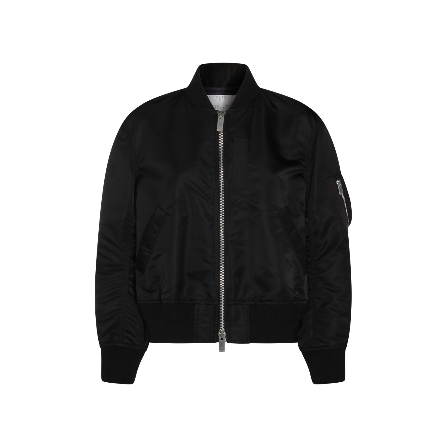 Black casual jacket from Sacai featuring long sleeves, zip fastening, frontal pockets, lateral pocket and oversize vestibility.