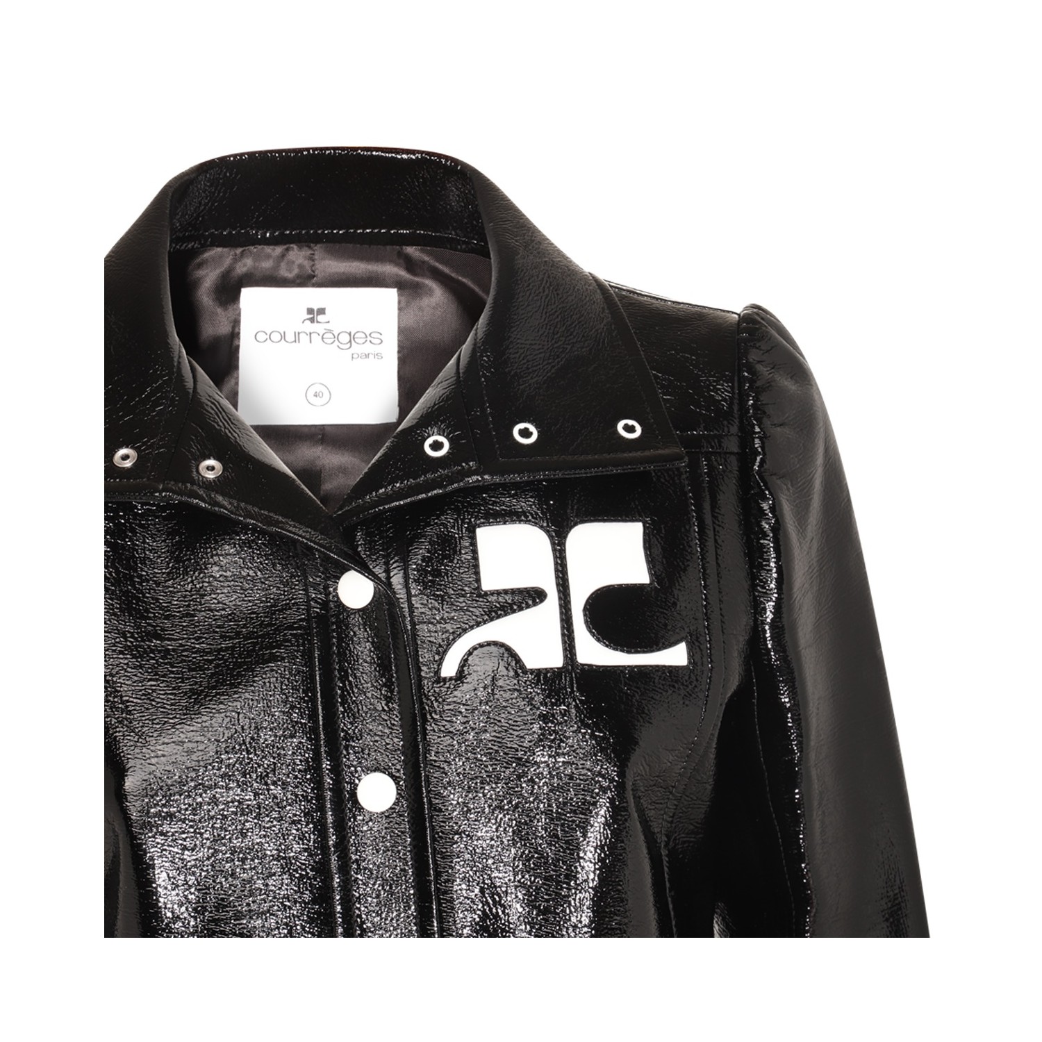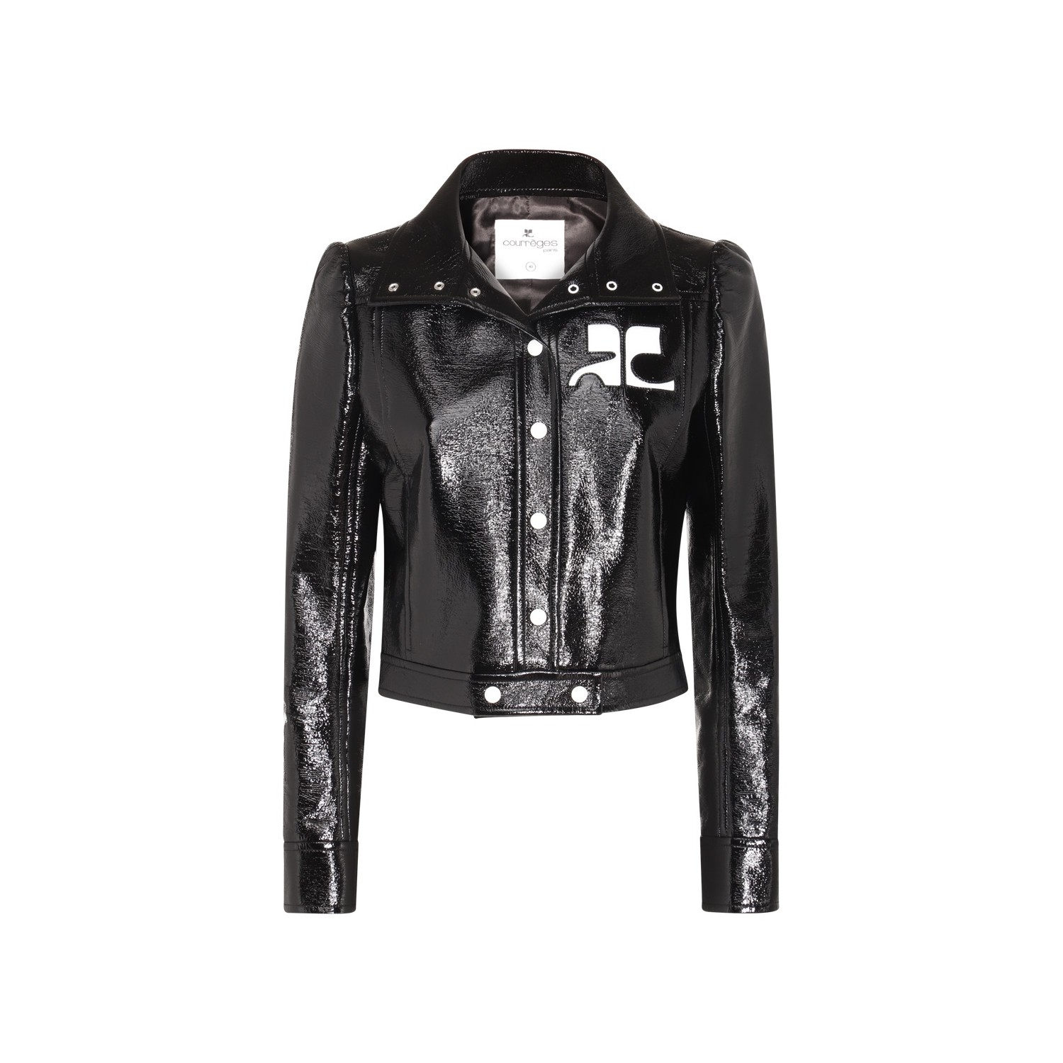Black casual jacket from Courreges featuring long sleeves, buttons fastening, silver tone hardware, logo and regular vestibility.