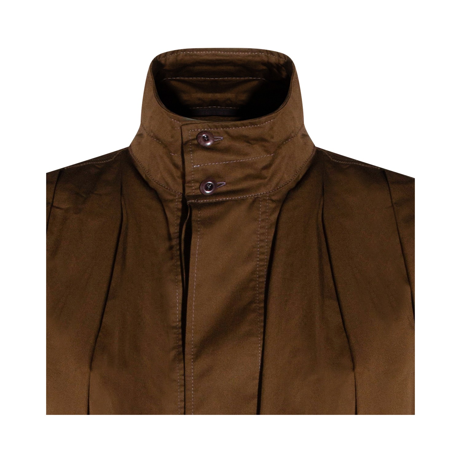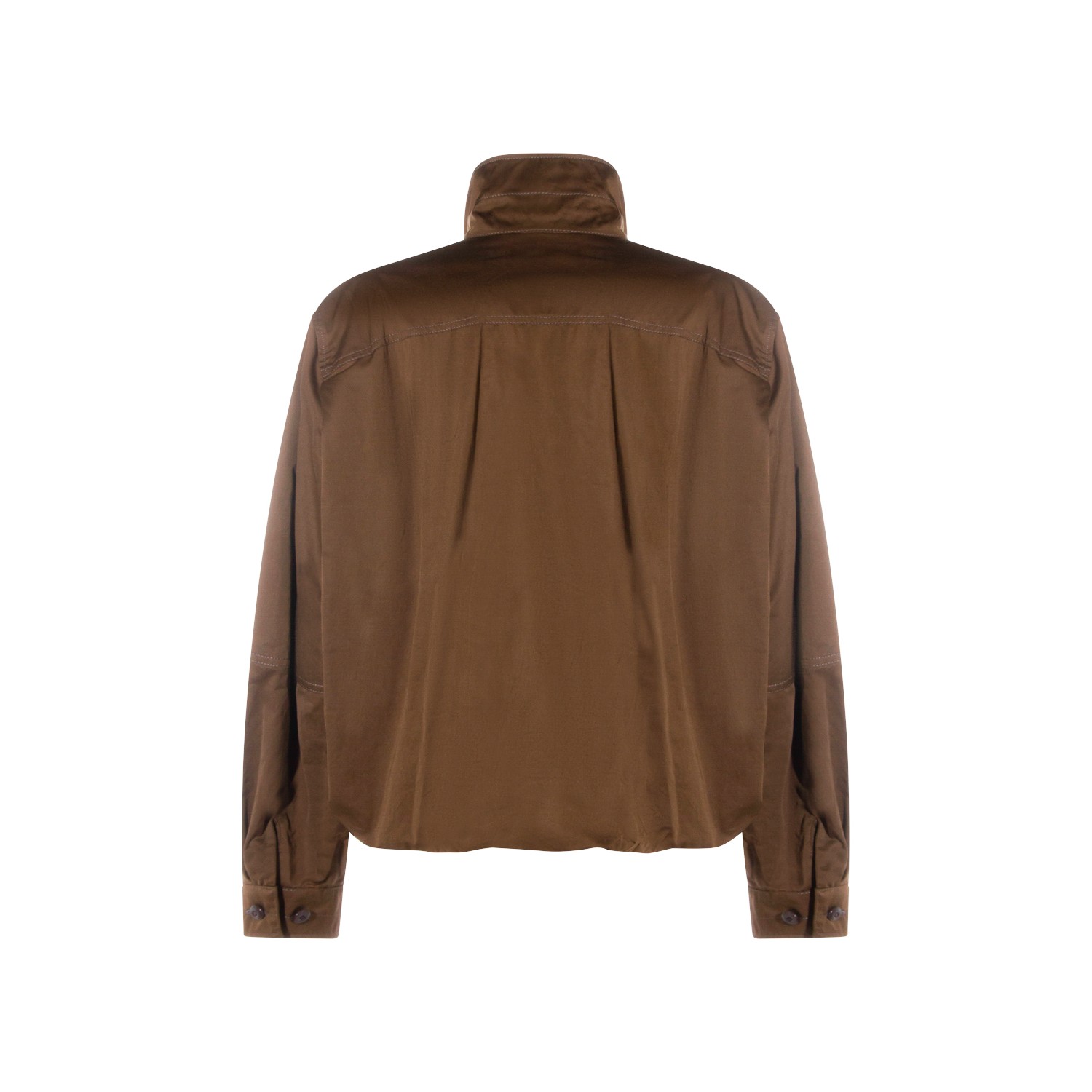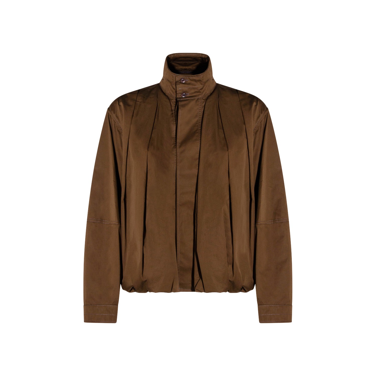 Brown cotton casual jacket from Lemaire featuring long sleeves, high collar, frontal fastening and regular vestibility.