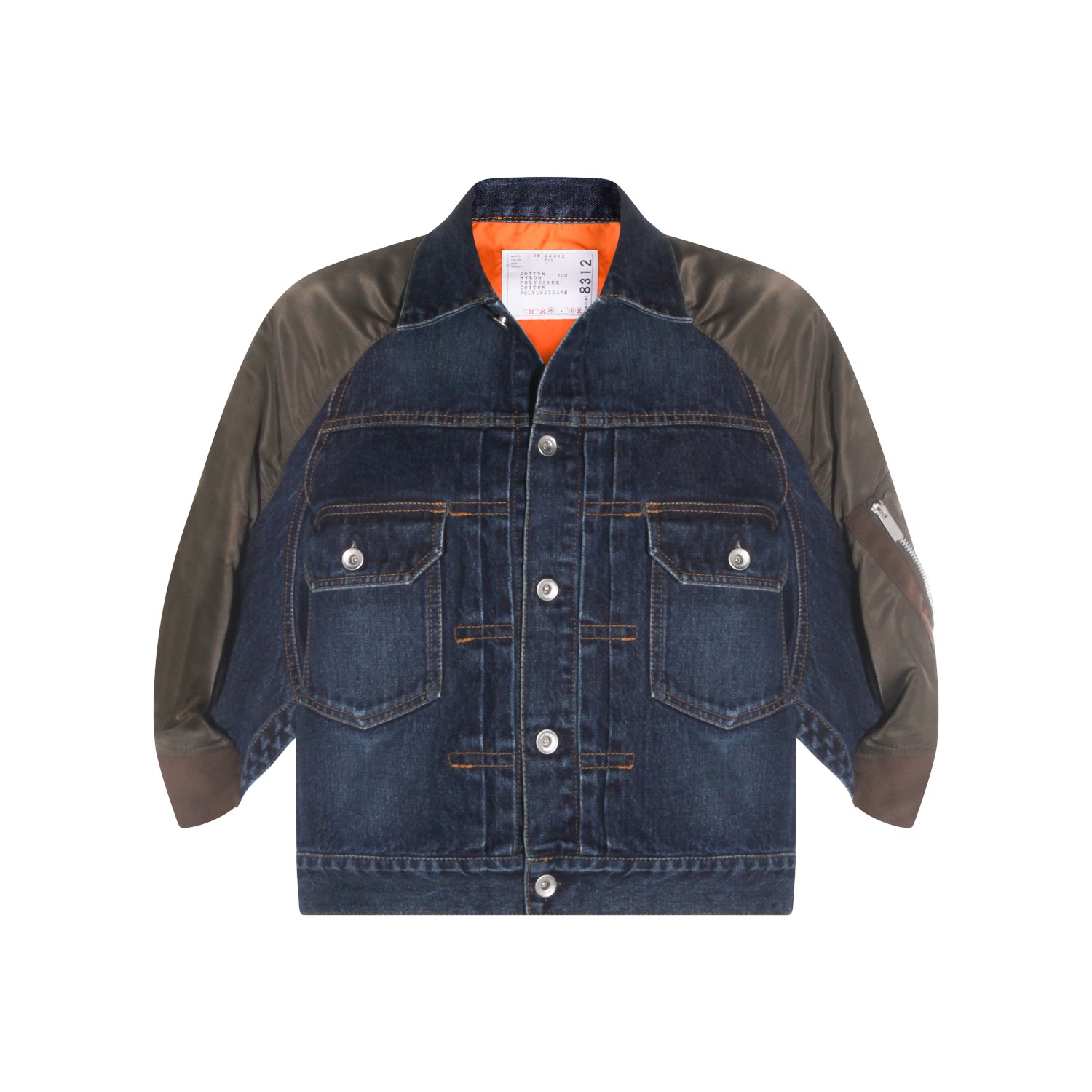 Blue denim and brown jacket from Sacai featuring long sleeves, frontal fastening with buttons, pockets and regular vestibility.