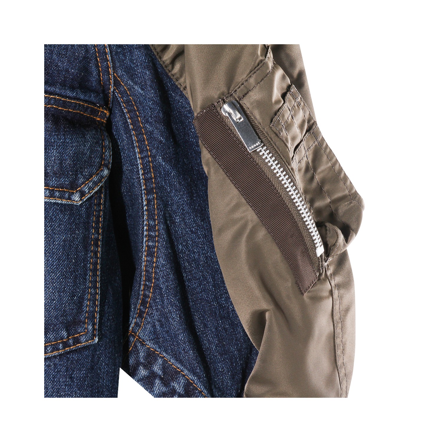 BLUE DENIM AND BROWN JACKET