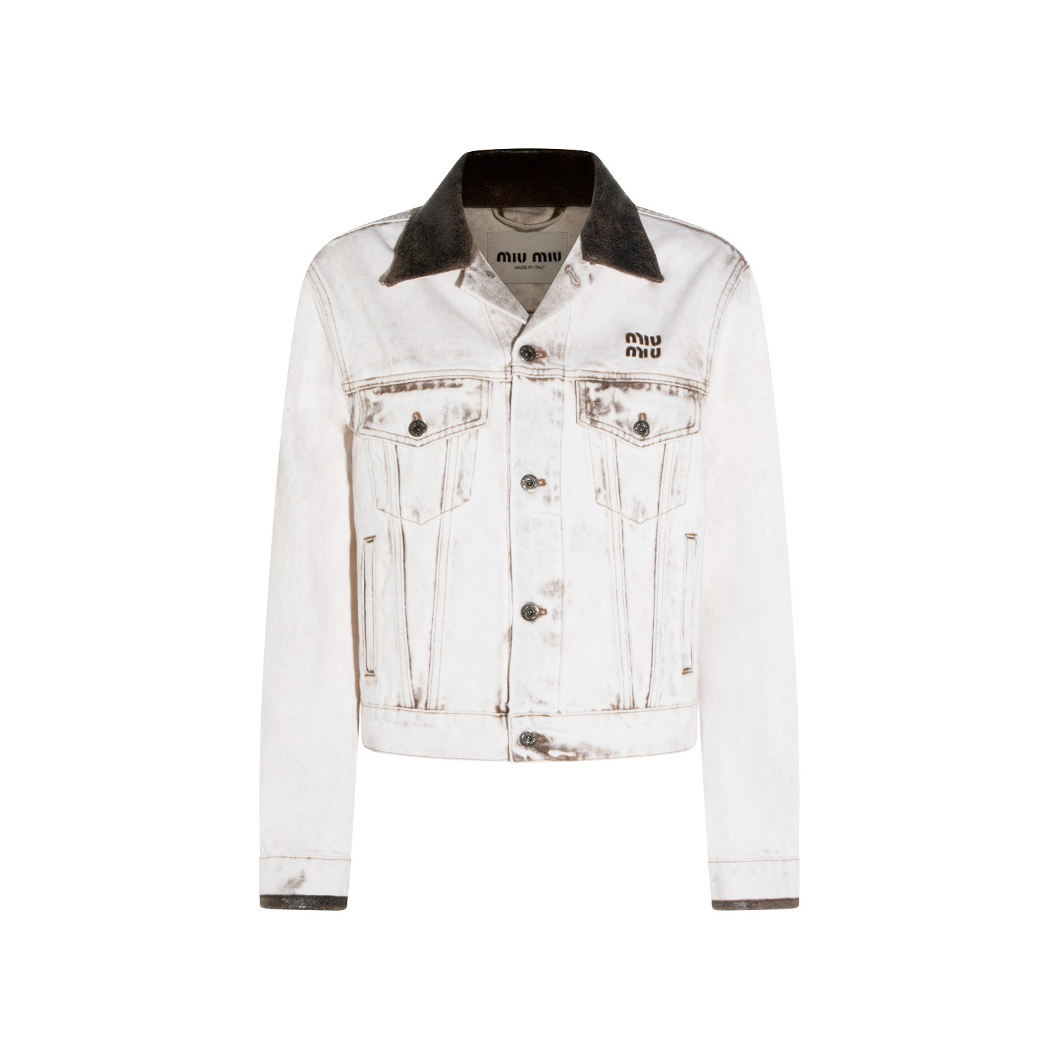 White cotton denim jacket from Miu Miu featuring long sleeves, pockets, frontal buttons fastening, logo and regular vestibility.