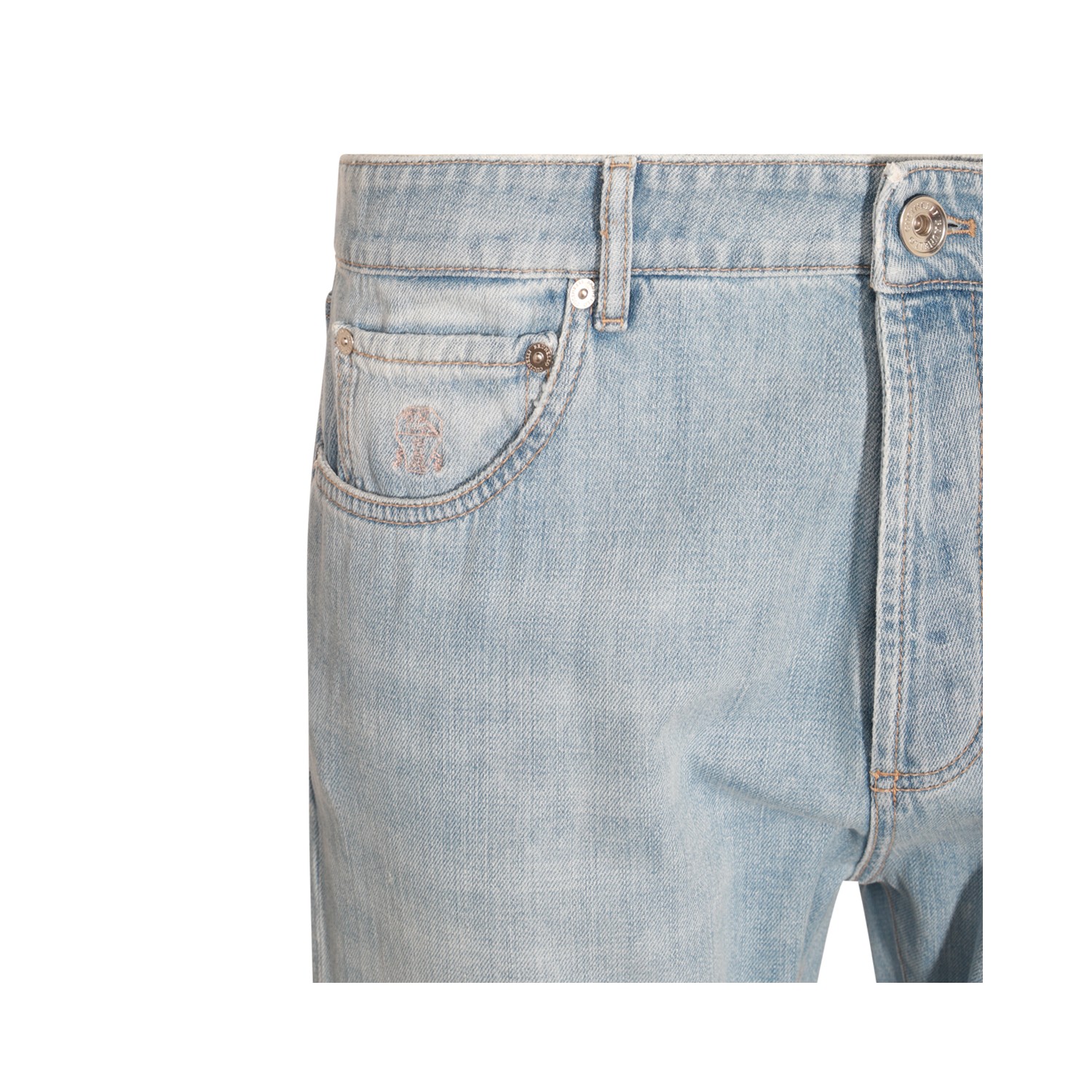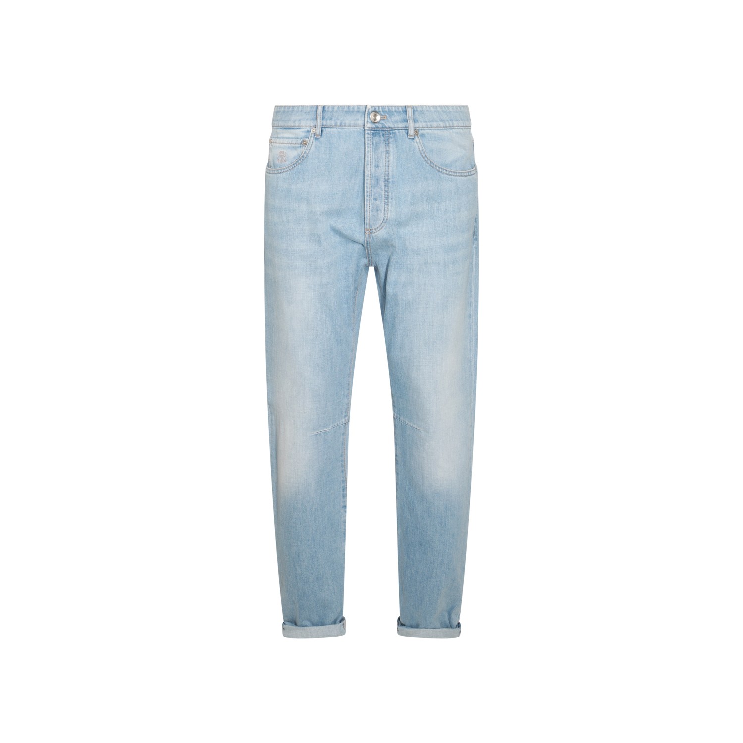 Light blue cotton jeans from Brunello Cucinelli featuring belt loops, frontal zip and button fastening, pockets and regular vestibility.