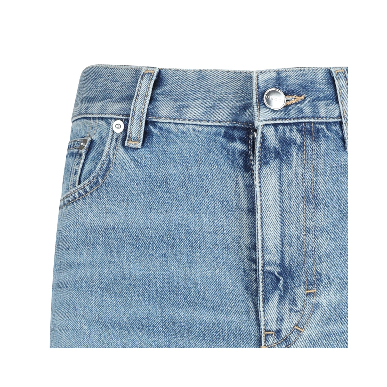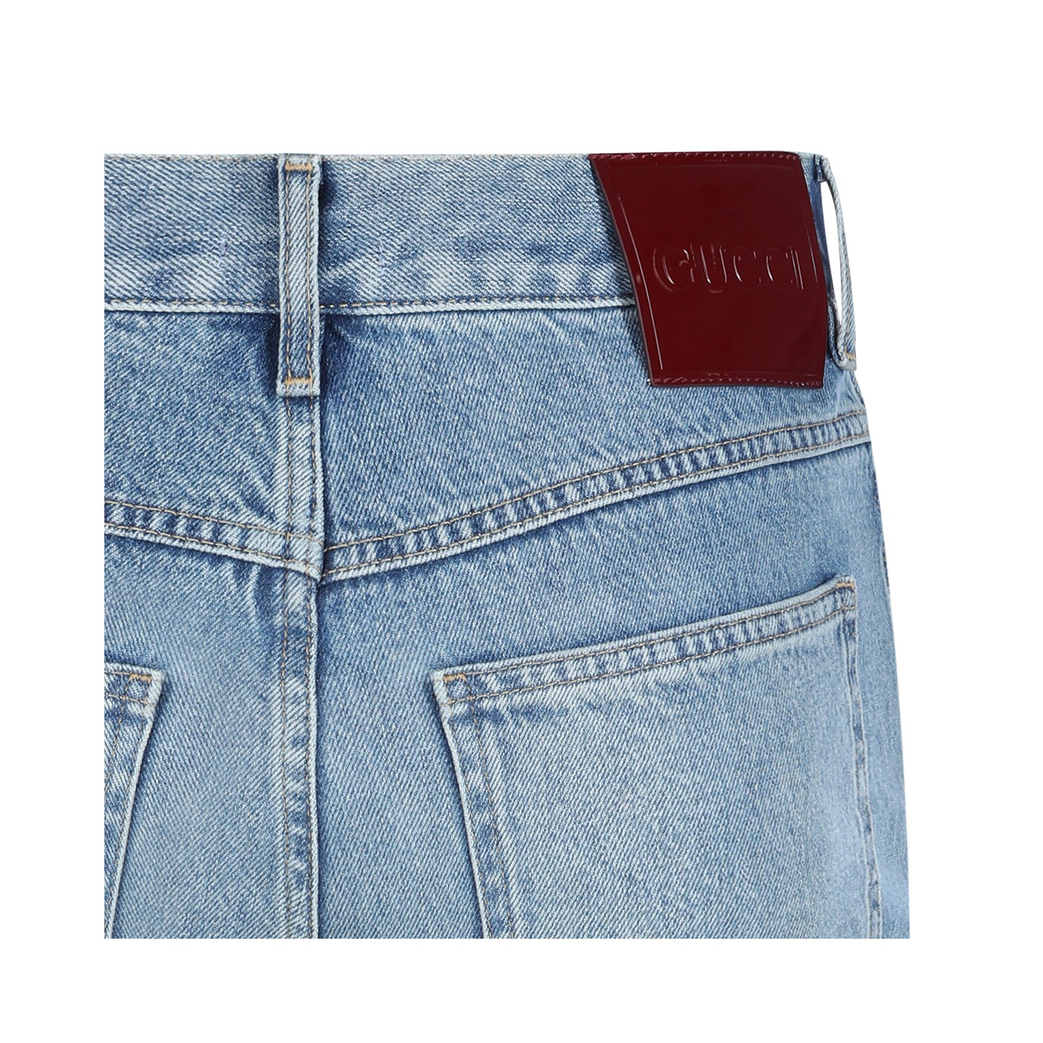 Blue cotton jeans from Gucci featuring high waist, belt loops, zip fastening, pockets and regular vestibility.